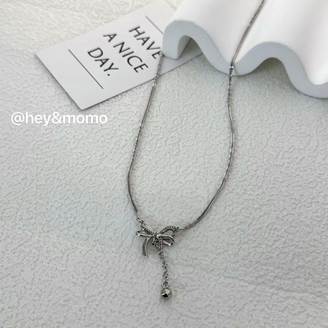 图款 ⚪️925 银 意大利银链条 蝴蝶结 Y字项链 36000