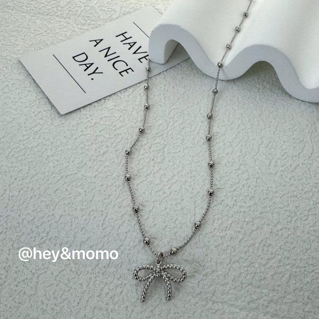 图款 ⚪️925 银 银豆链条➕俏皮蝴蝶结吊追坠项链 29000