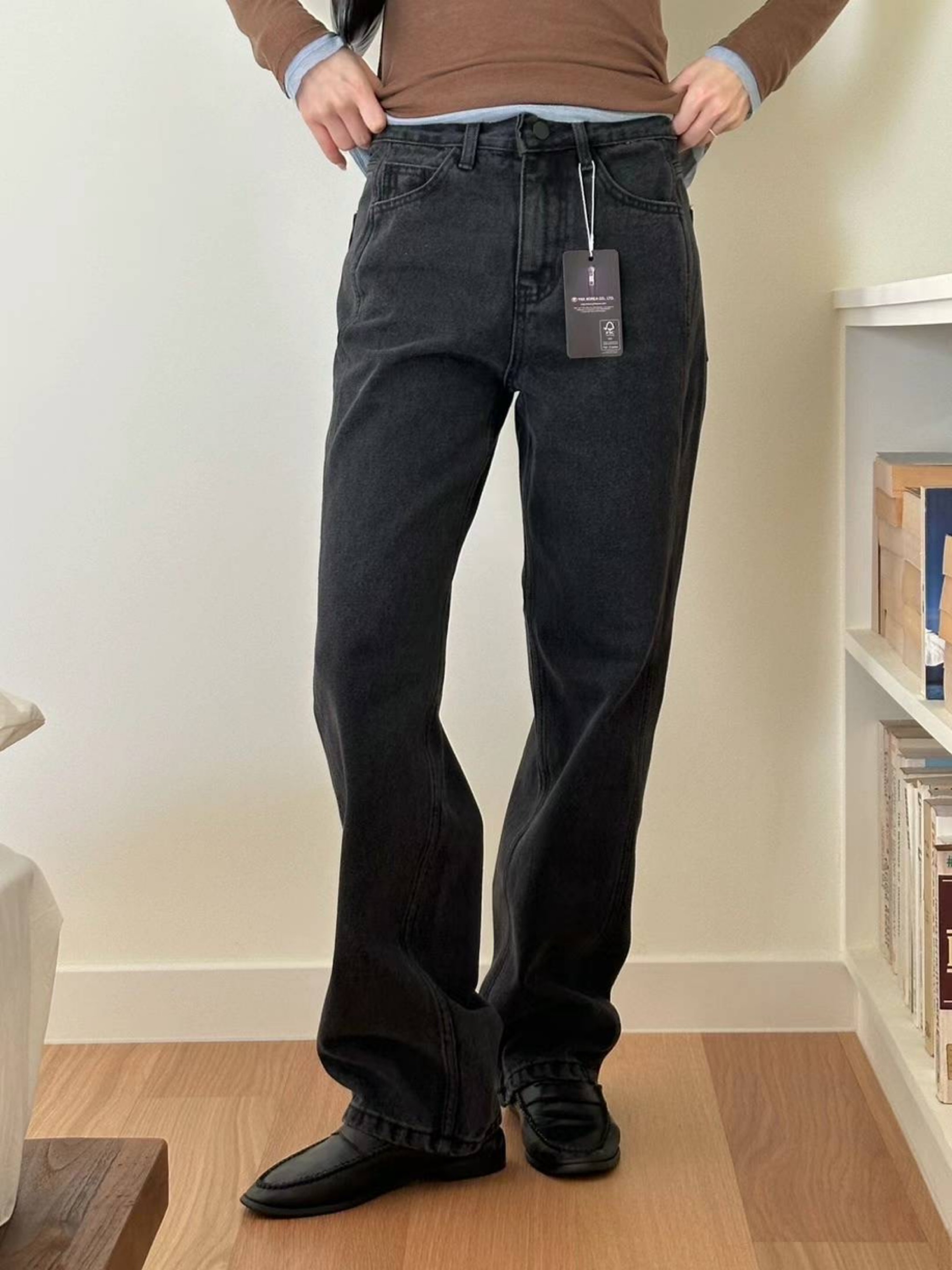 절개가들어간블랙워싱청바지 翻译