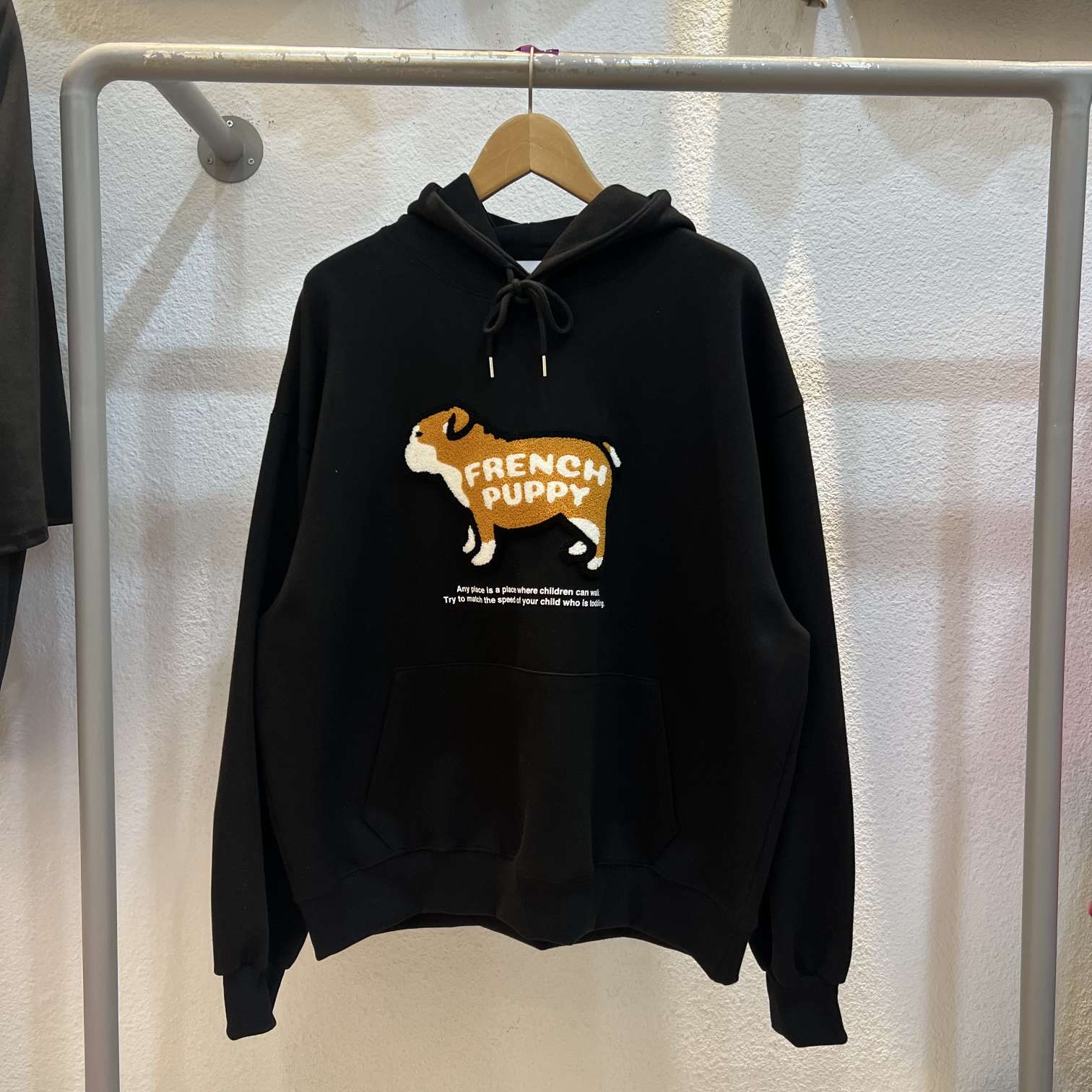 핸들자수로 표현한 귀여운 후드티입니다 翻译