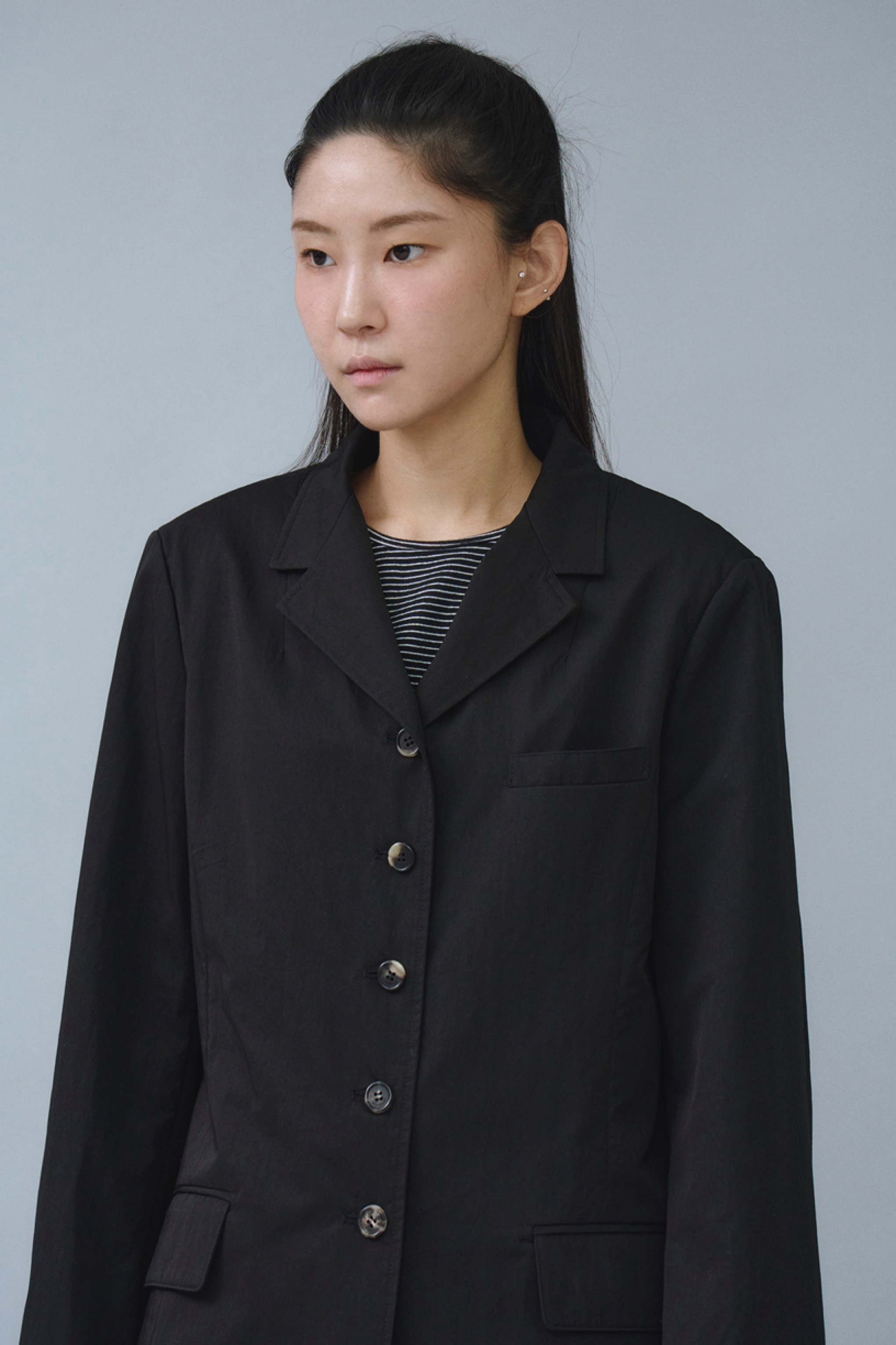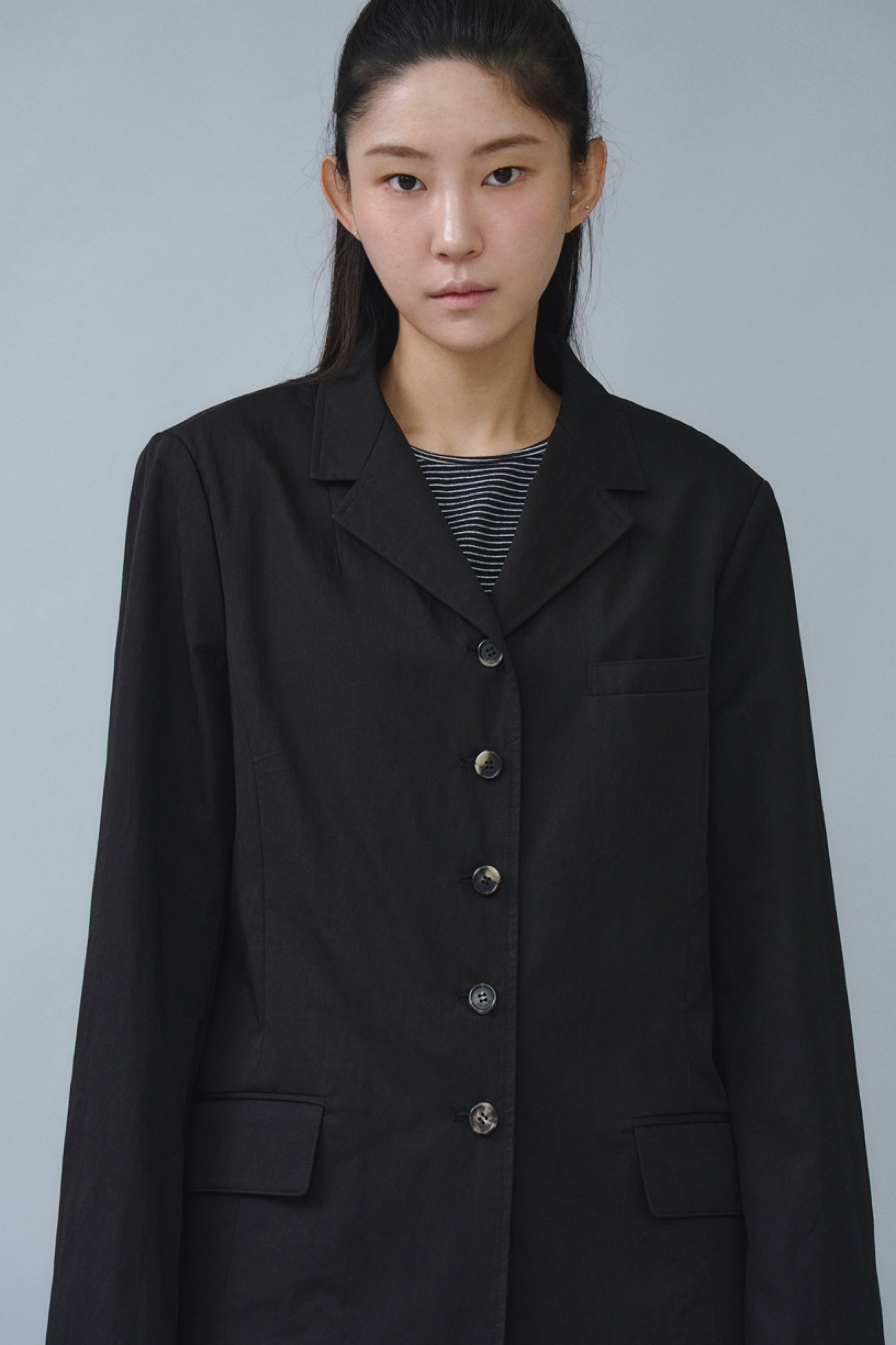 매칭하는 아이템에 따라 다양한 무드로 풀어낼 수 있는 5버튼 재킷입니다.