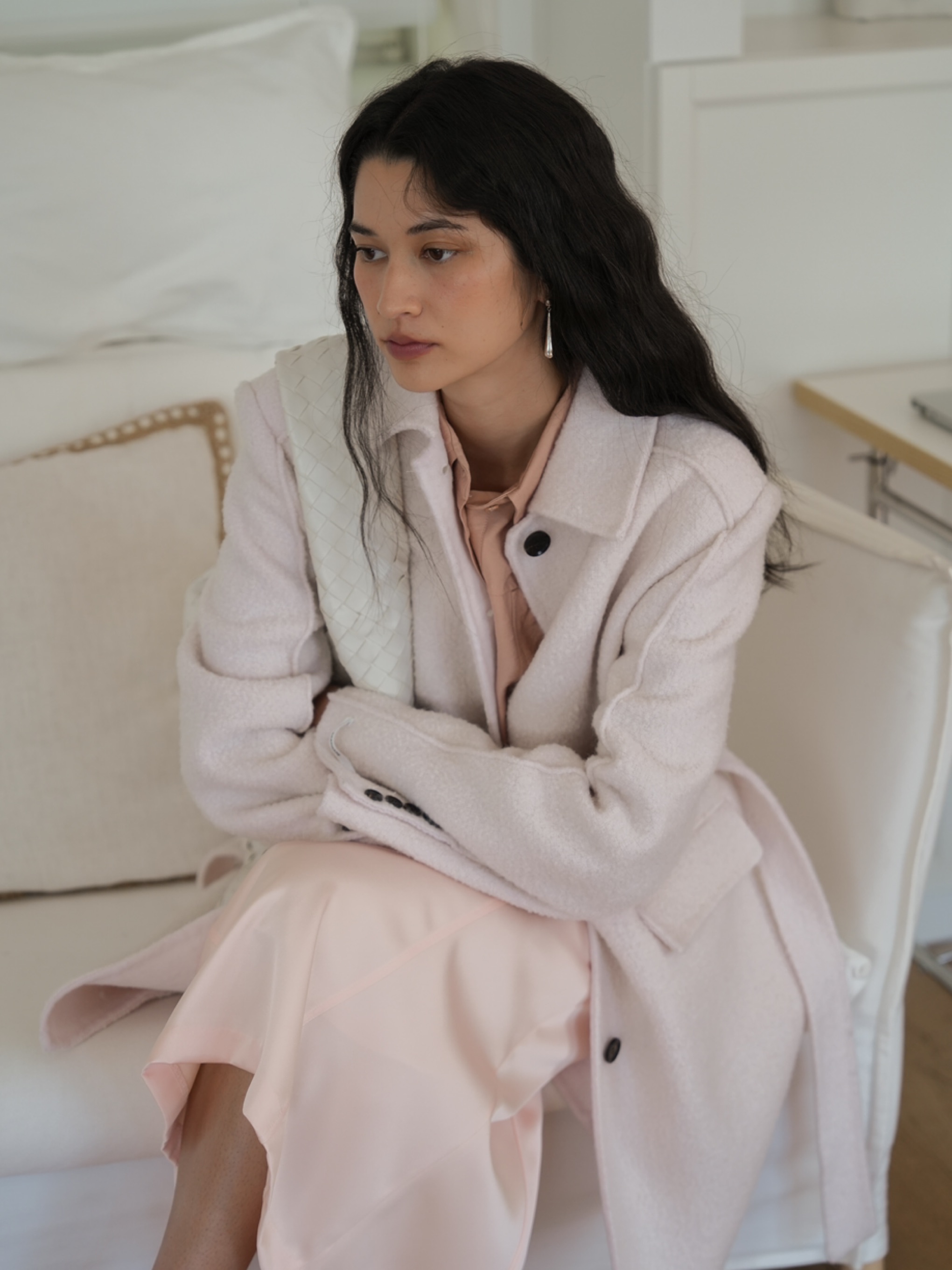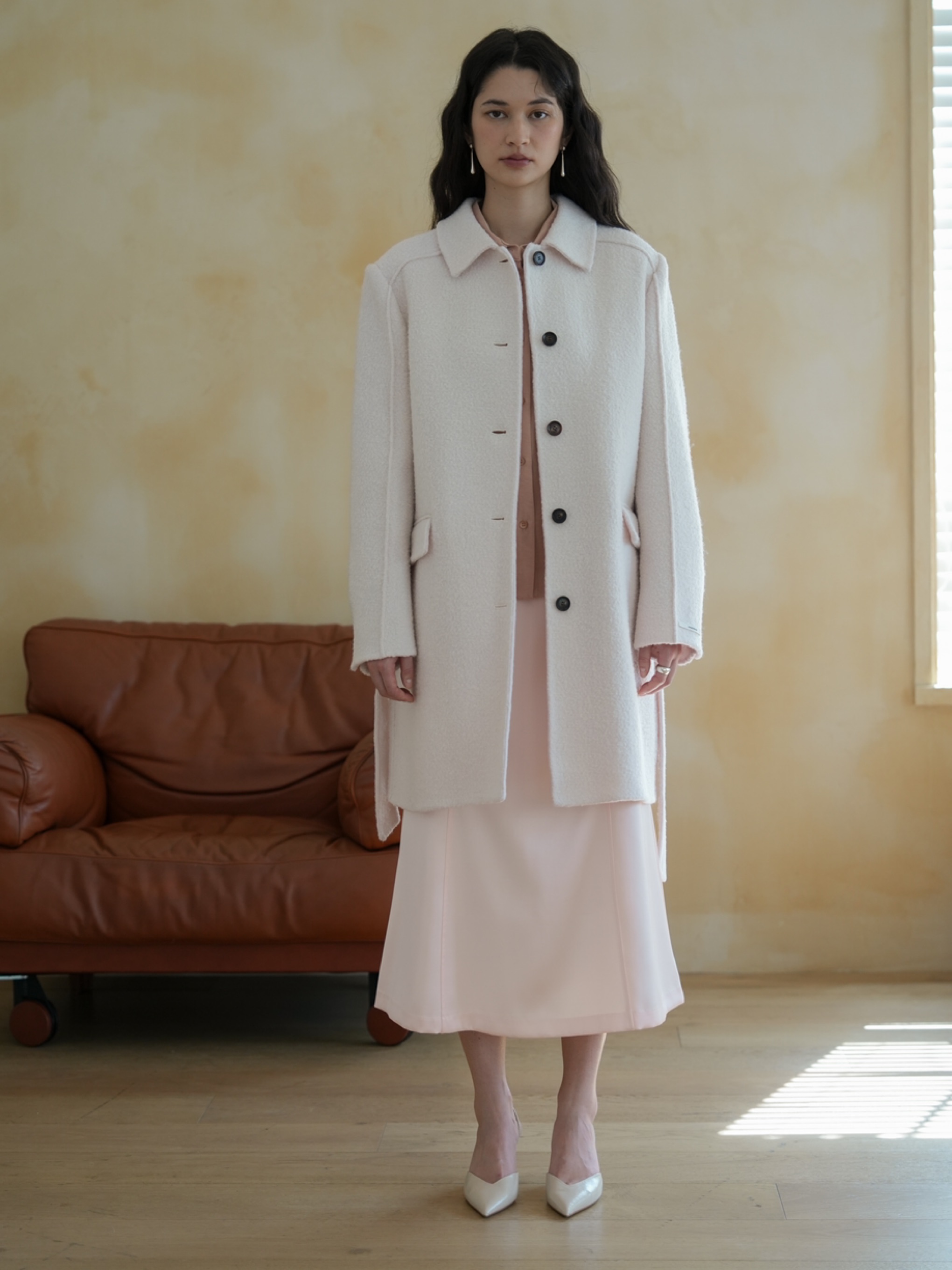 베이직한 핏의 핀턱디테일이 돋보이는 핸드메이드 코트 입니다.