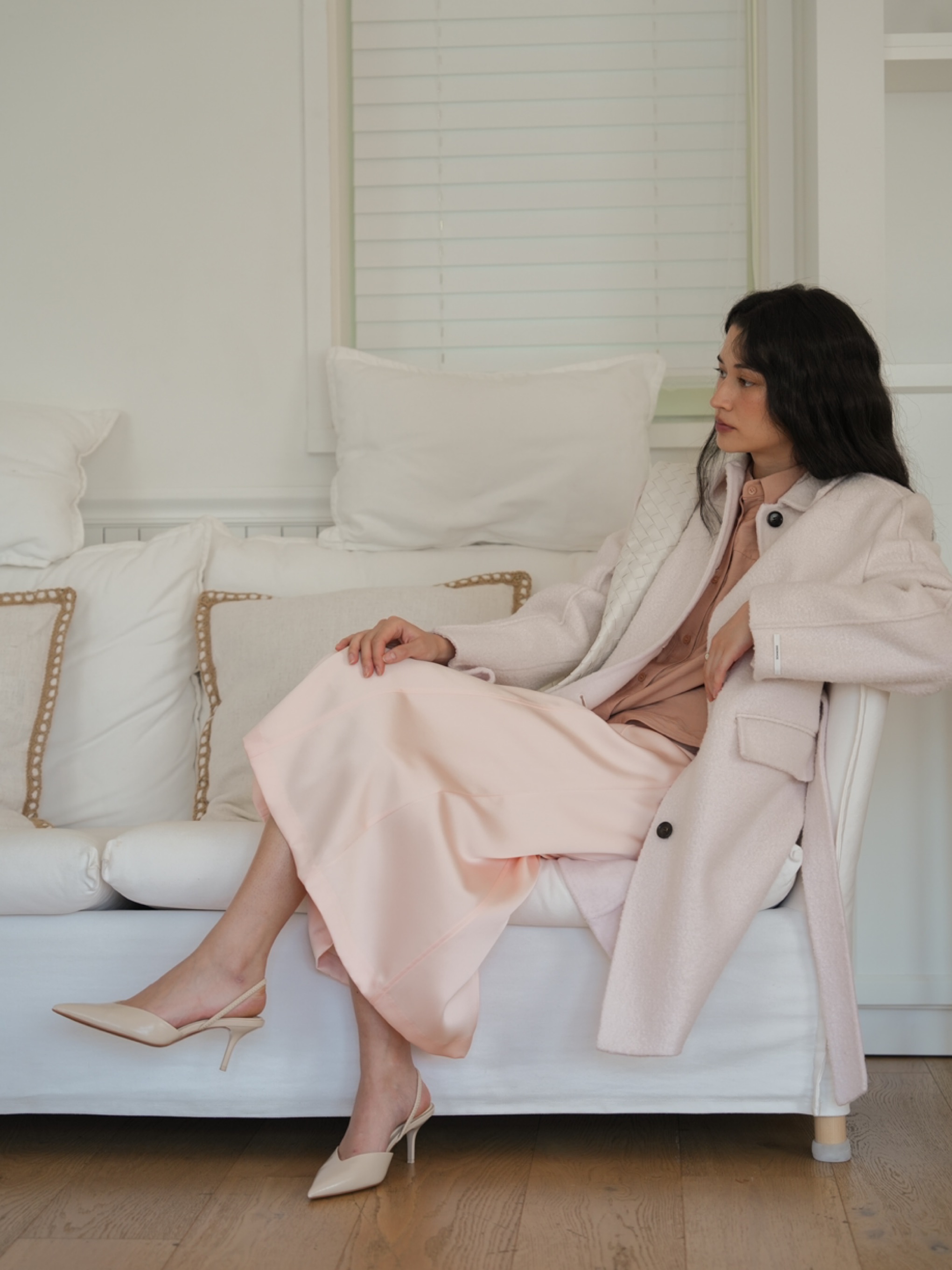 싱글 버튼의 여밈과 일자핏으로 모던한 느낌을 연출 할 수 있습니다.