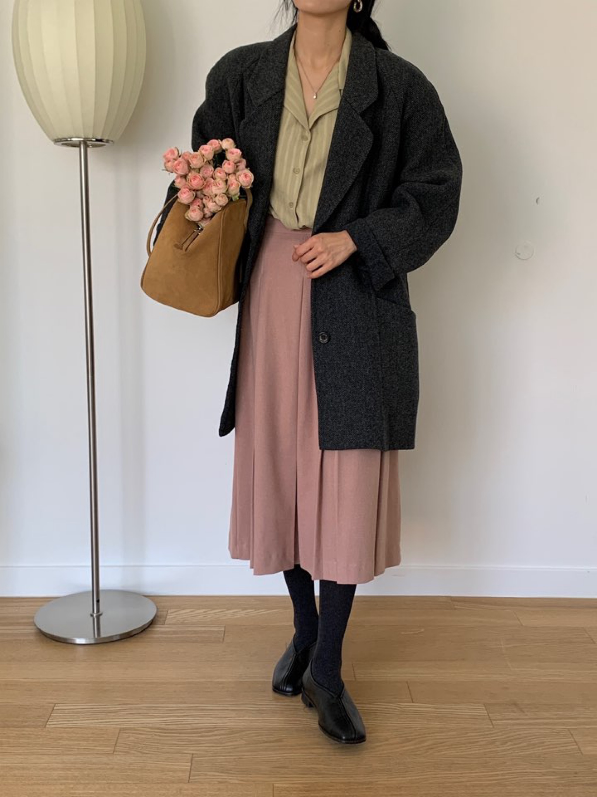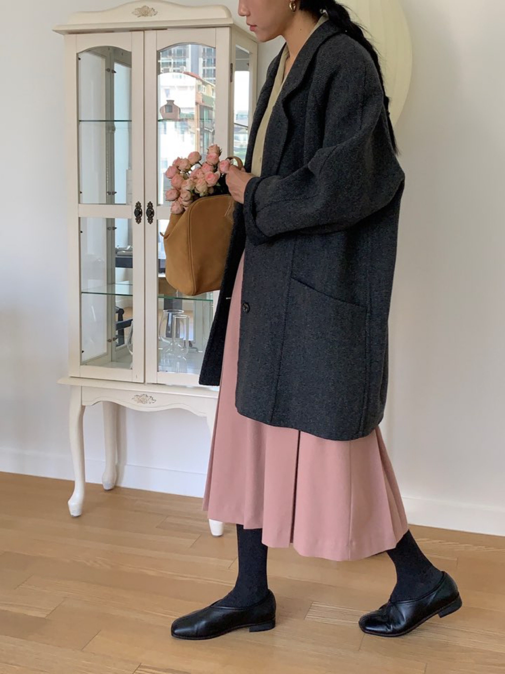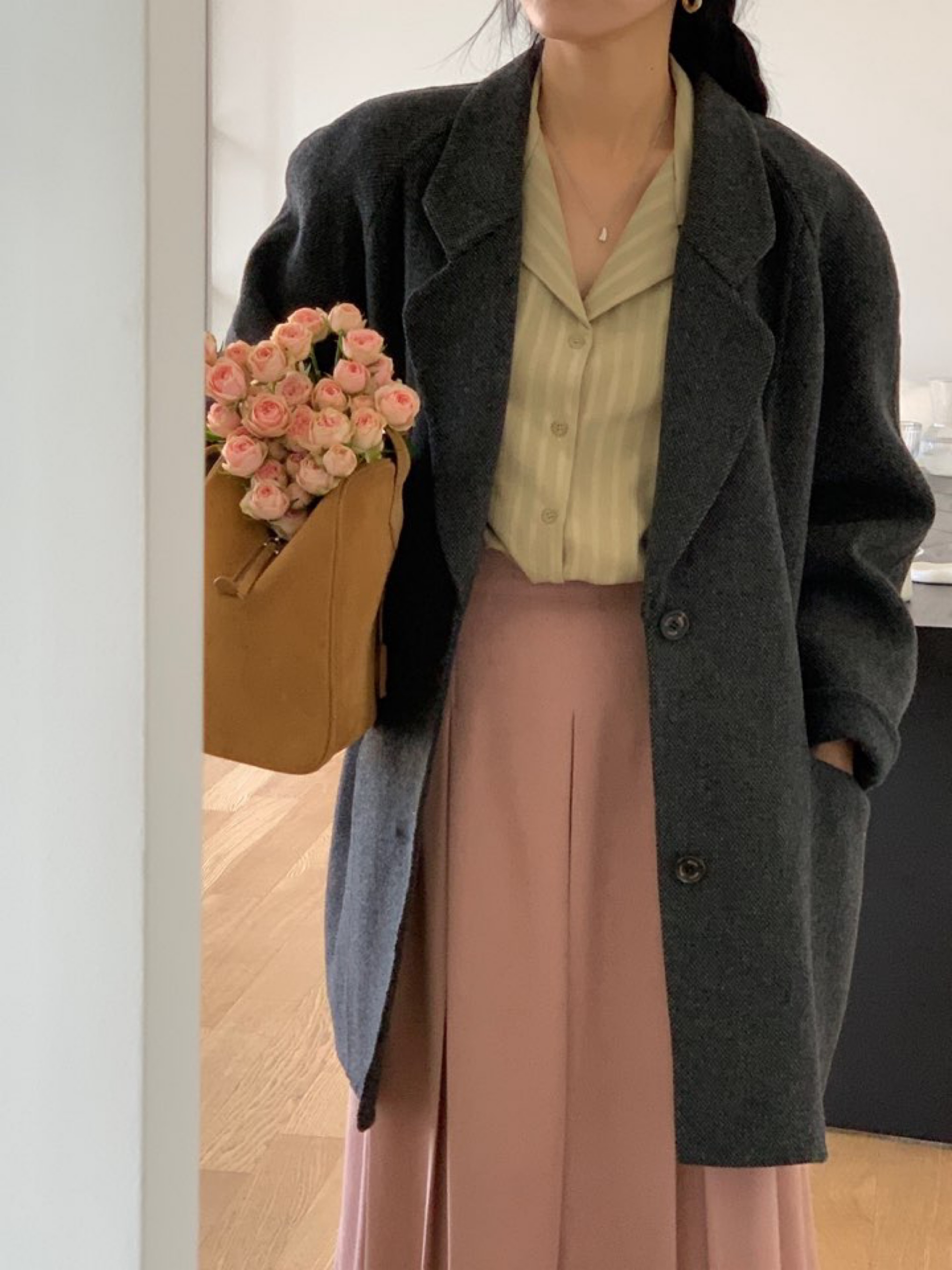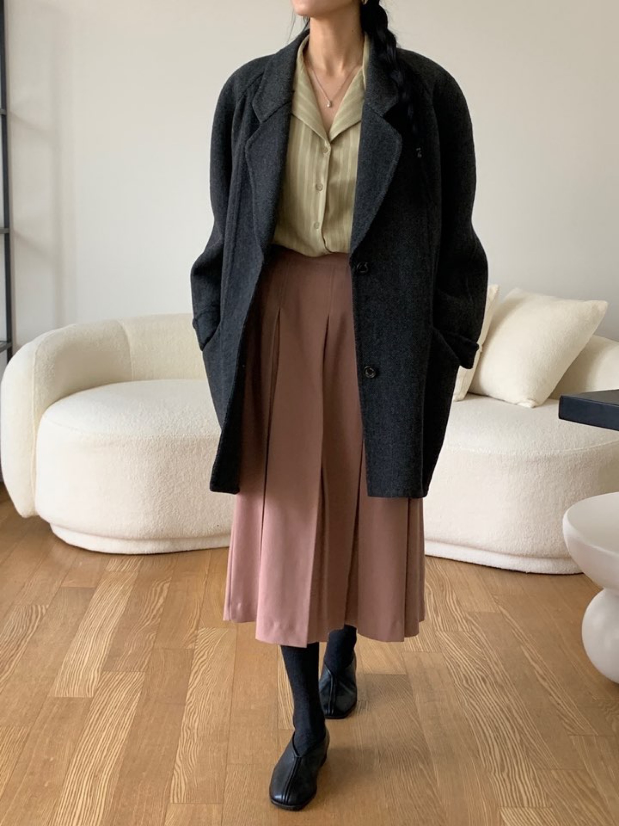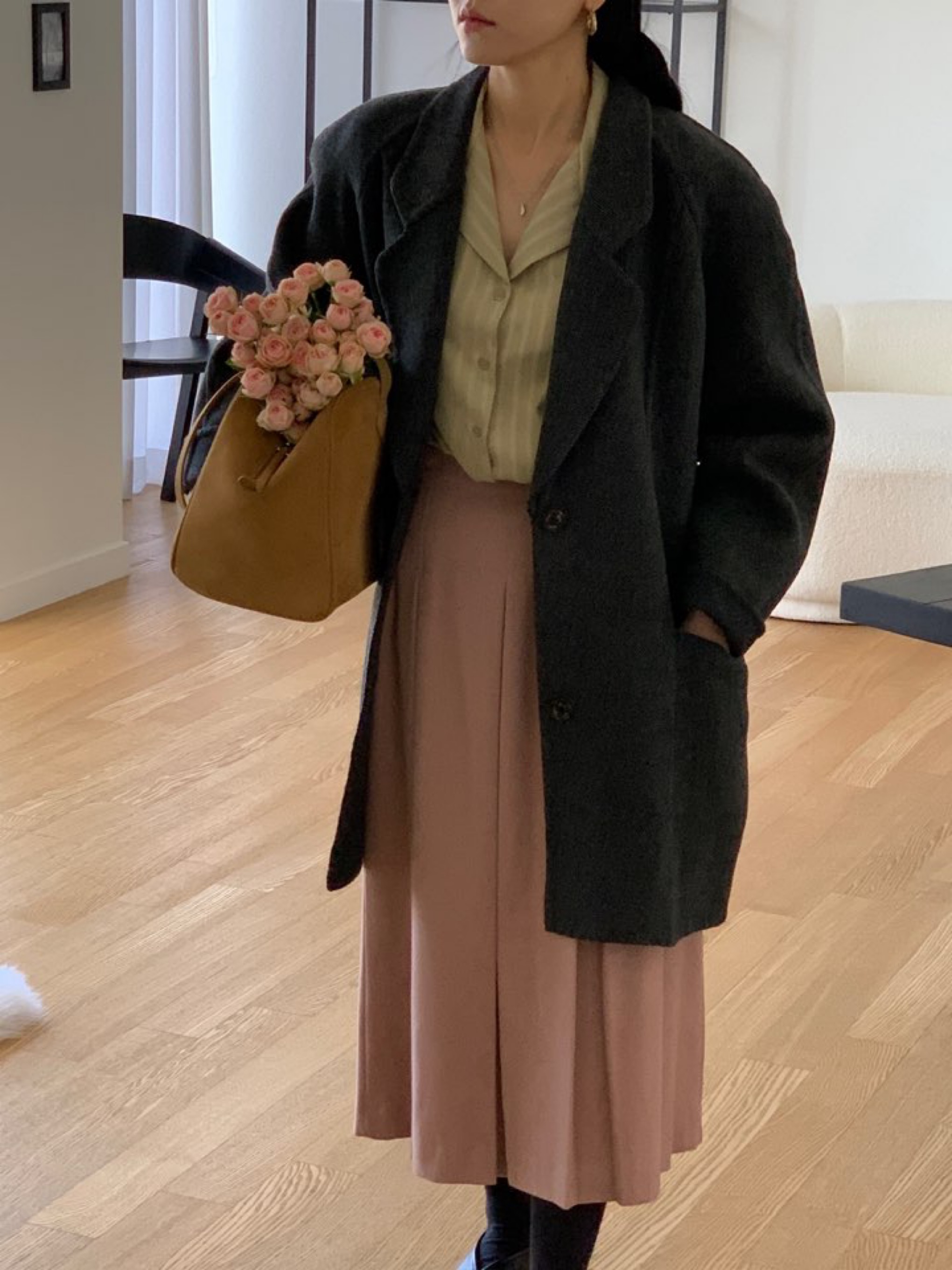 *클래식한 무드의 하프기장감의 노치드카라 핸드메이드 싱글코트