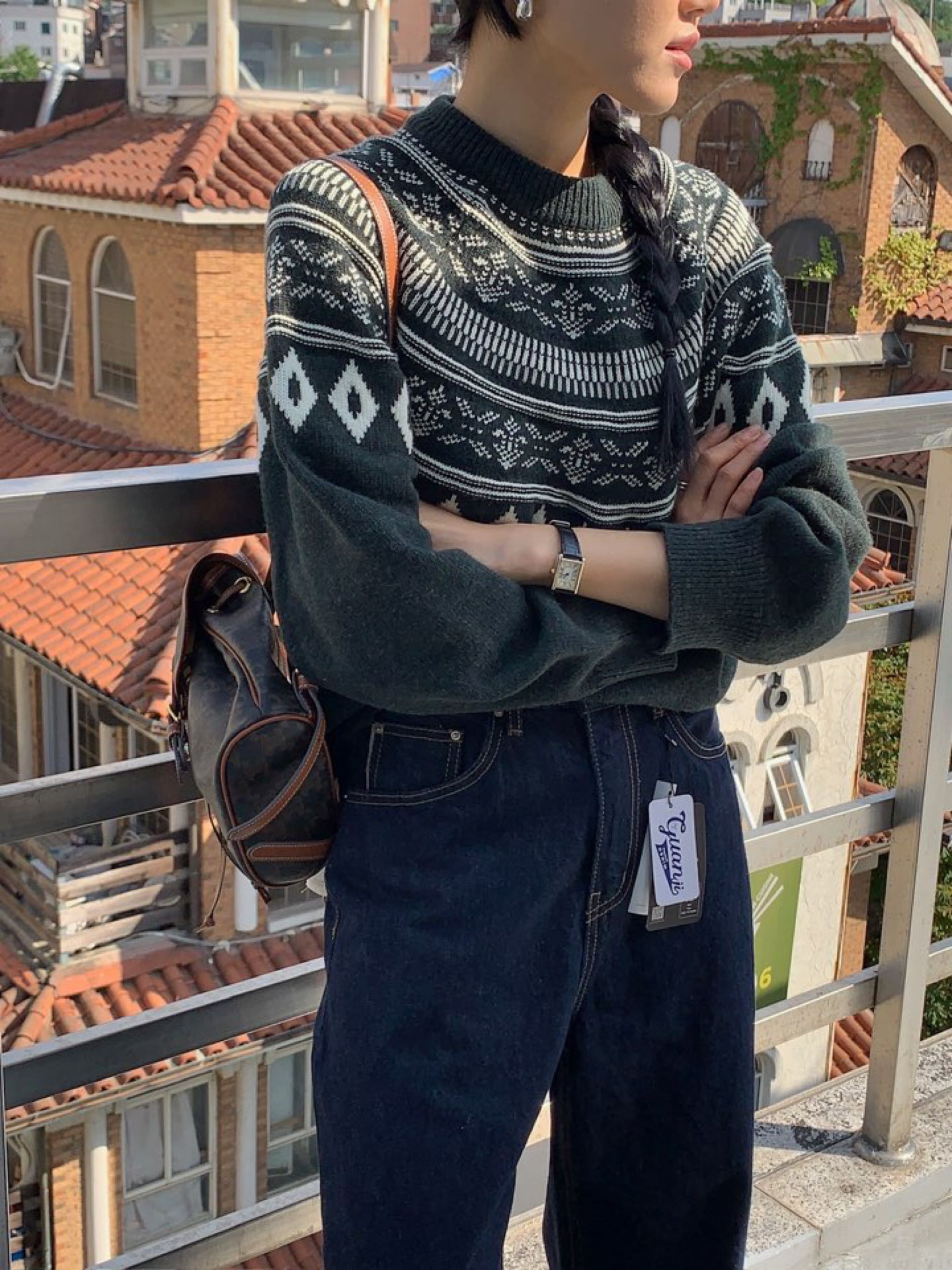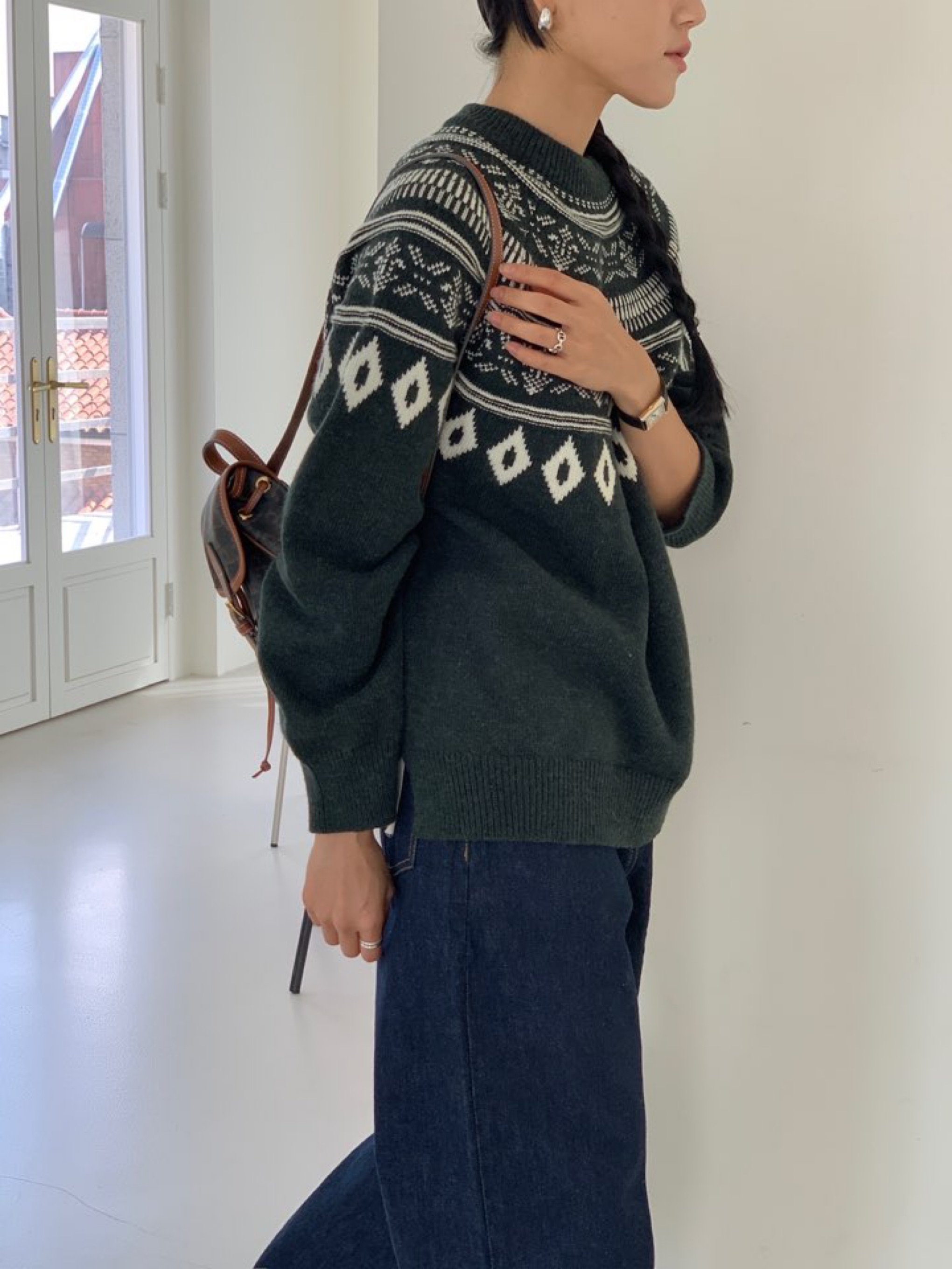 *노르딕패턴의 라운드넥 니트