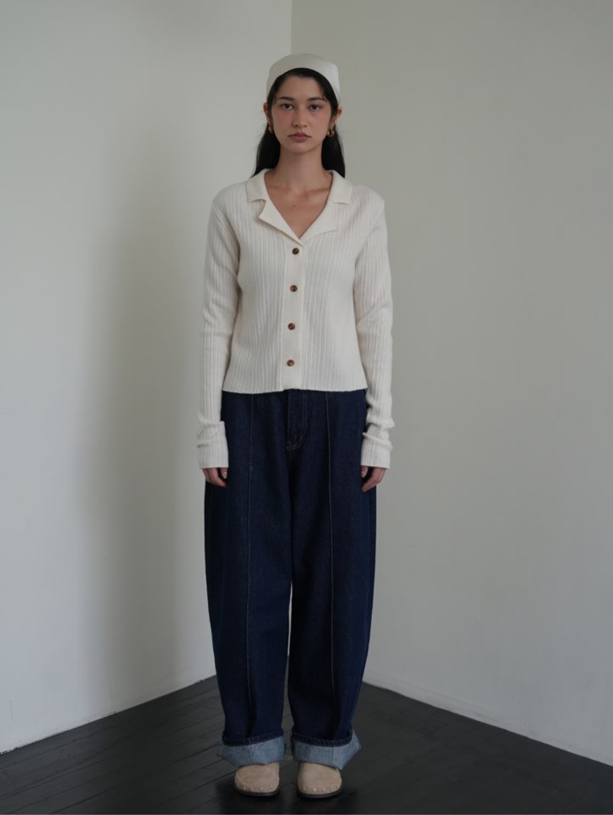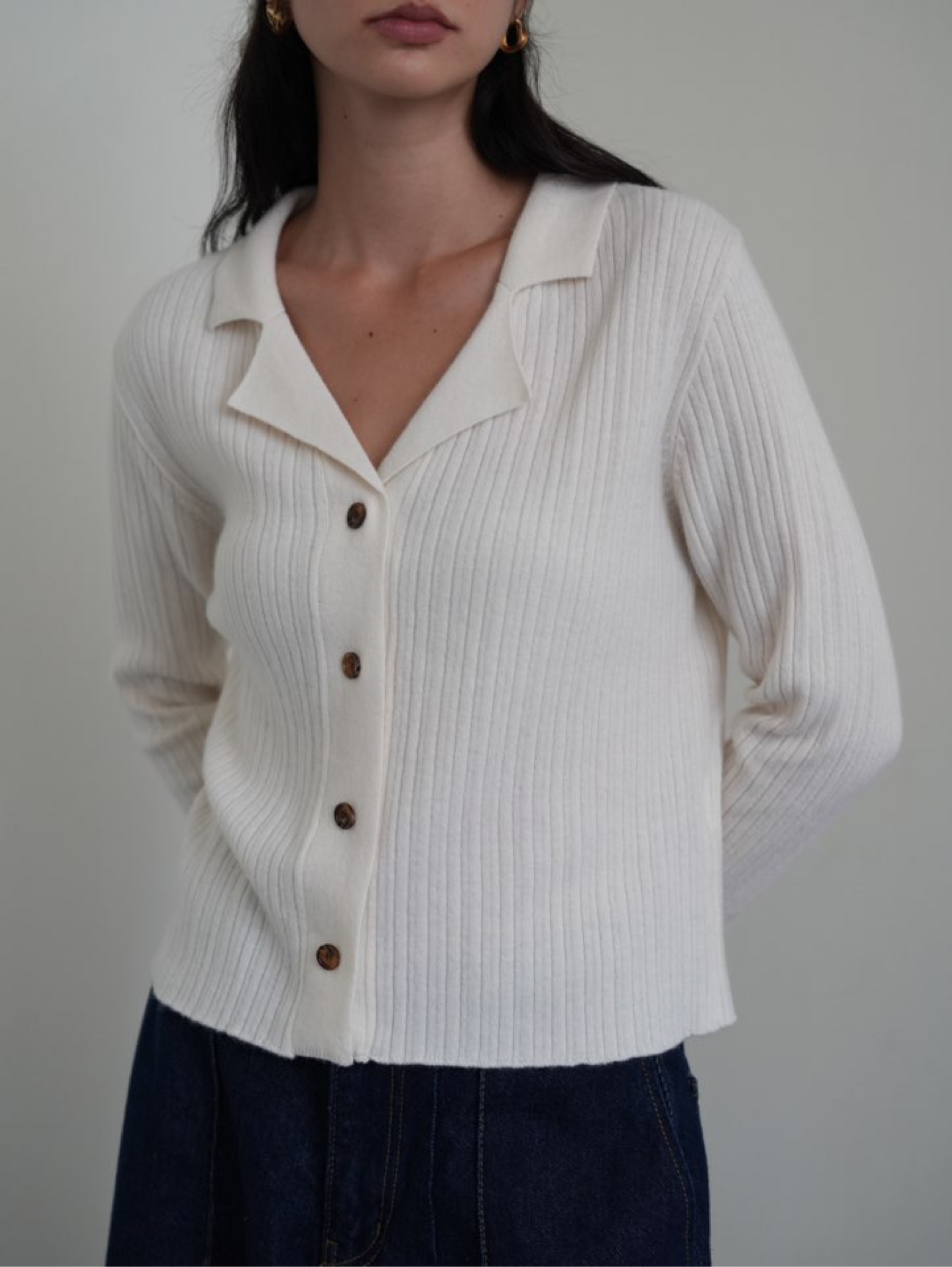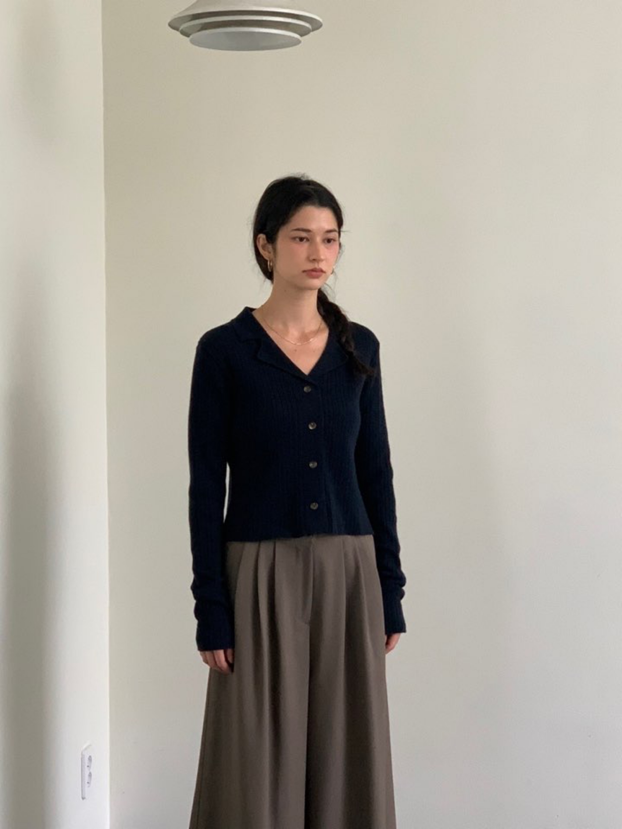 *캐주얼한 무드의 카라 니트가디건
