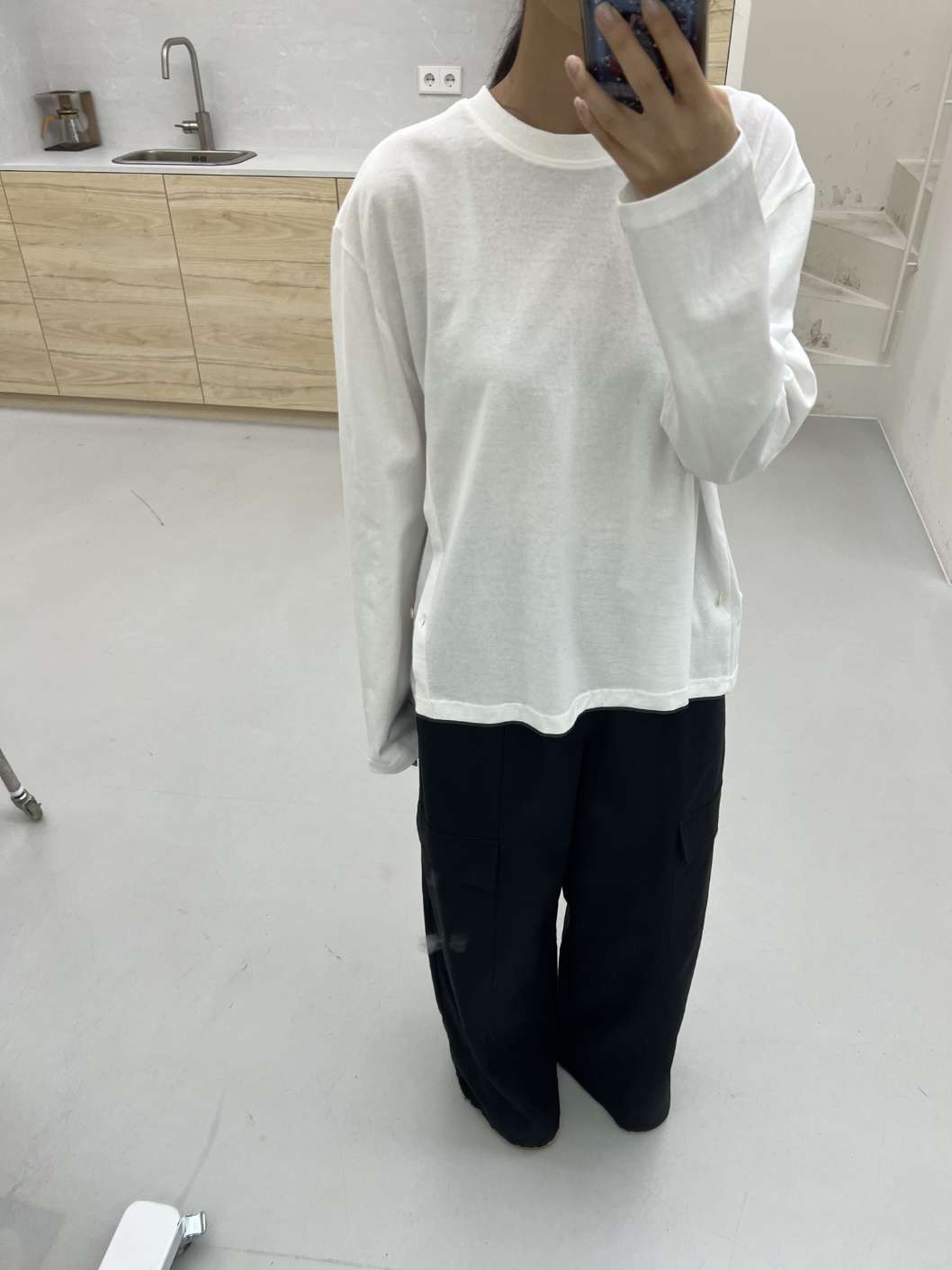 라운드넥 디자인의 티셔츠입니다