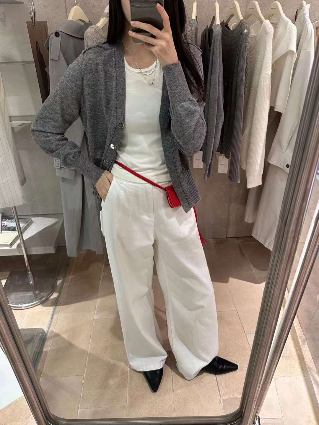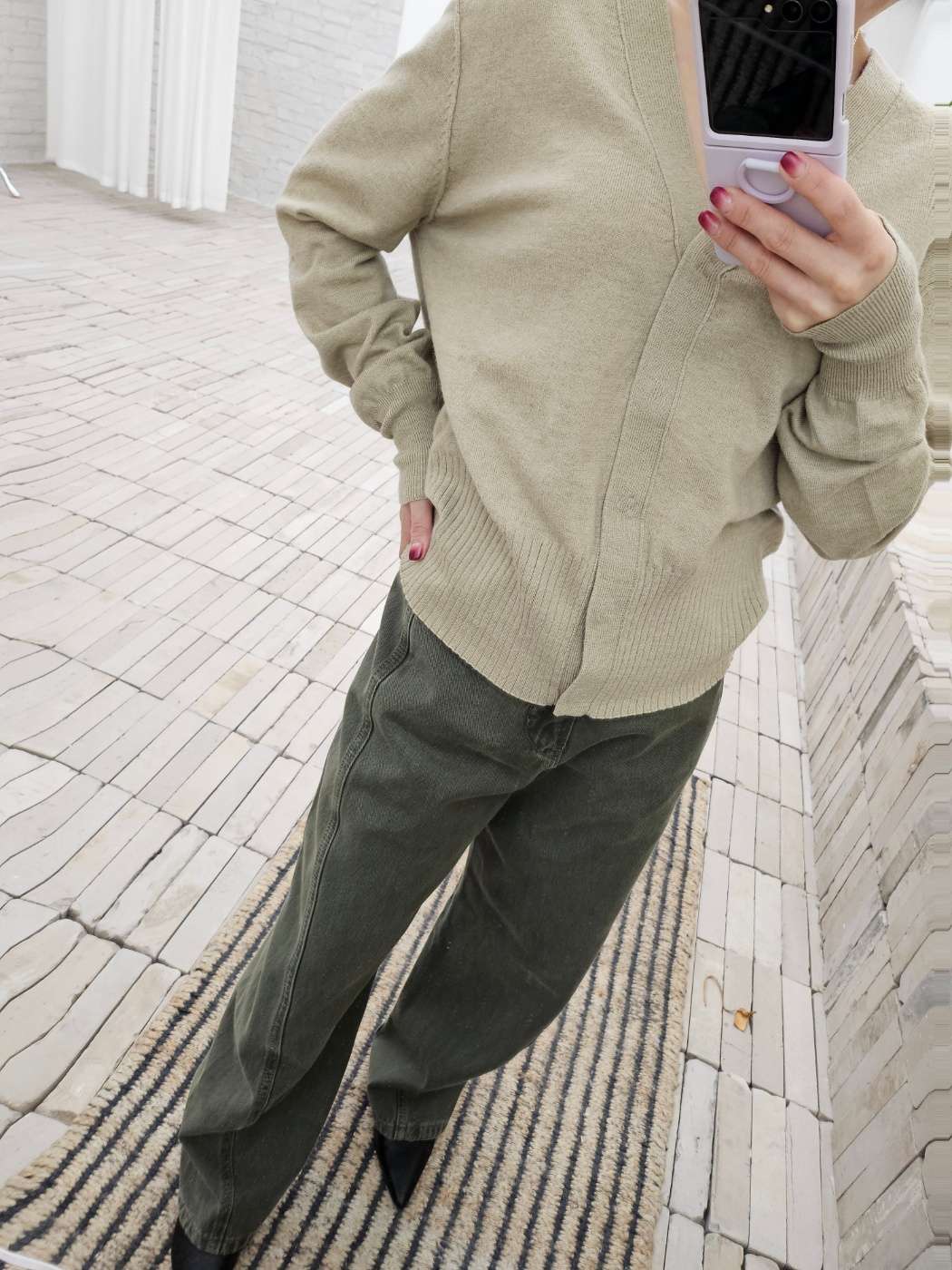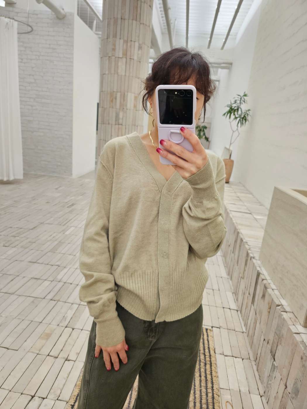 브이넥 디자인의 가디건 입니다
