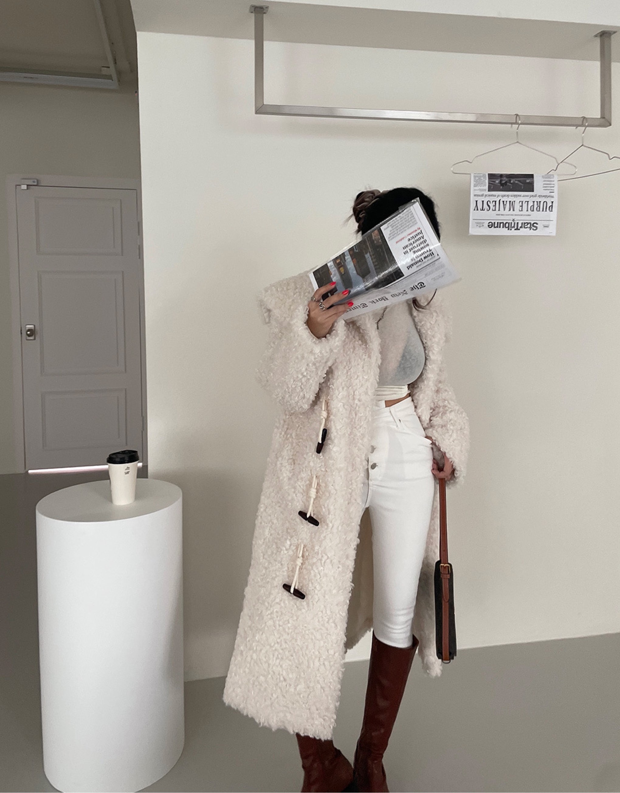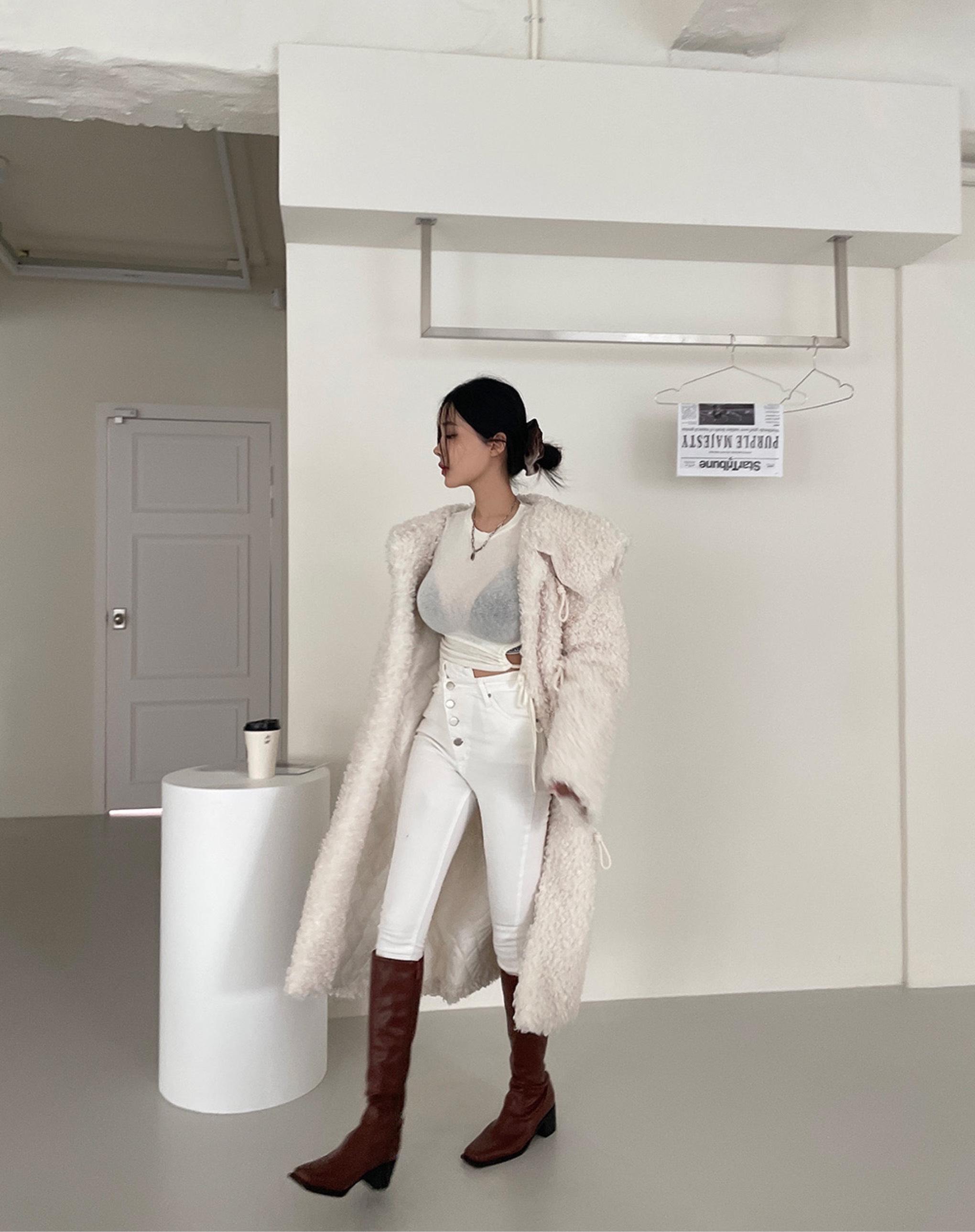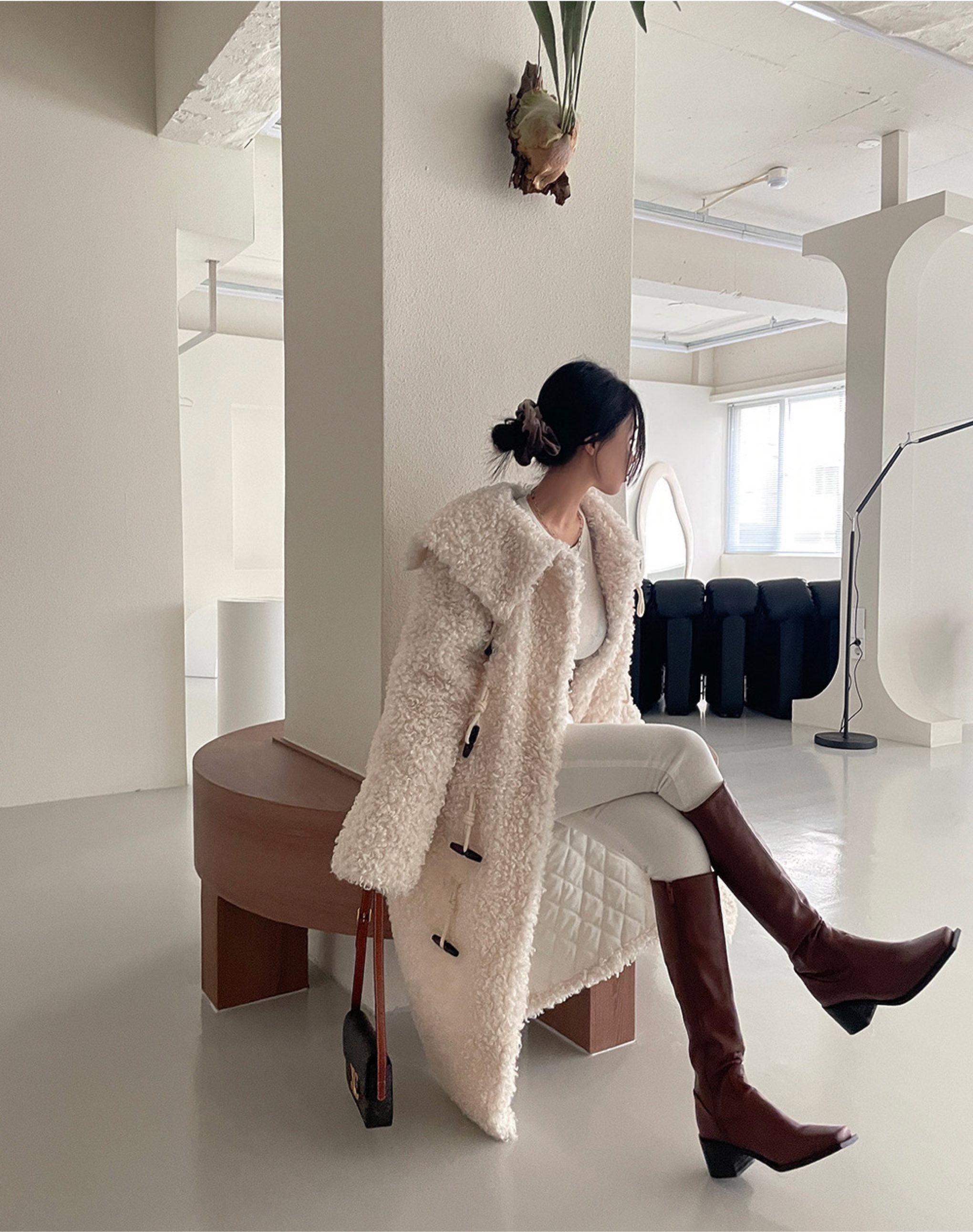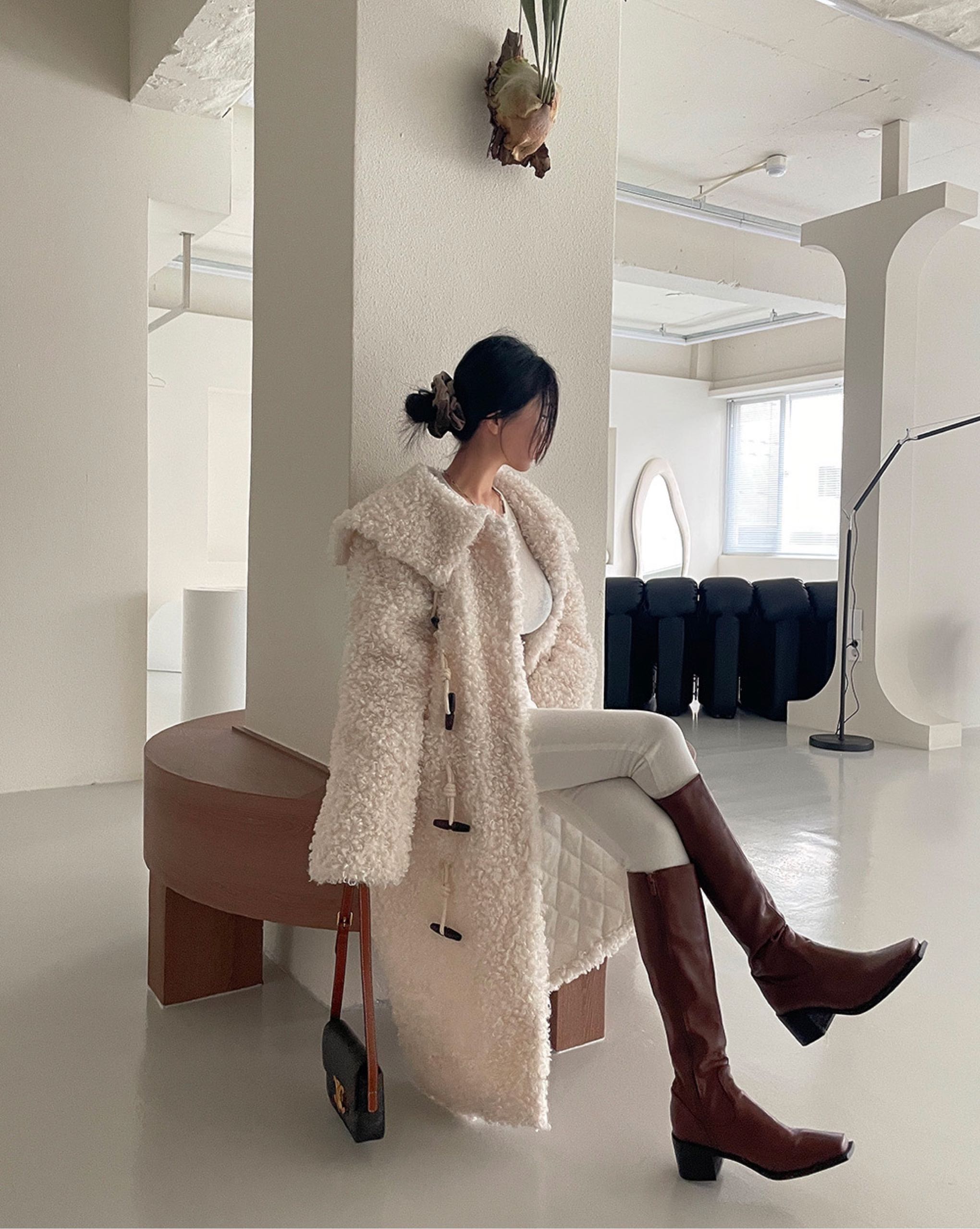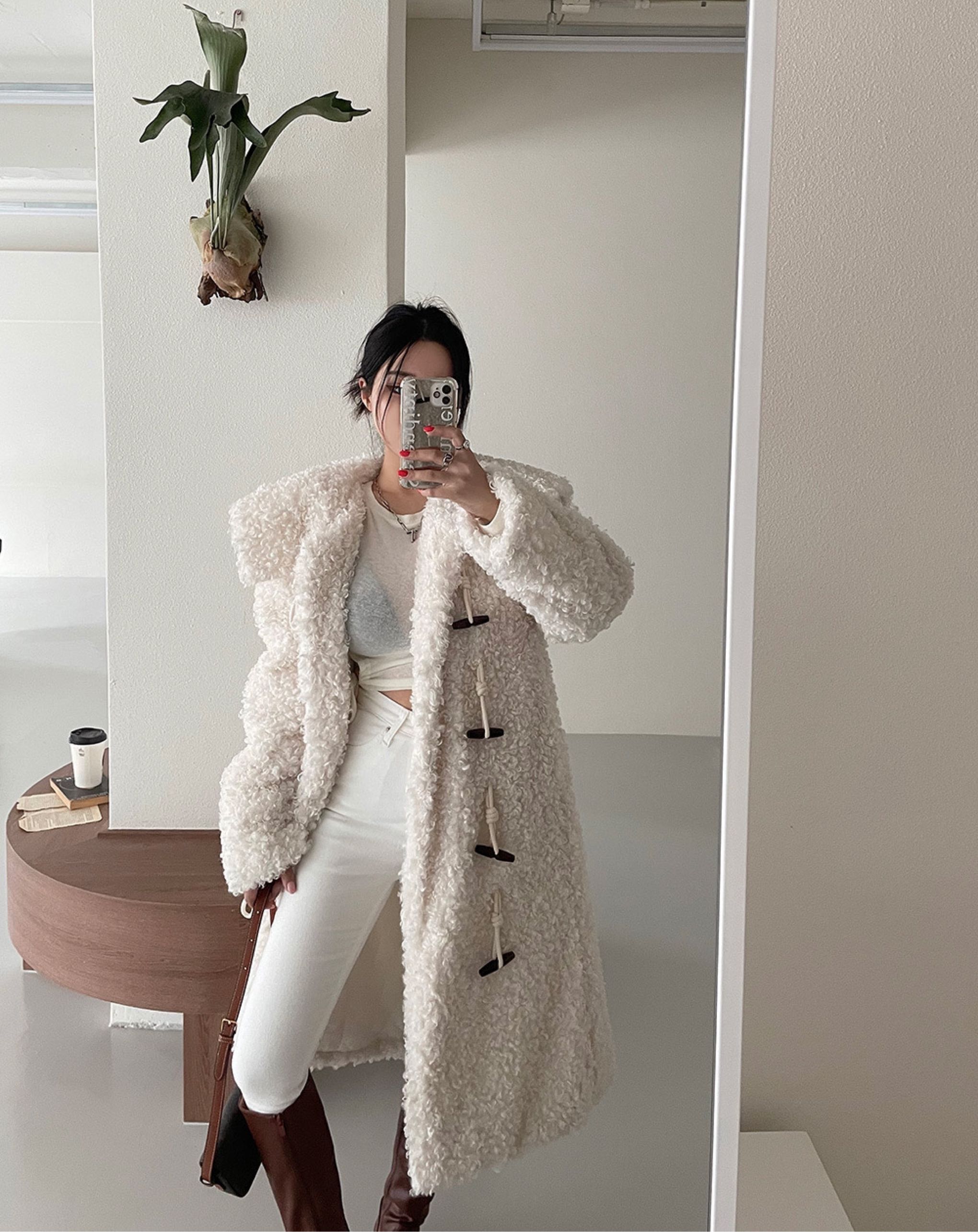 环保毛大领加棉外套세일러 양털 뽀글이