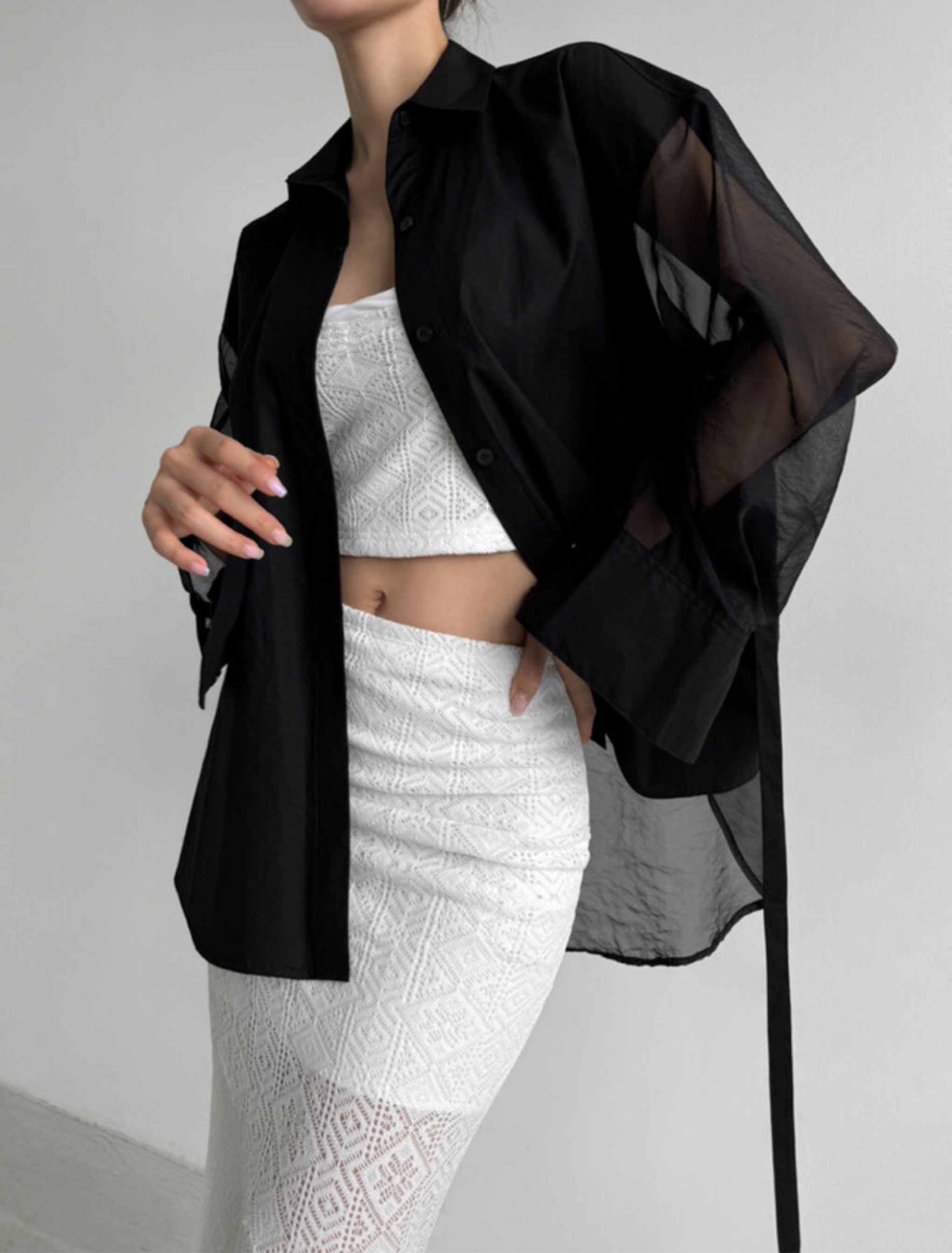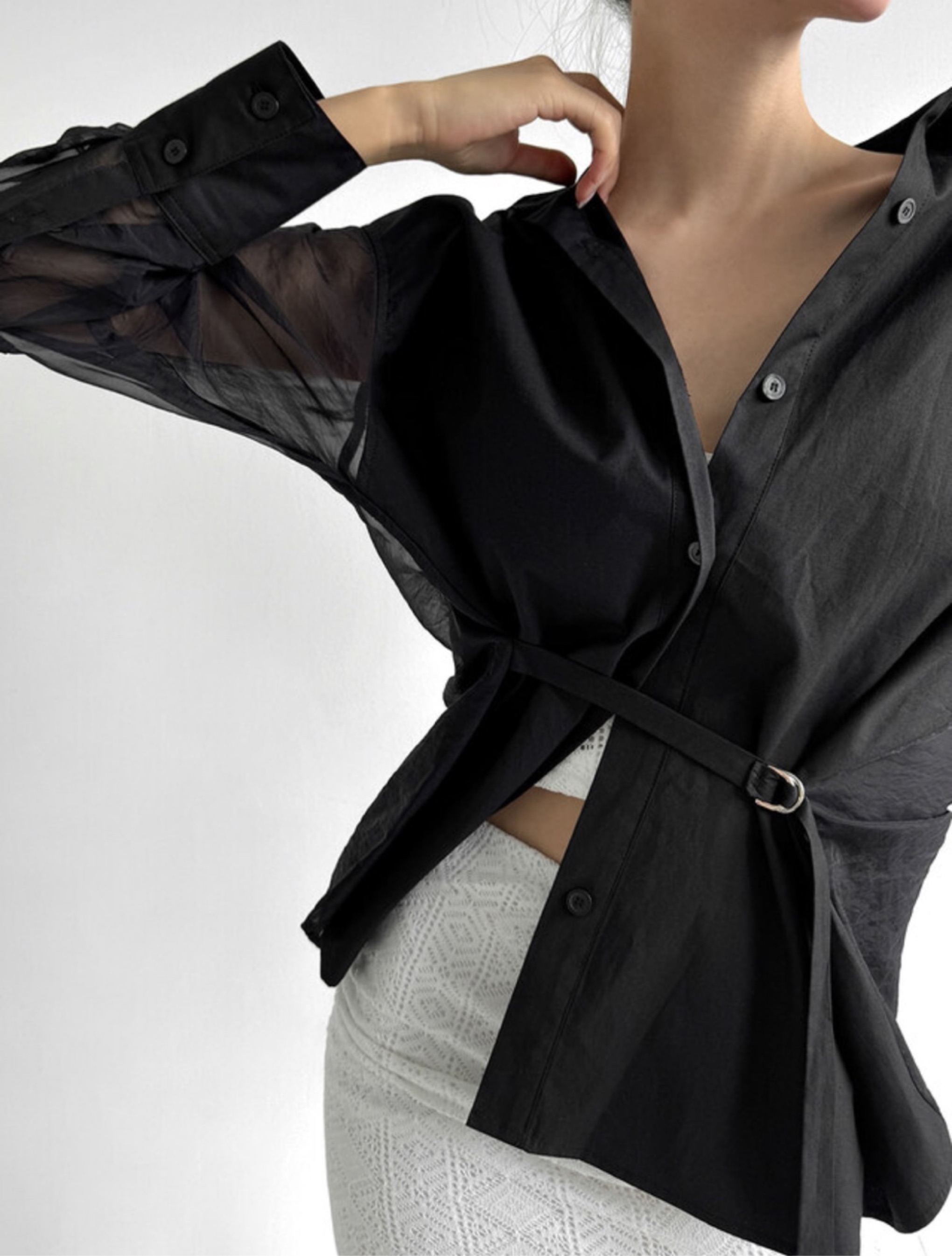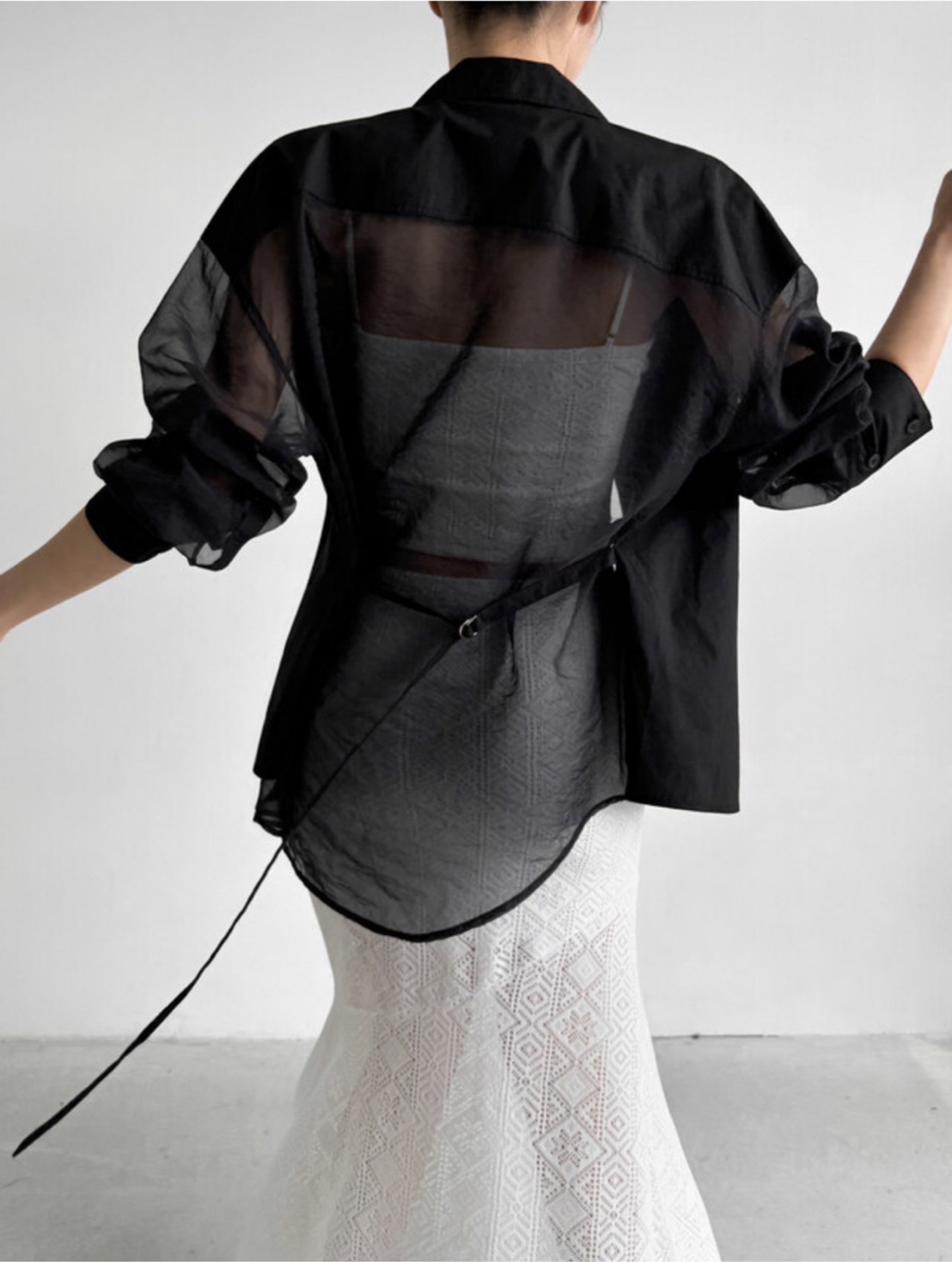系带后背透视衬衫프렌치 시스루셔츠