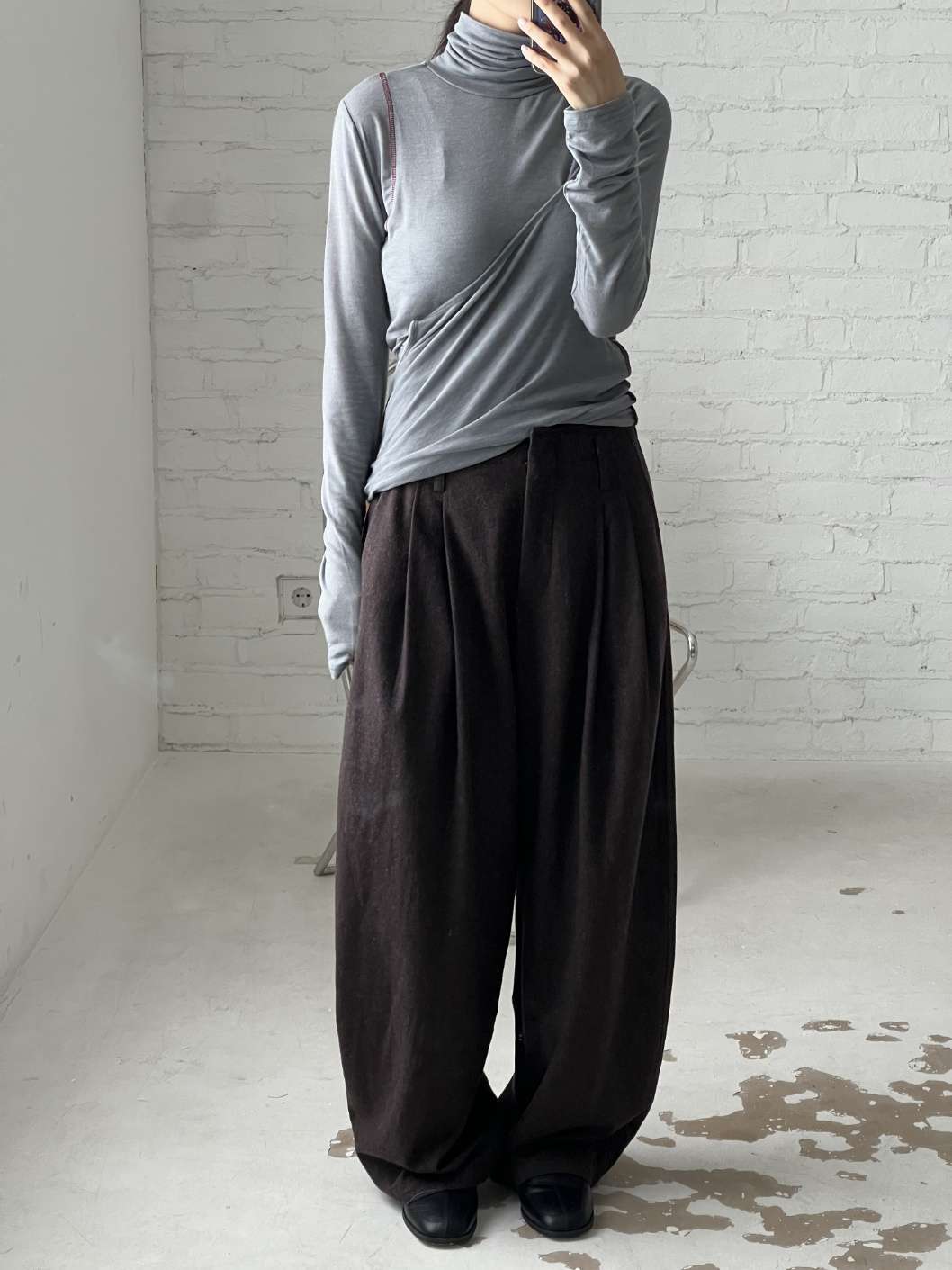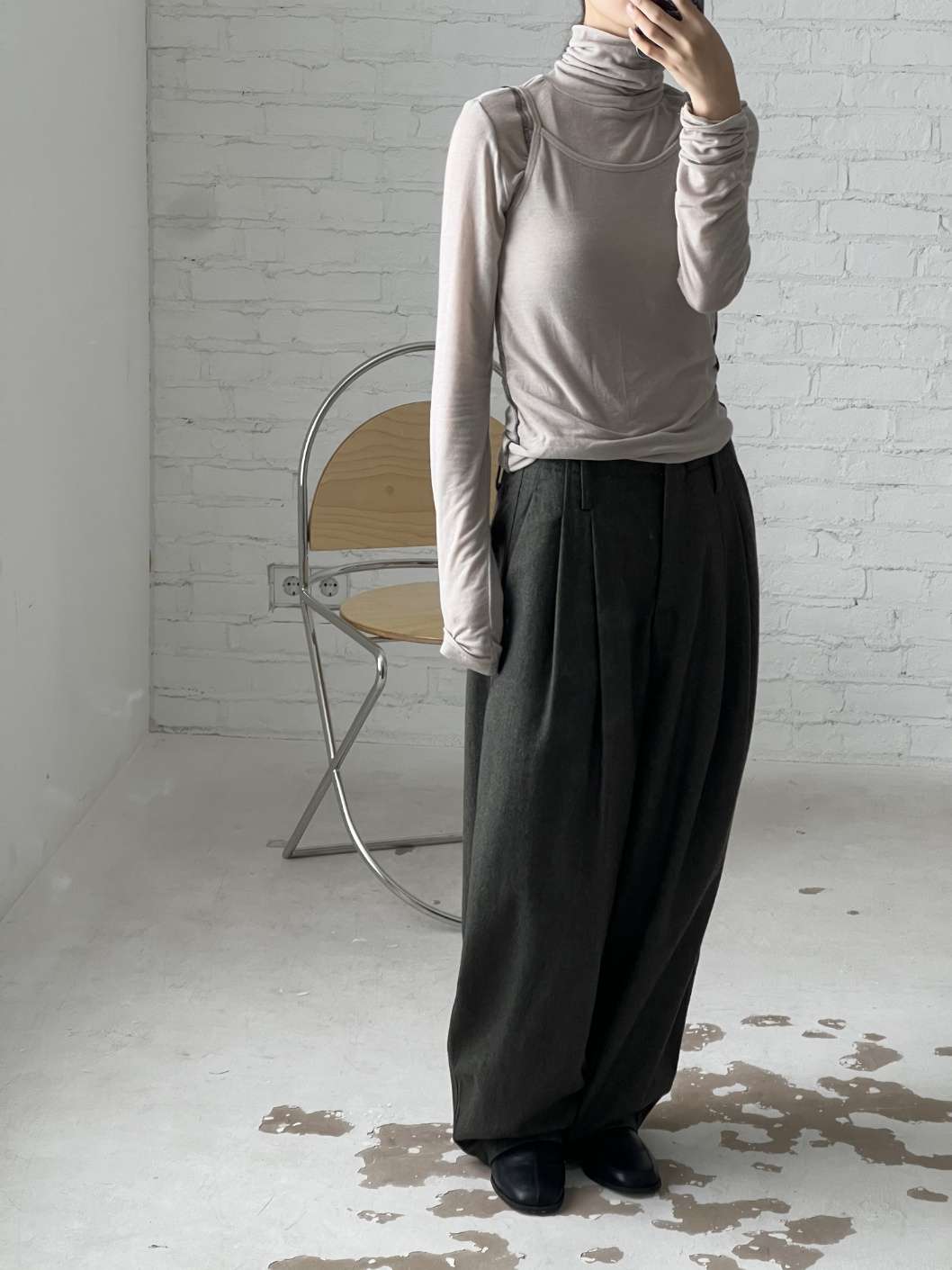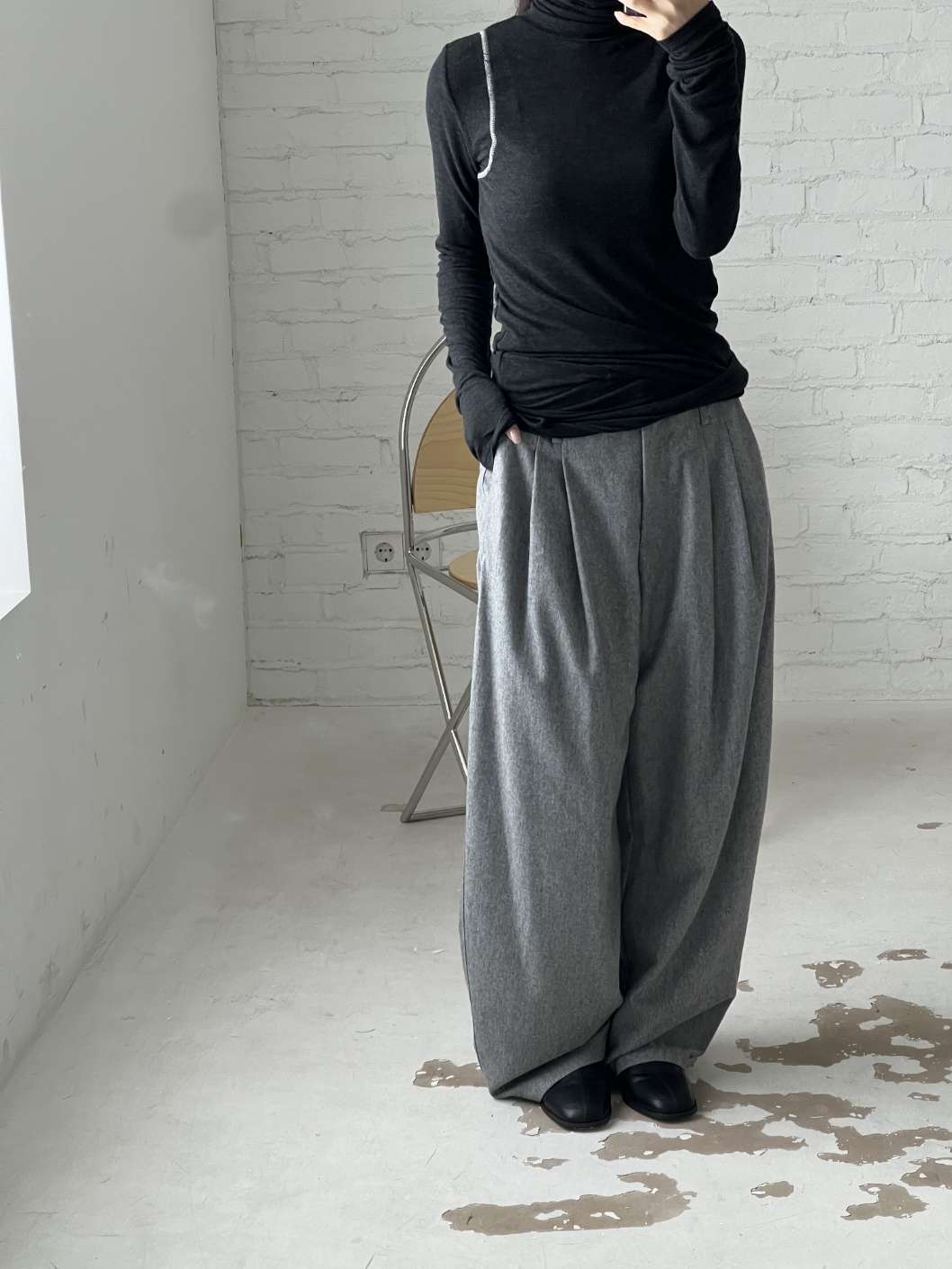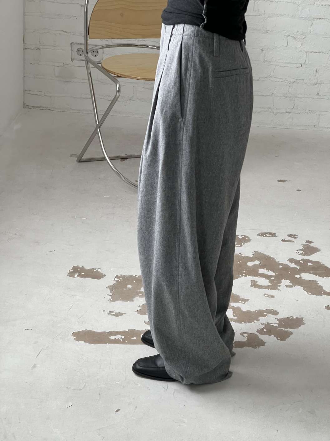 핀턱라인이 잡혀있으며 루즈한 핏감으로 착용가능합니다