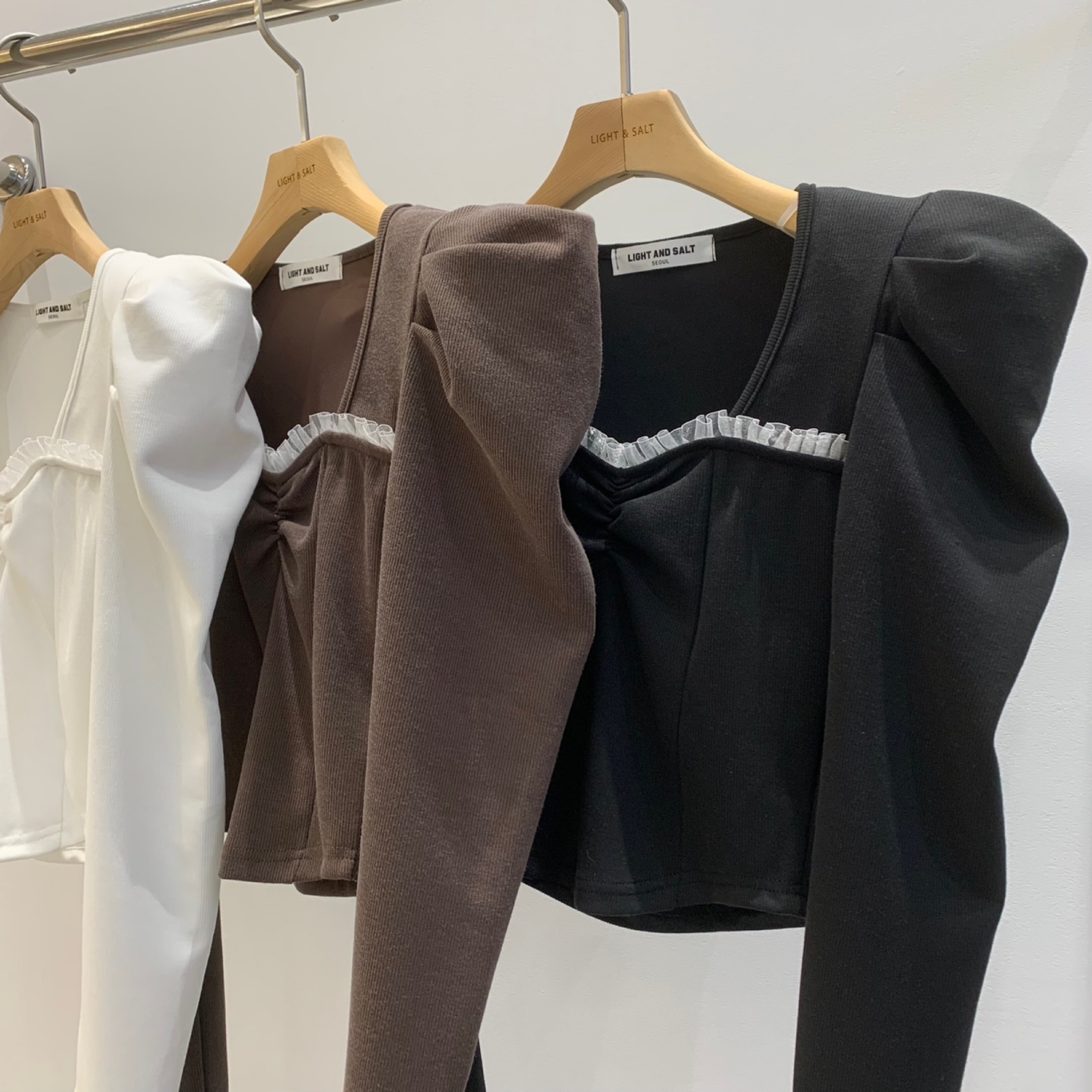 蕾丝泡泡袖打底衫바니 레이스티 (3color)