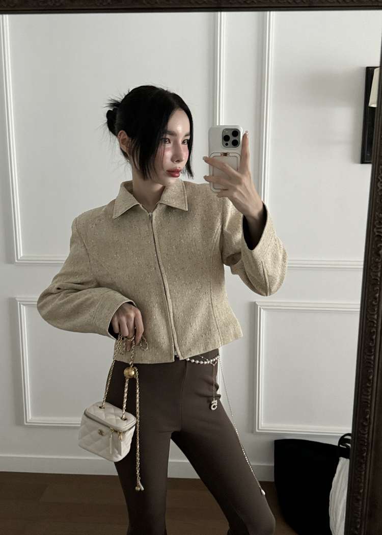 小香风翻领修身外套버킨 트위드 자켓