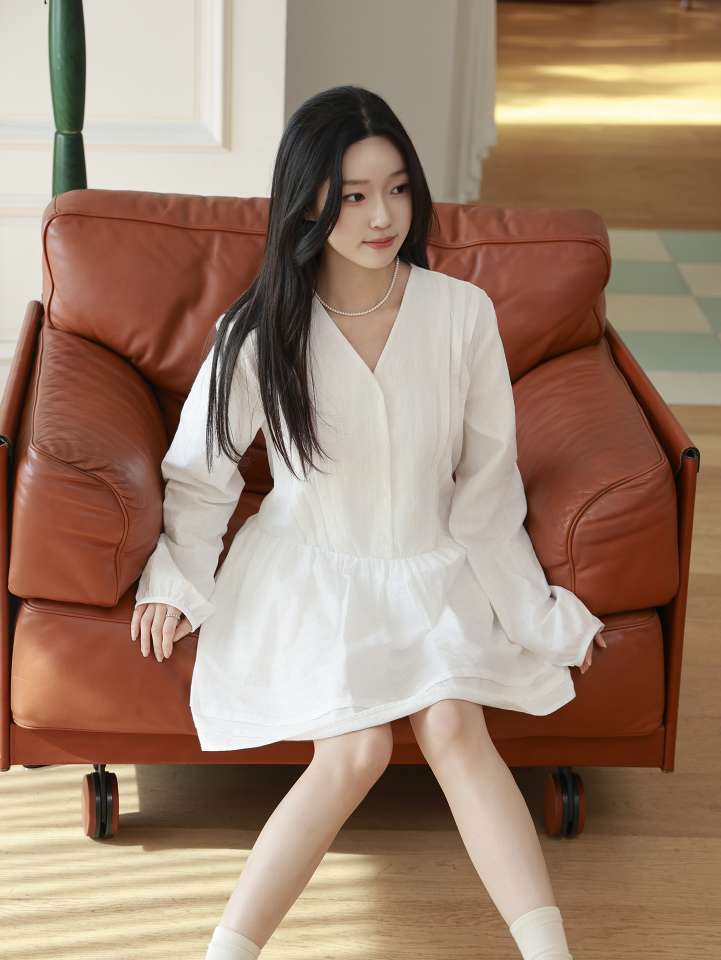 면 100% 핀탁주름 원피스 翻译