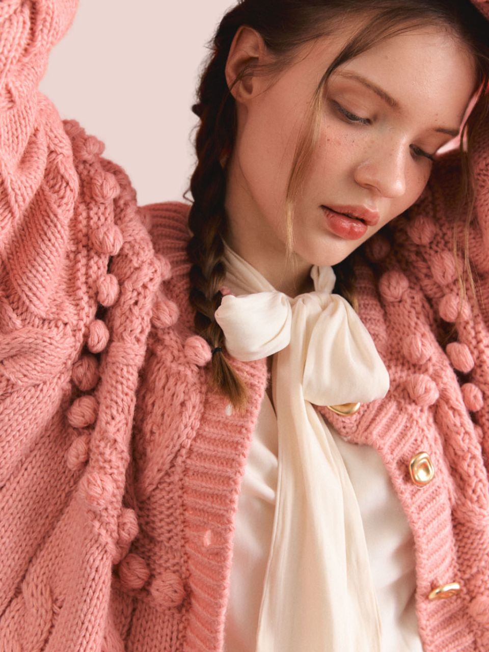 pink ivory/wool 70% acrylic 15% nylon 15%