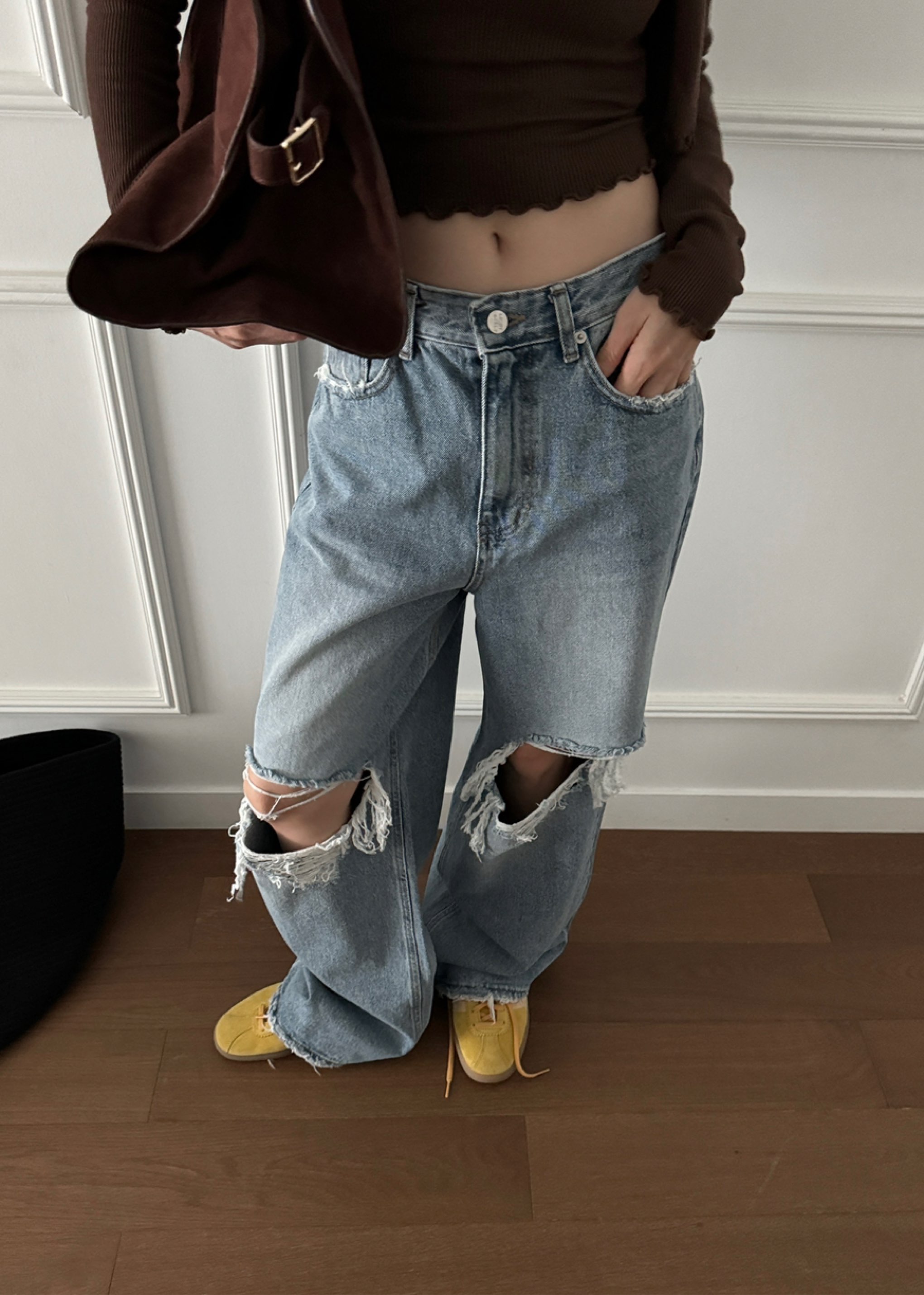 当前位置:首页 > 牛仔裤 > 破洞宽松牛仔裤구제 와이드 청바지