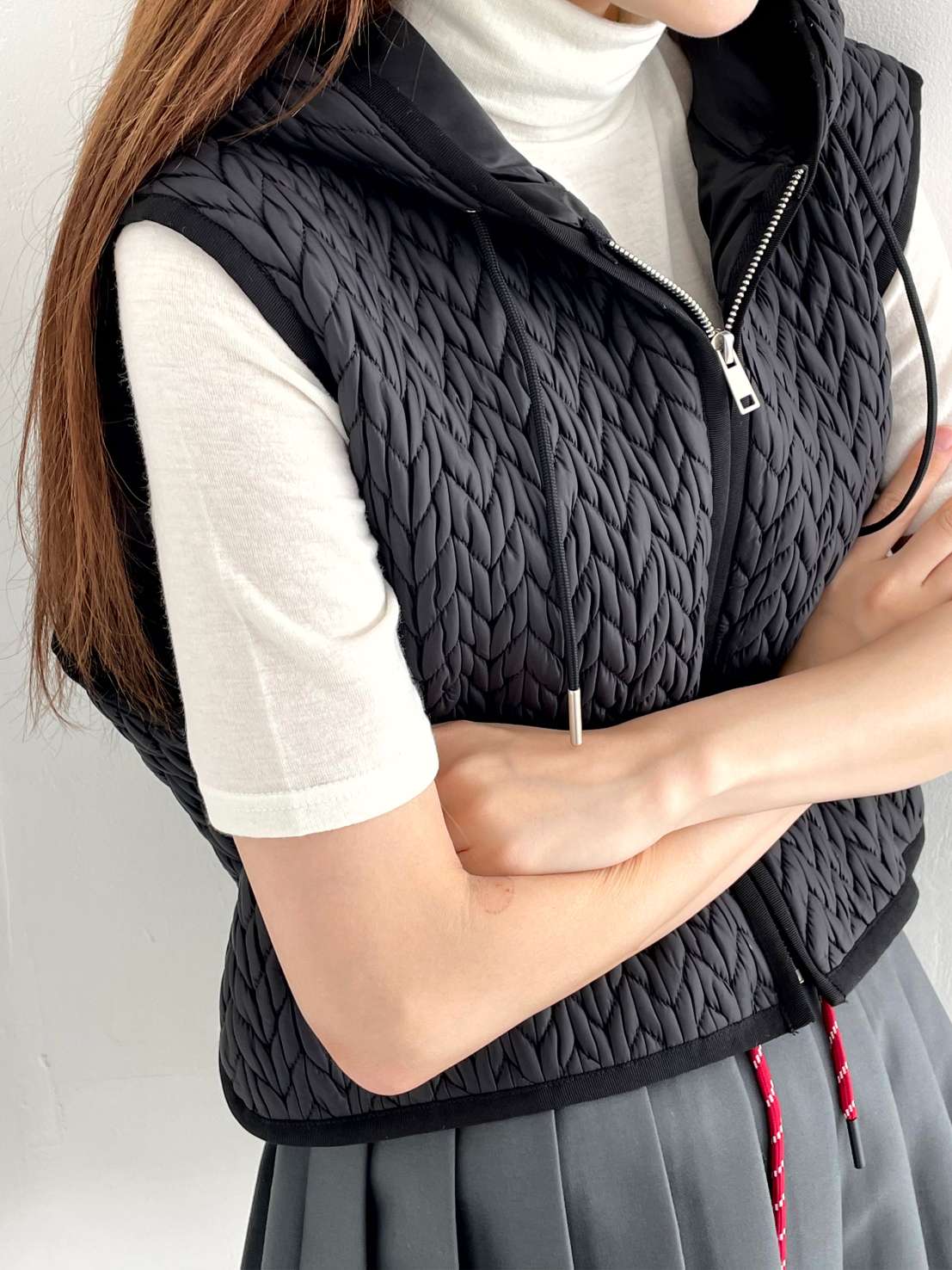 예쁜 타이케이블 패턴의 퀼팅베스트입니다 翻译