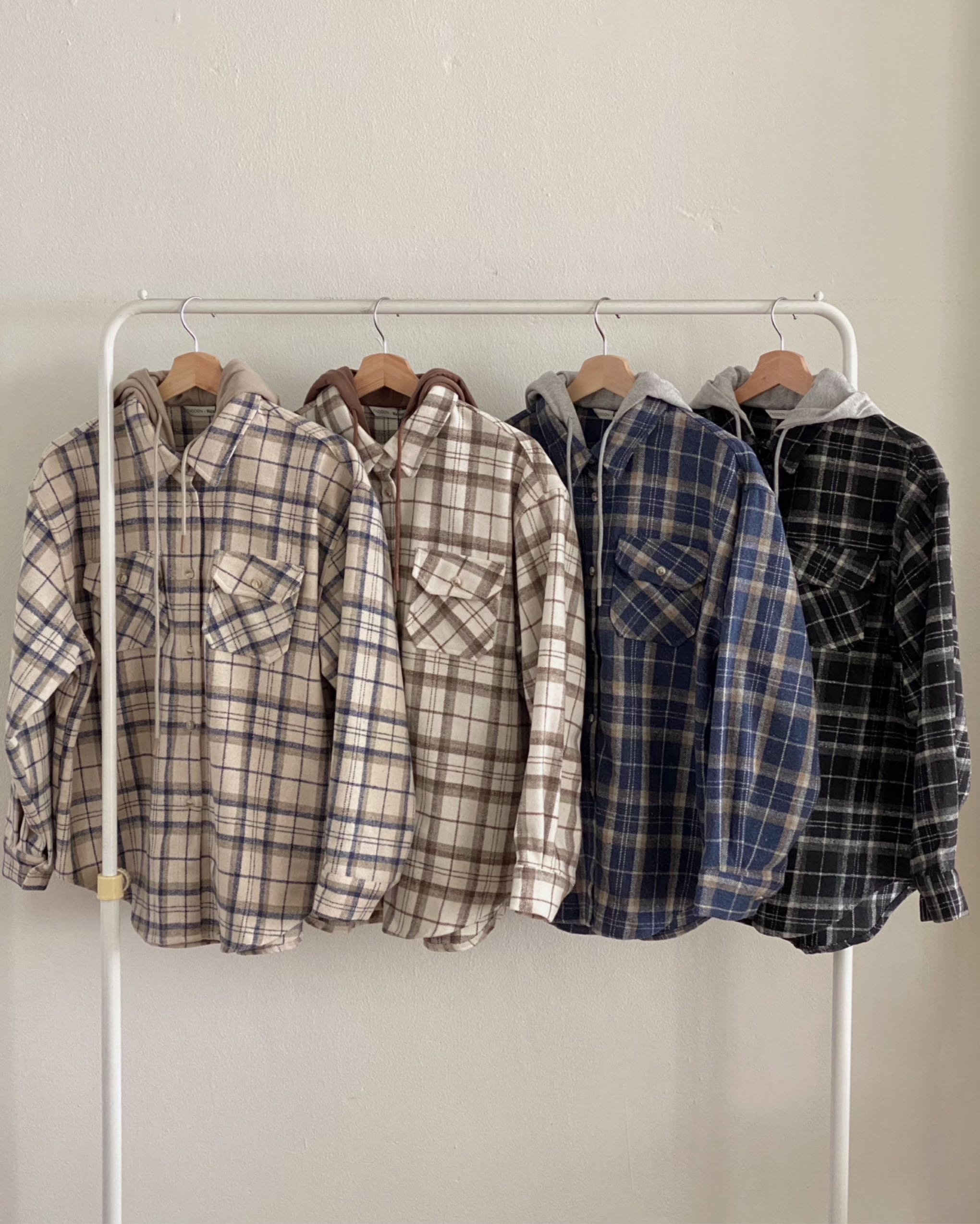 모직체크후드셔츠