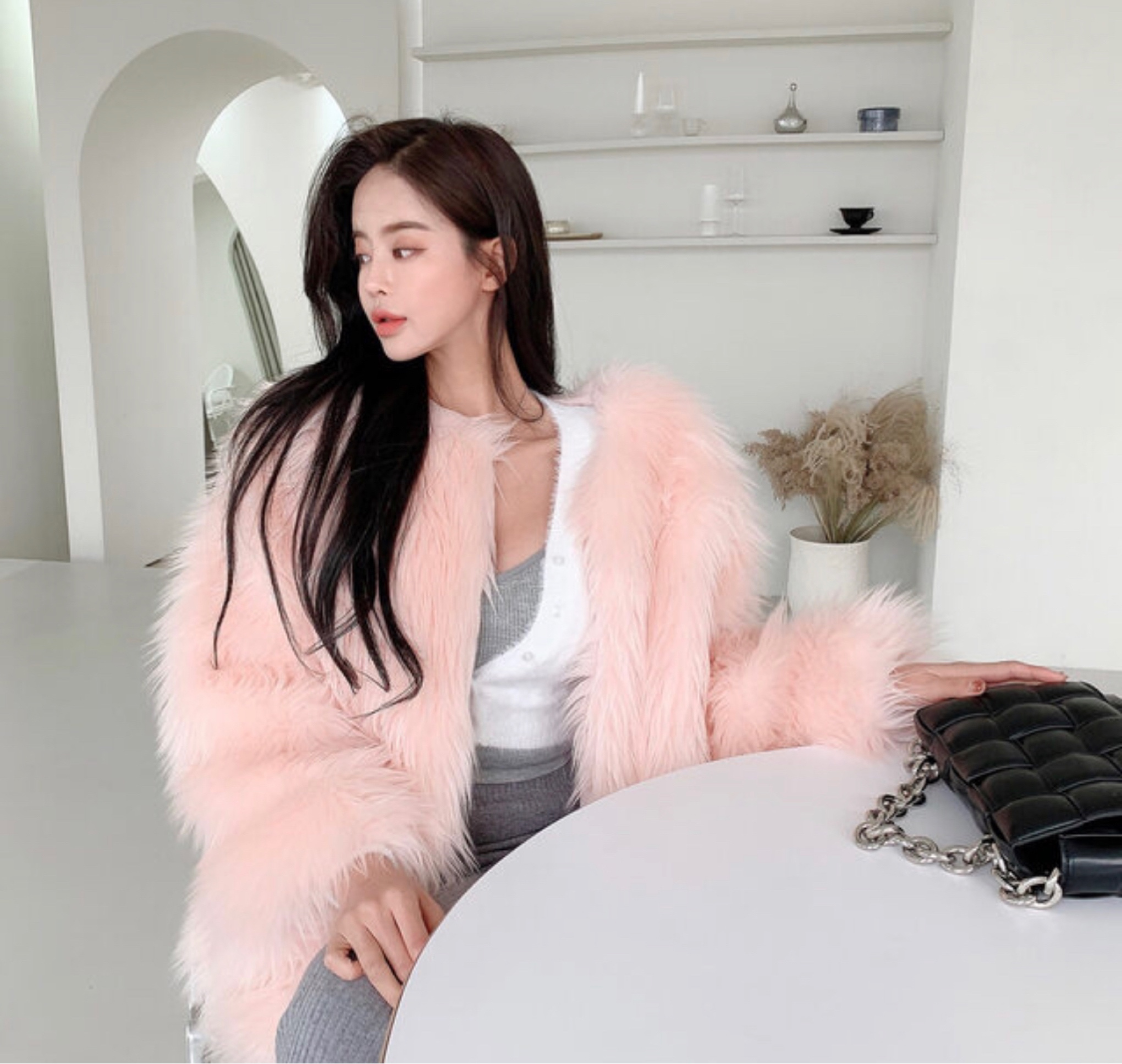 环保毛纯色外套샤기 페이크 폭스퍼자켓 (3color)