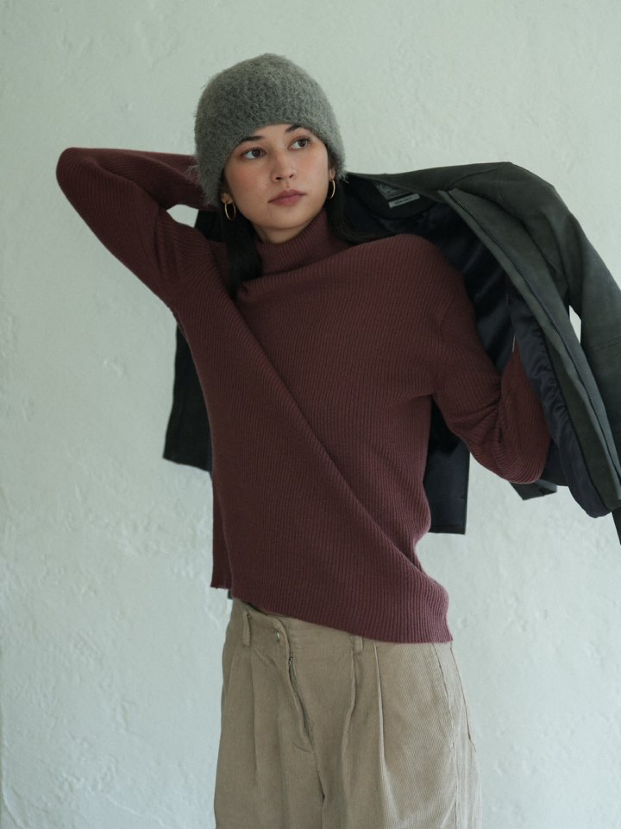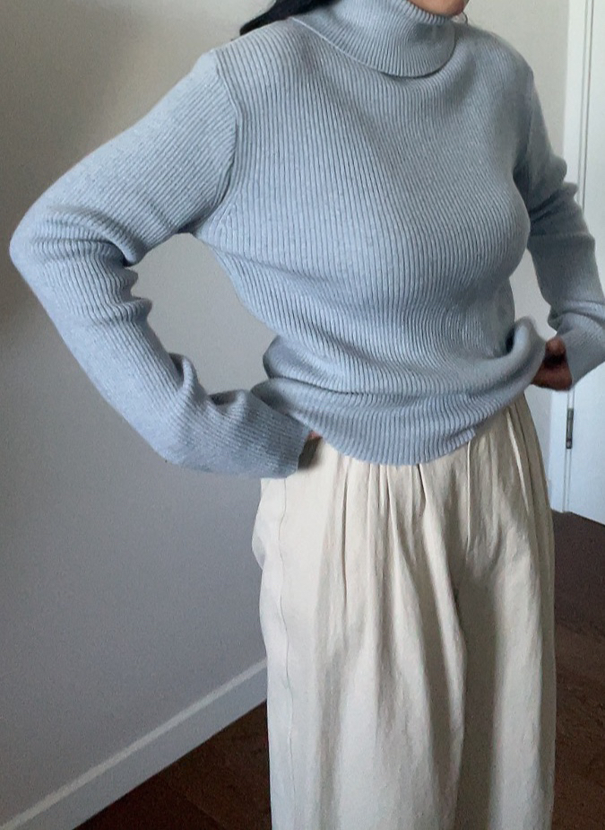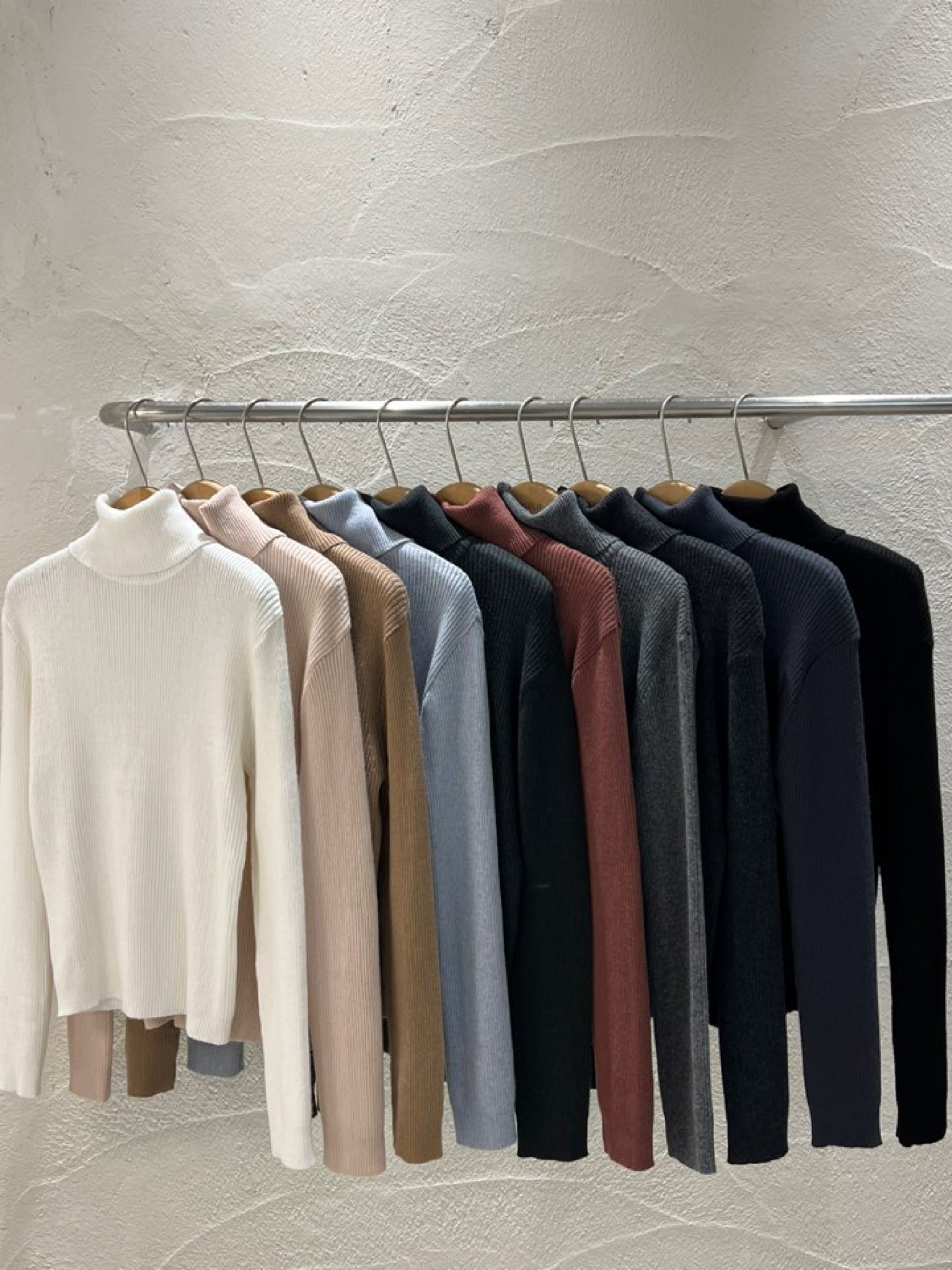울 혼방 원사로 제작된 베이직한 목폴라 니트입니다.