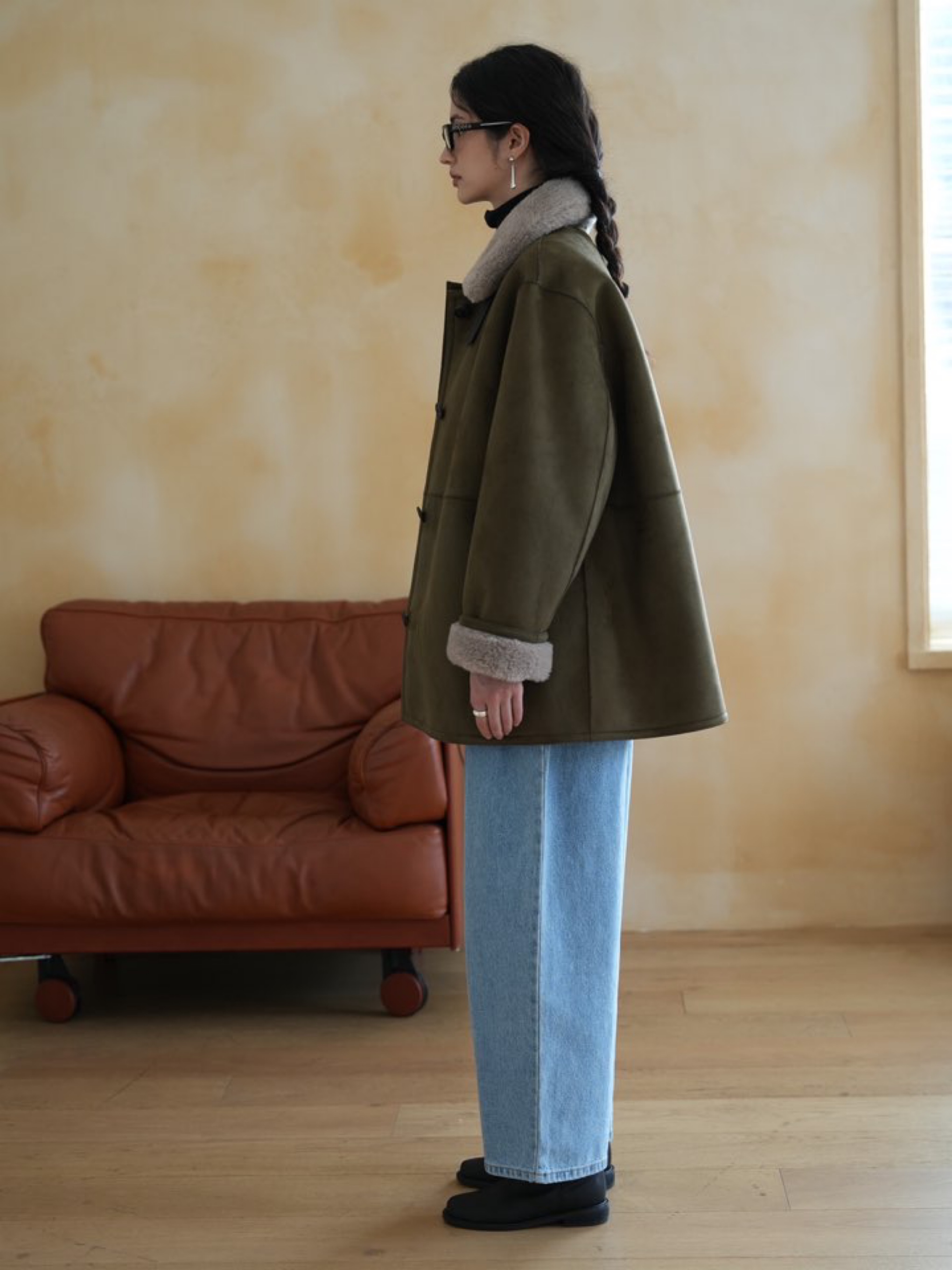 *클래식한 무드의 하프 무스탕 코트