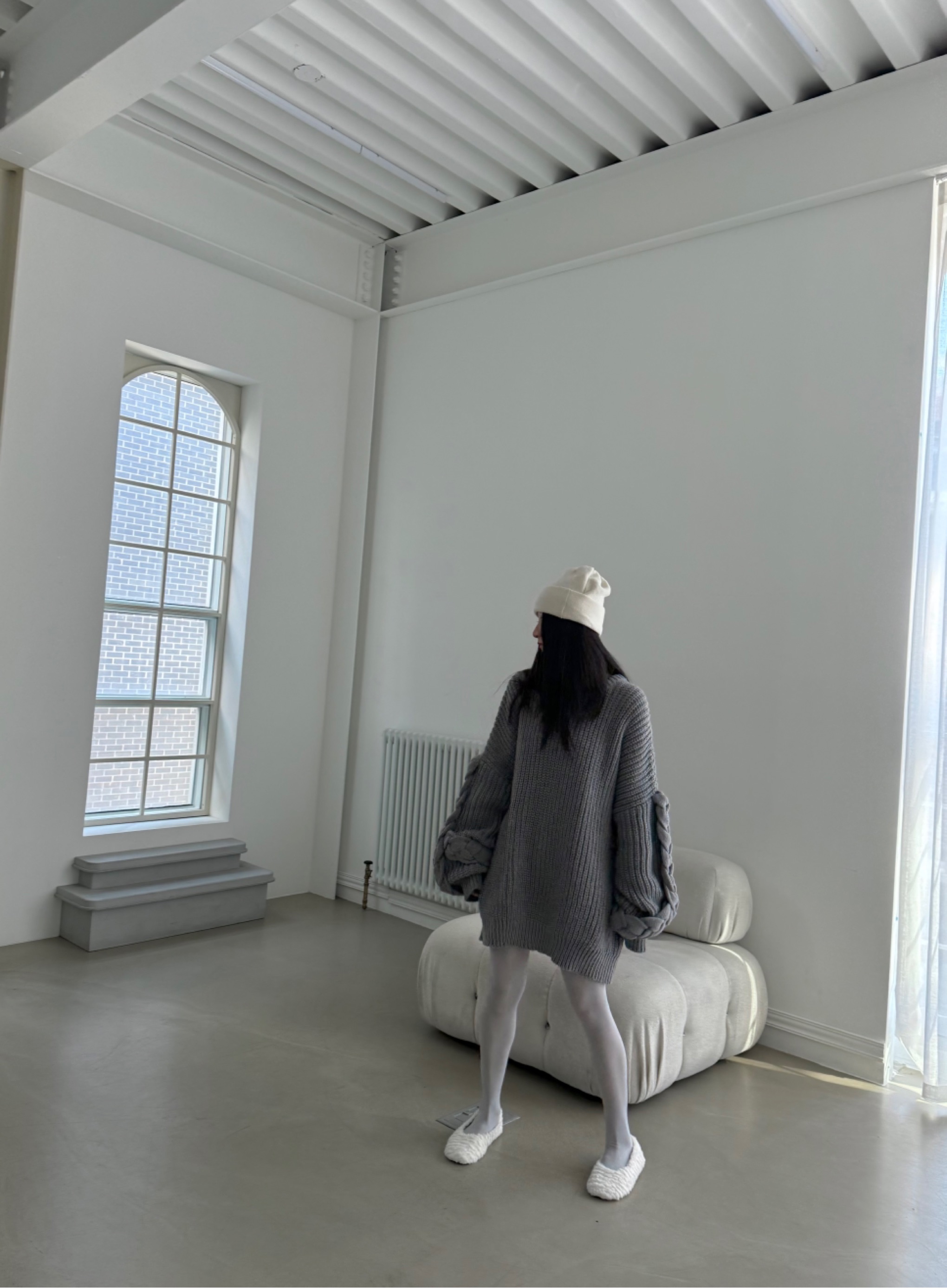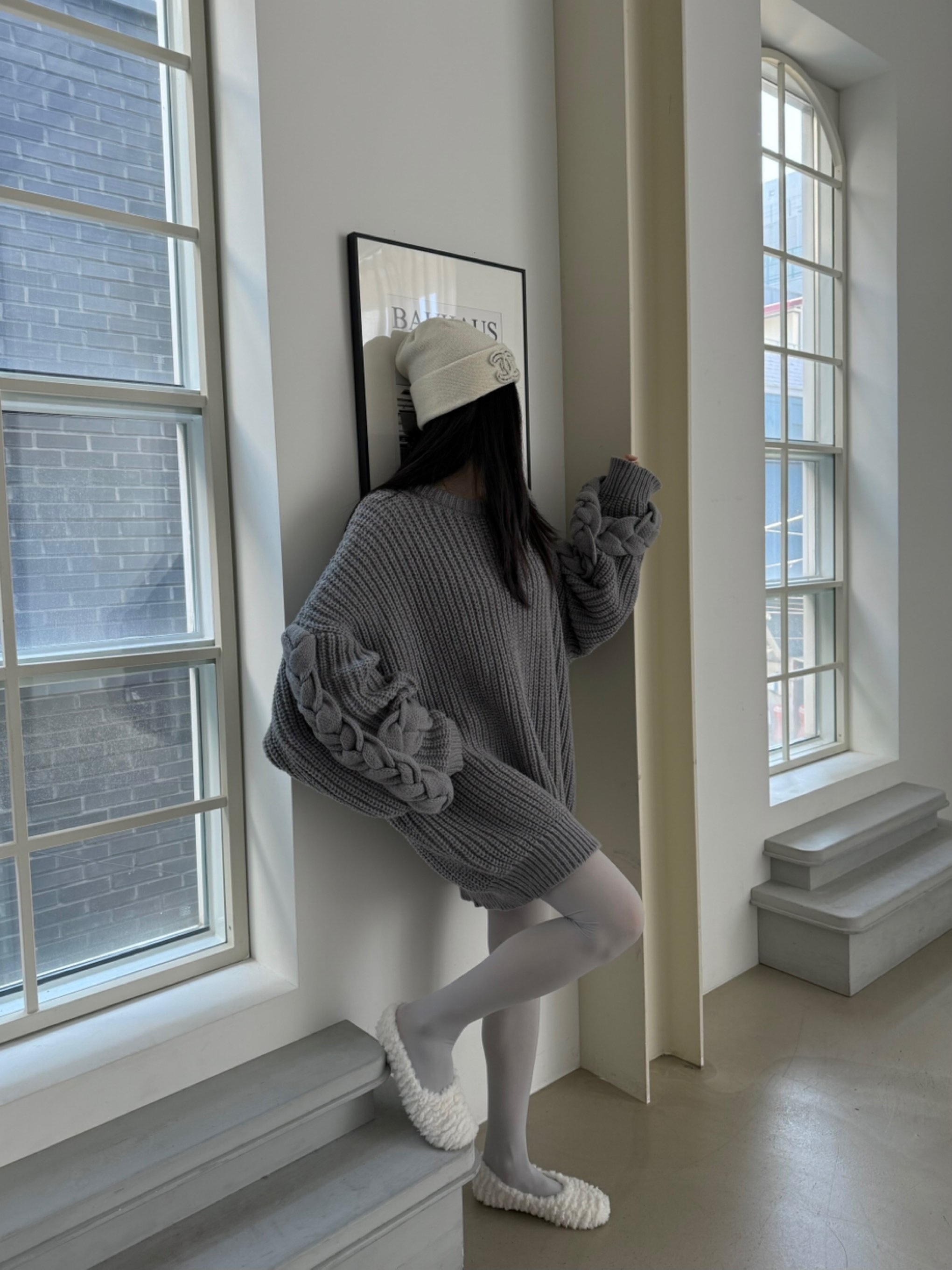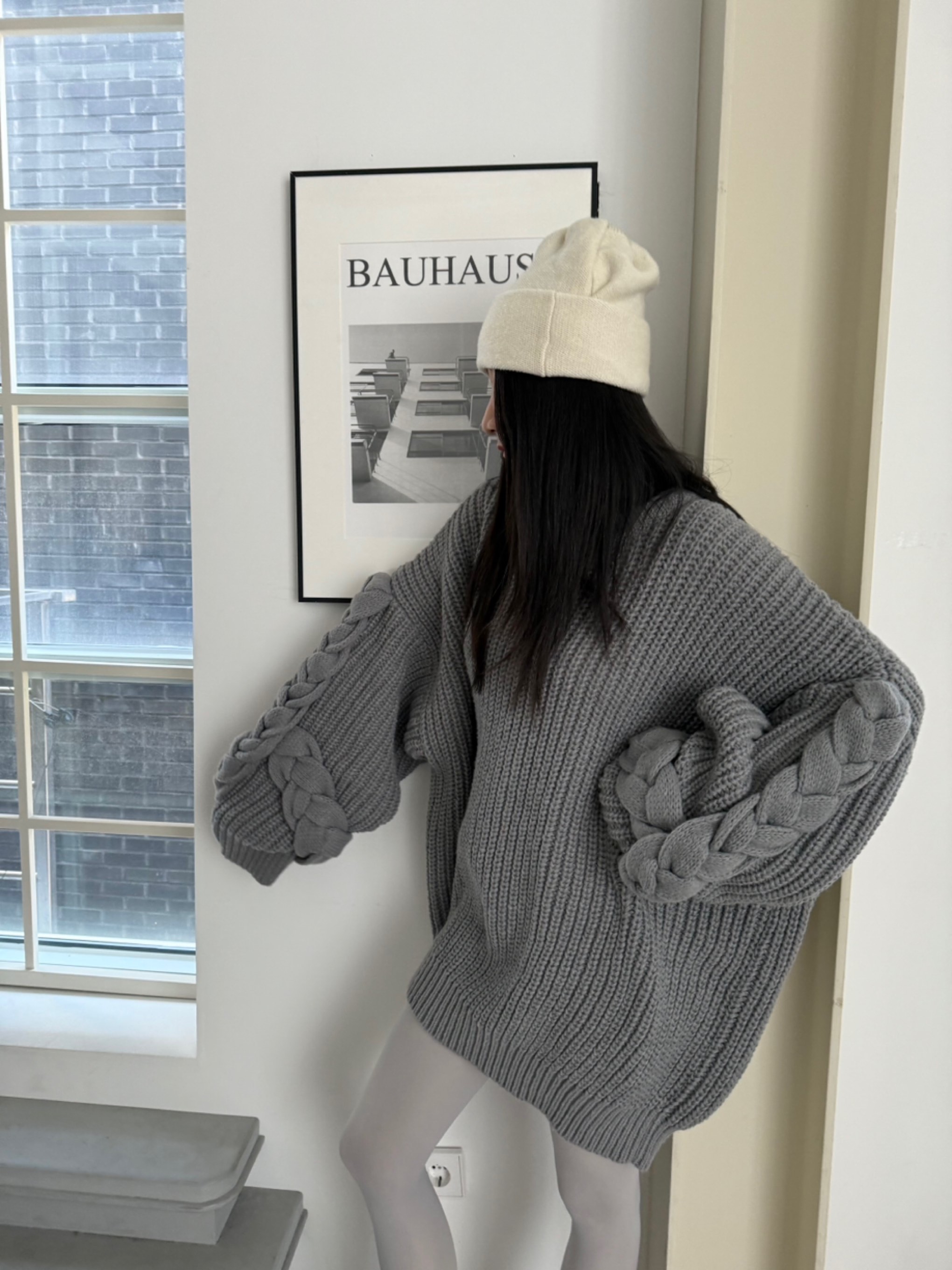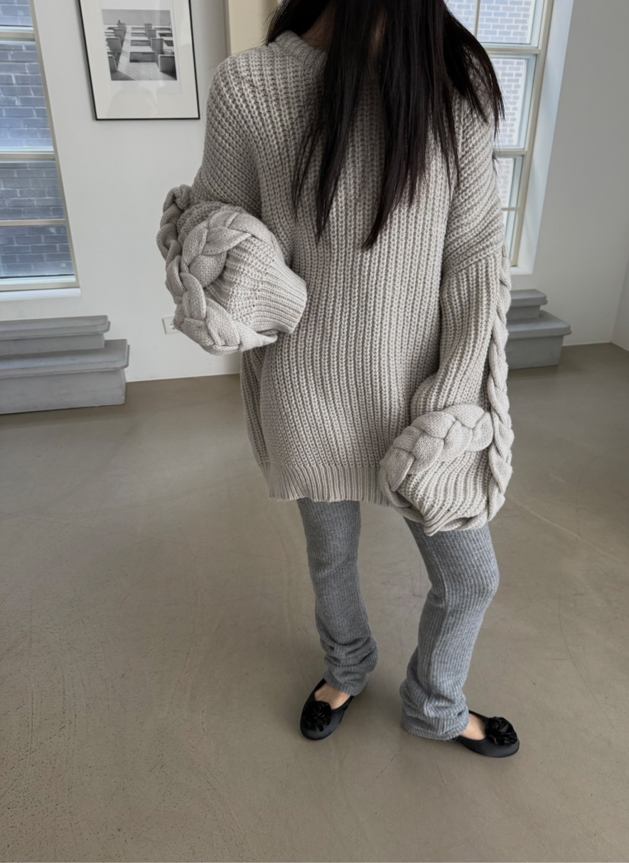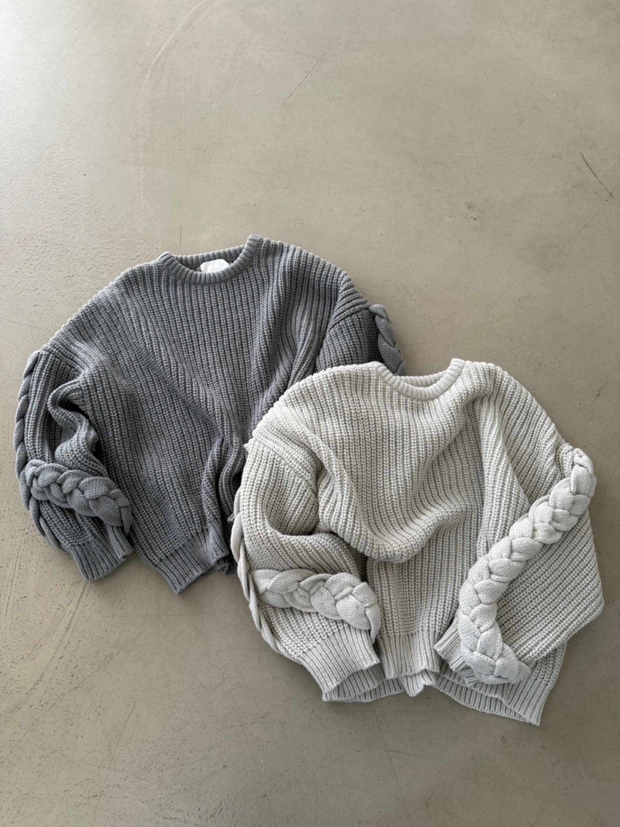 오버핏소매핸드메이드꽈베기니트 翻译