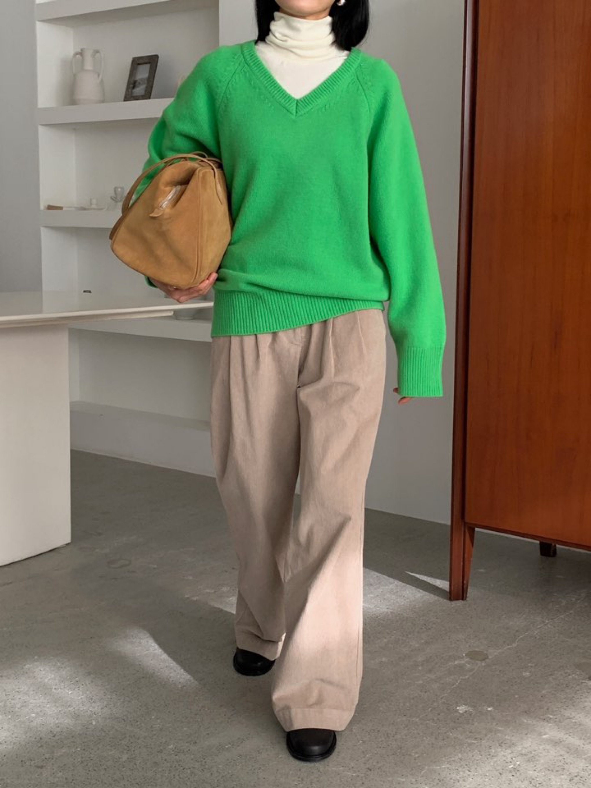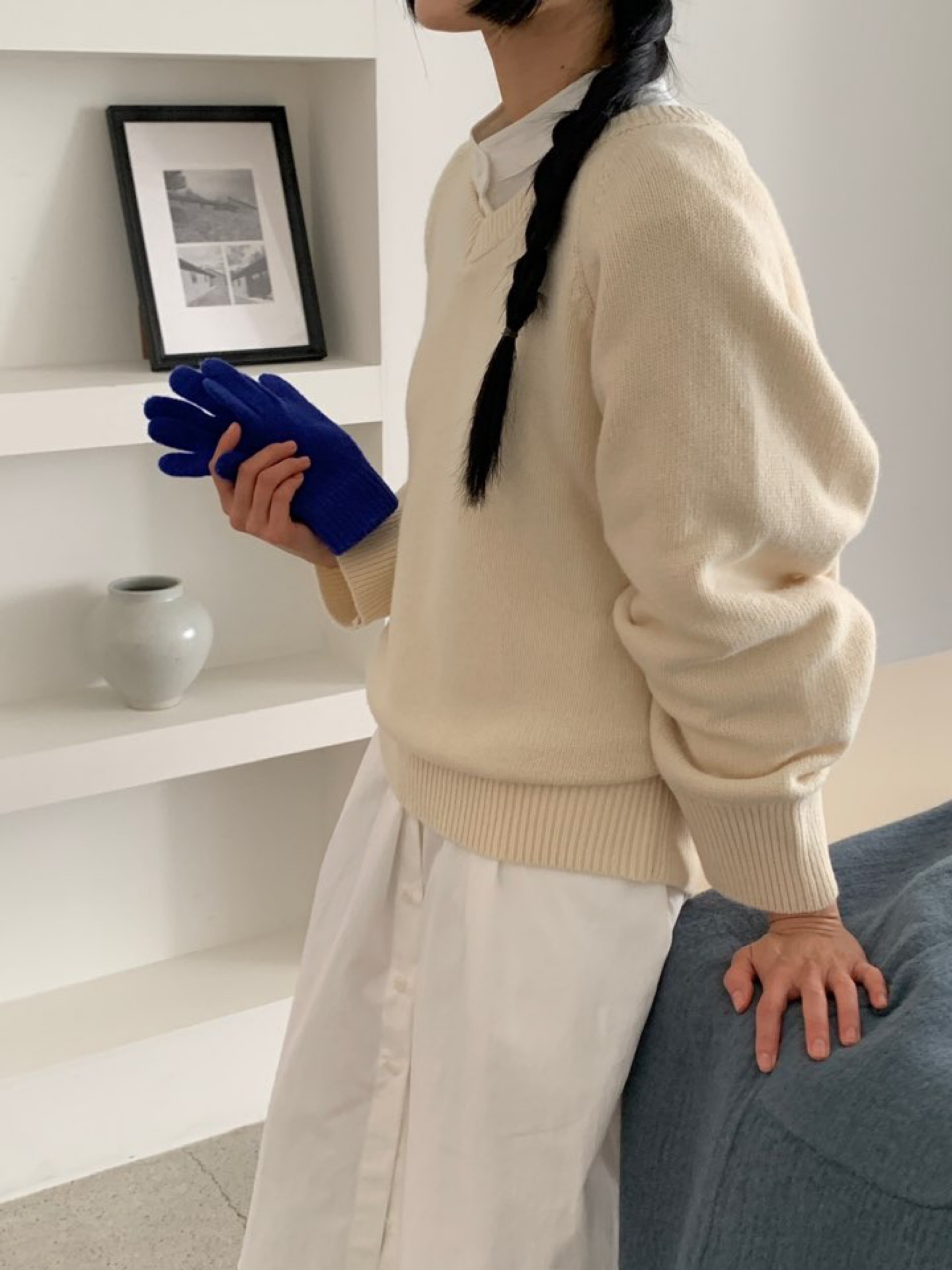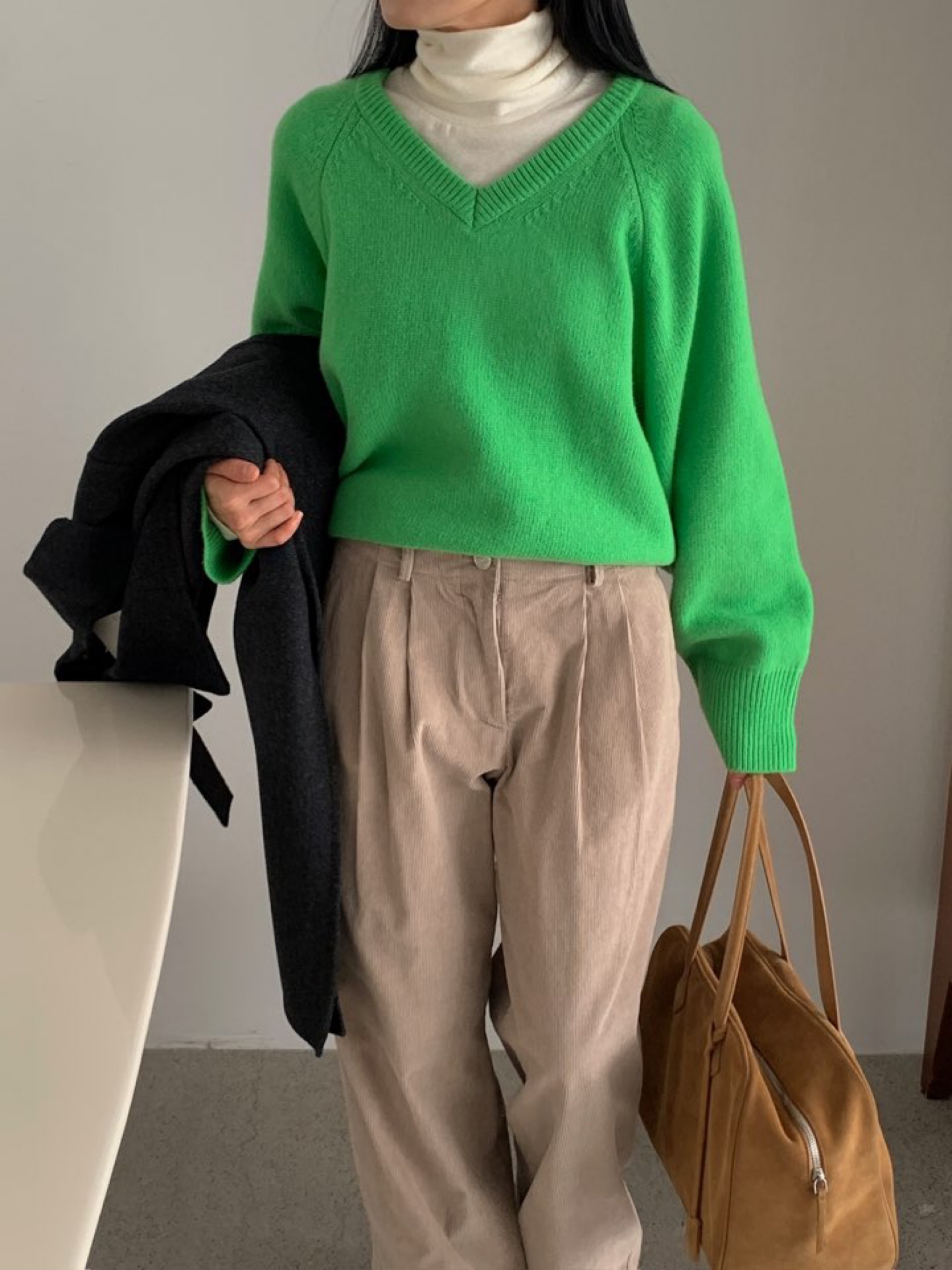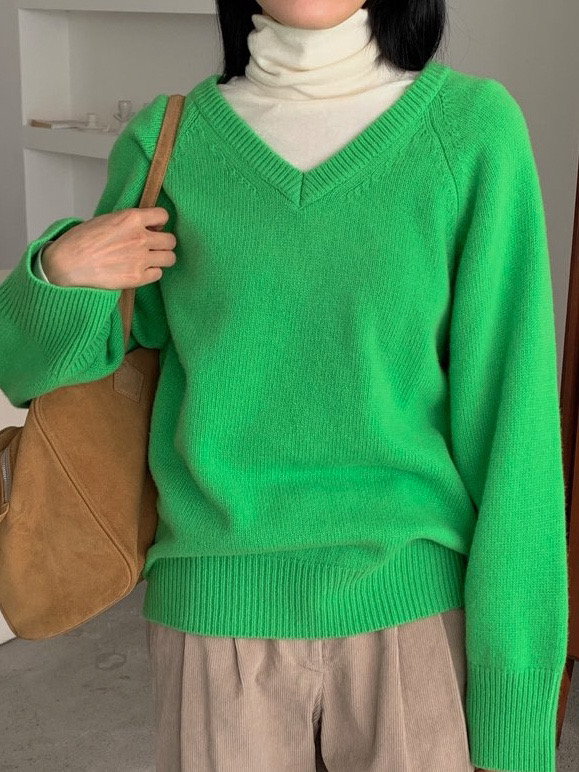 *베이직한 무드의 세미 오버핏 브이넥 래글런 슬리브 니트