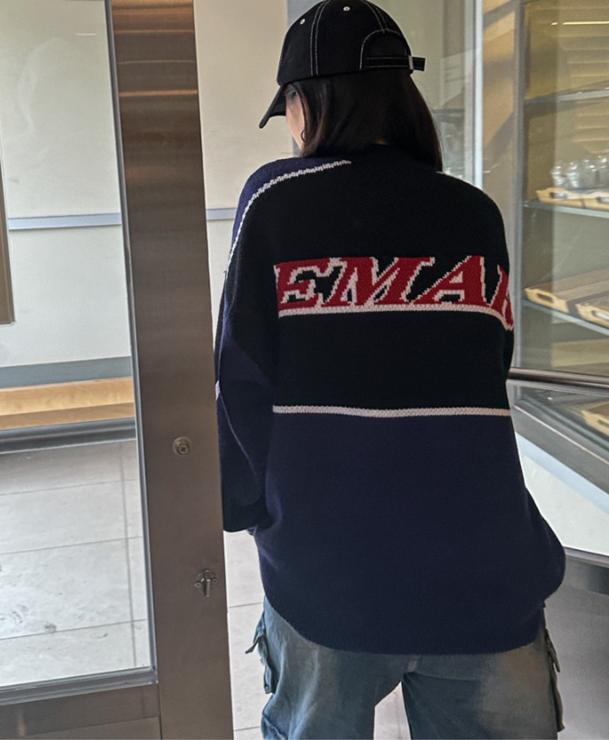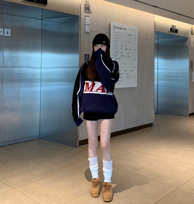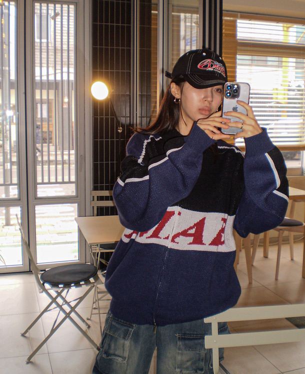 *전체적인 엠알 로고 나염이 포인트인 데일리 니트집업!!