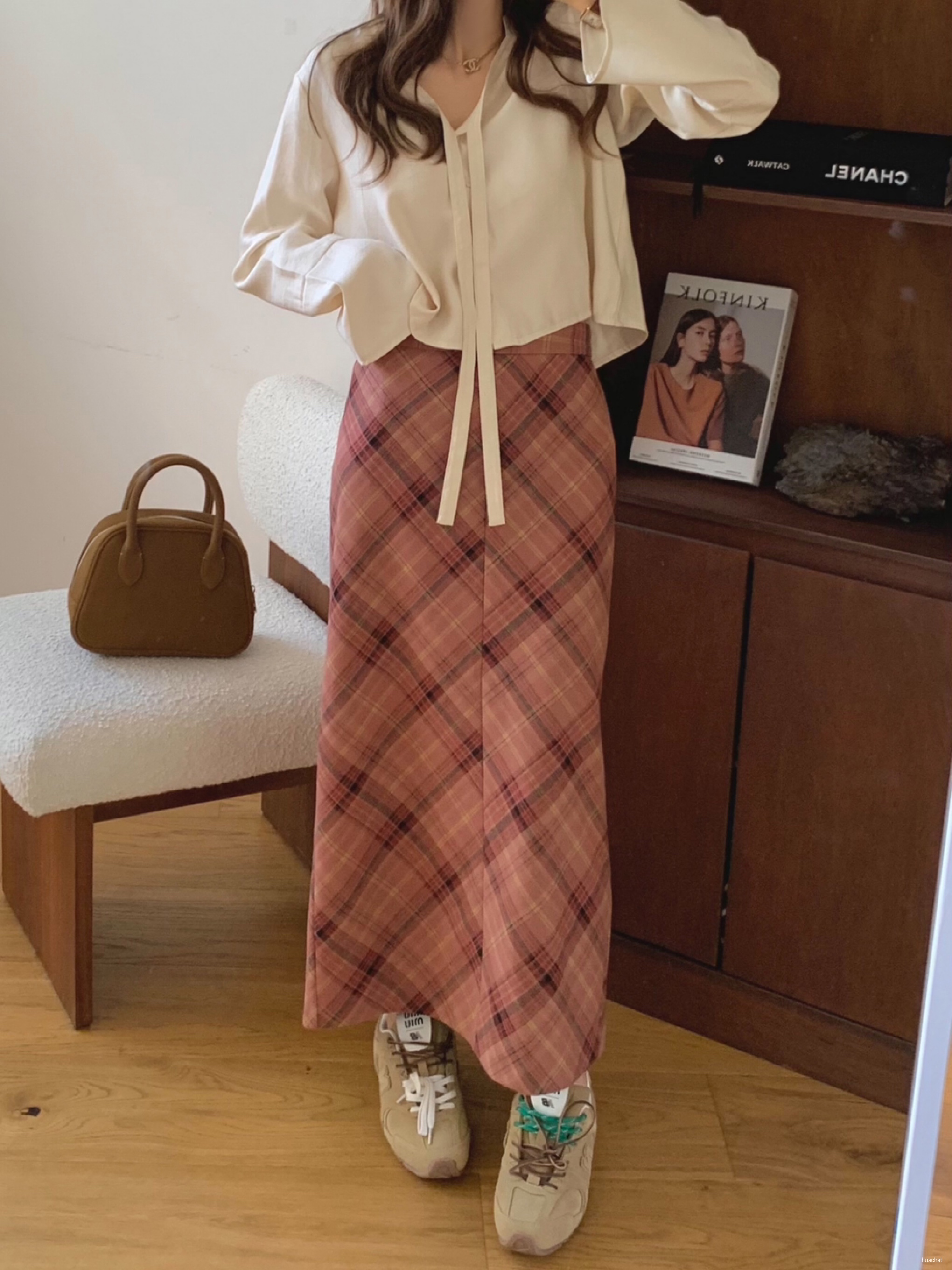 롱체크스커트