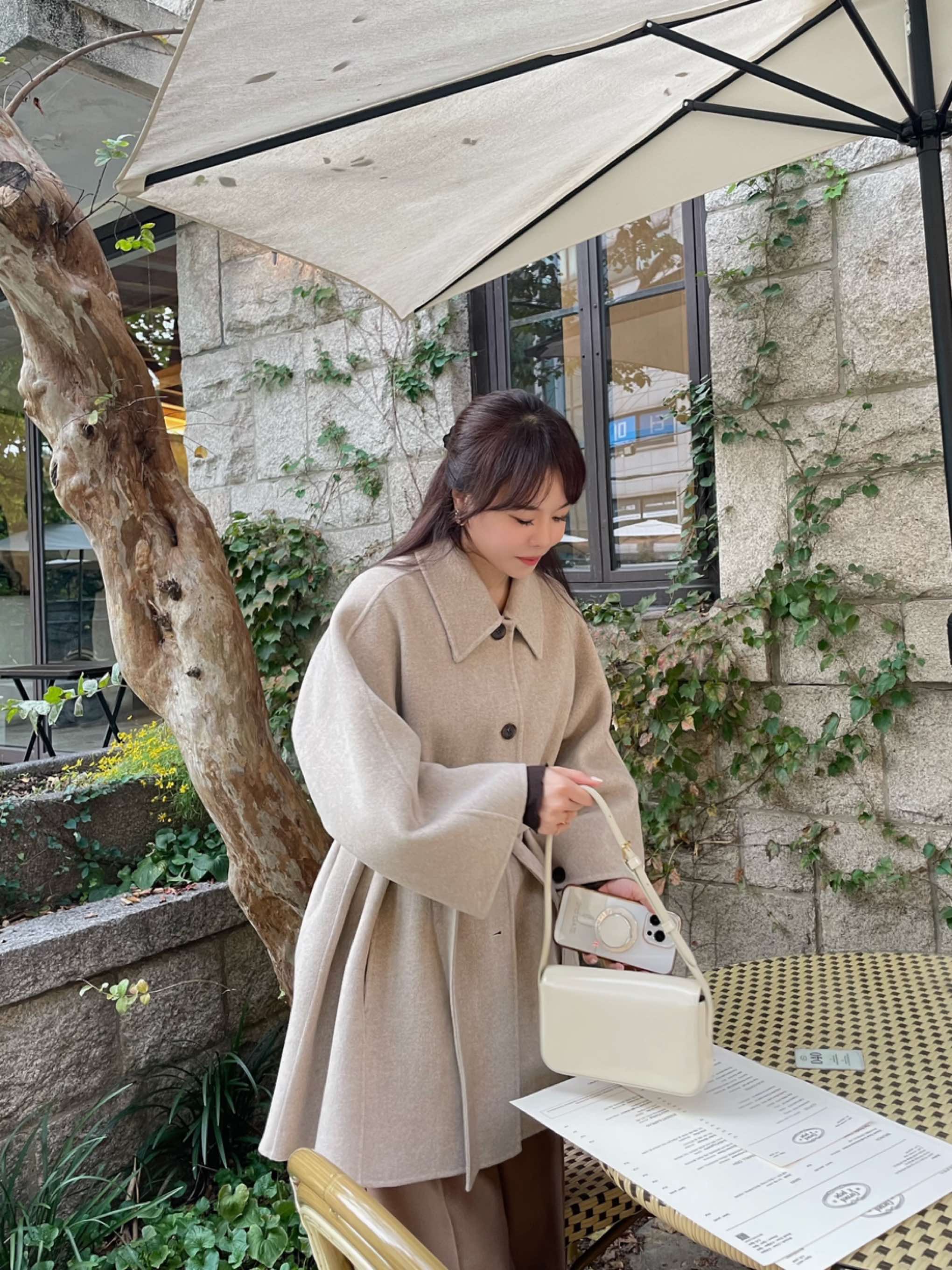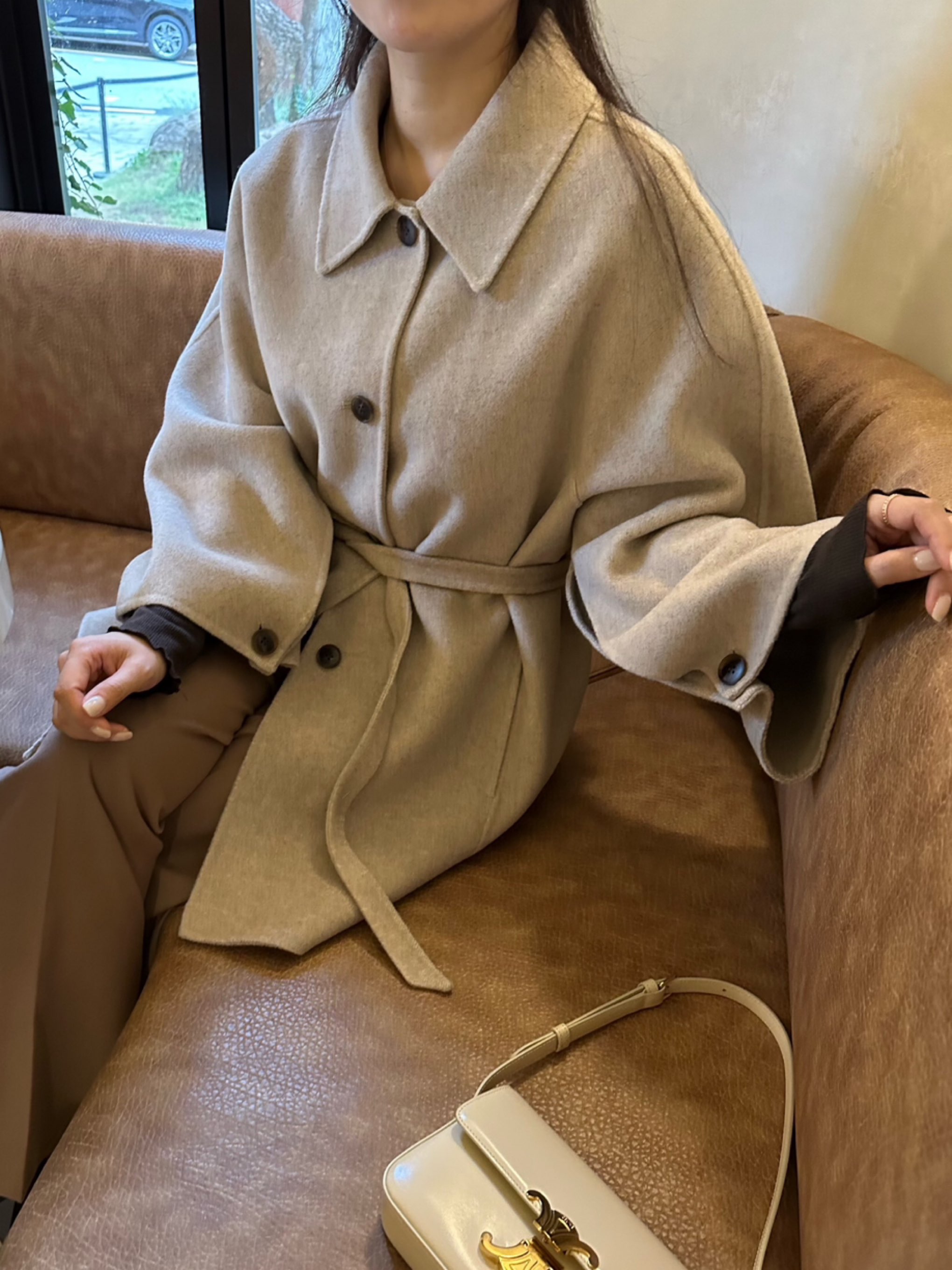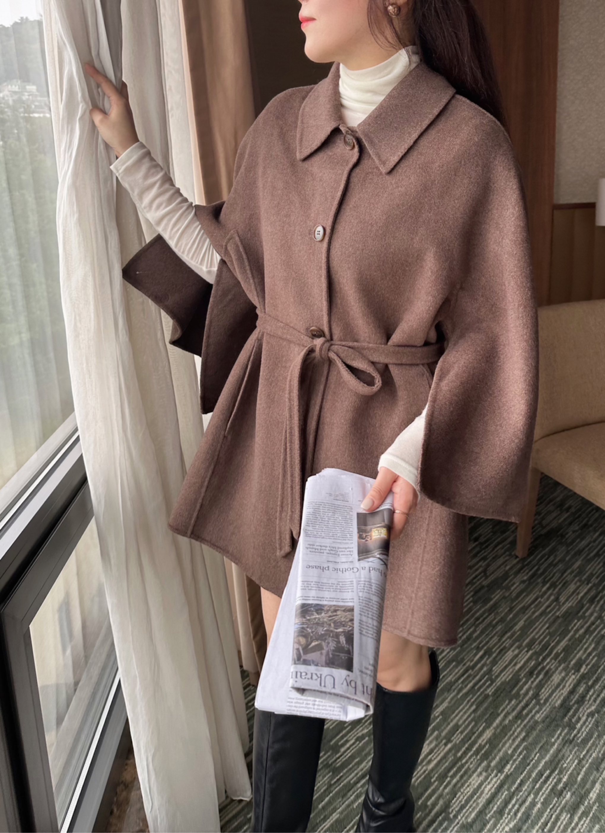 울100%코트,케이프스타일코트,핸드메이드