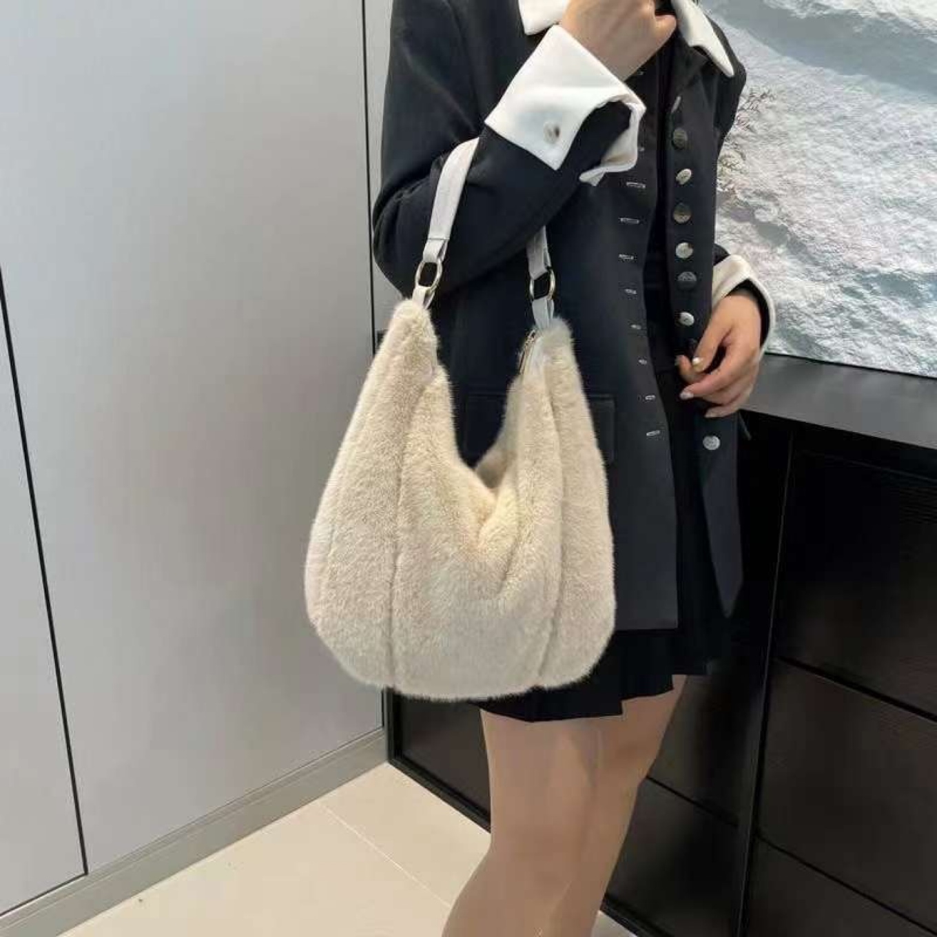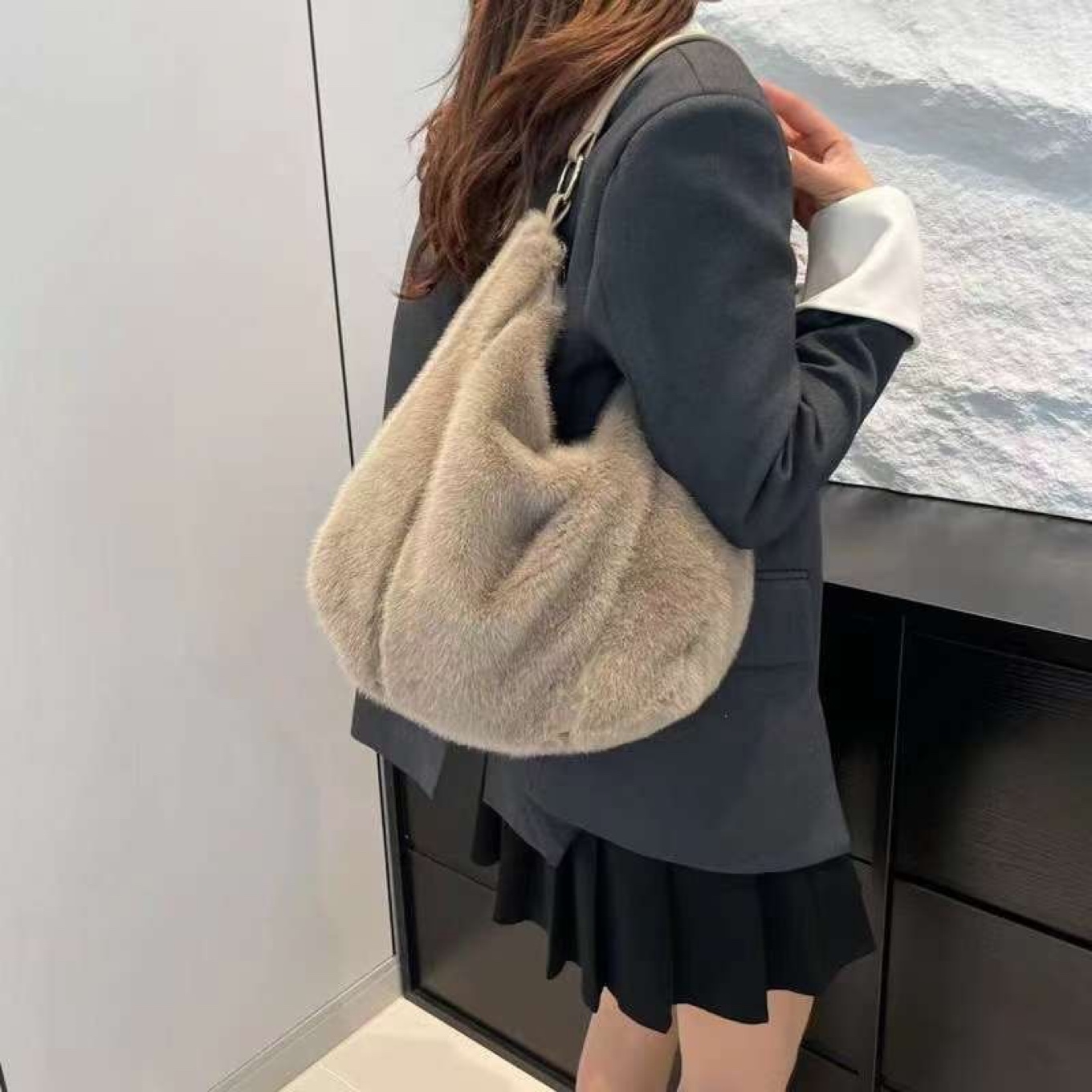 후로 밍크 숄더
