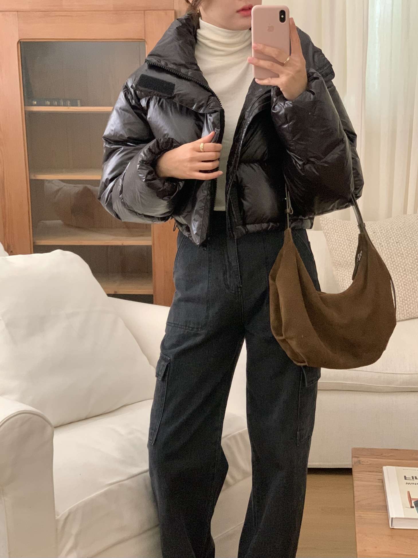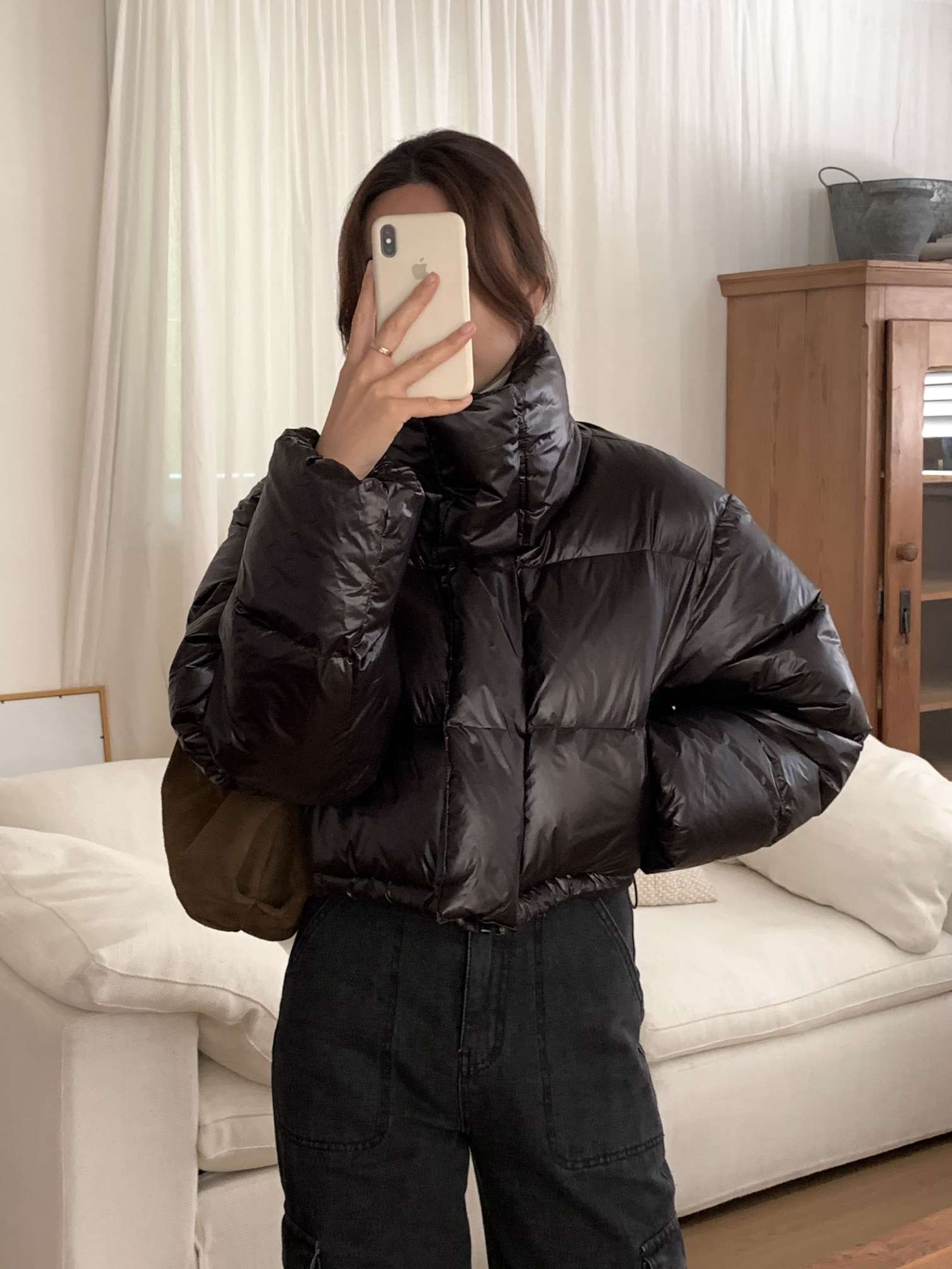 오리털100% 크롭패딩
