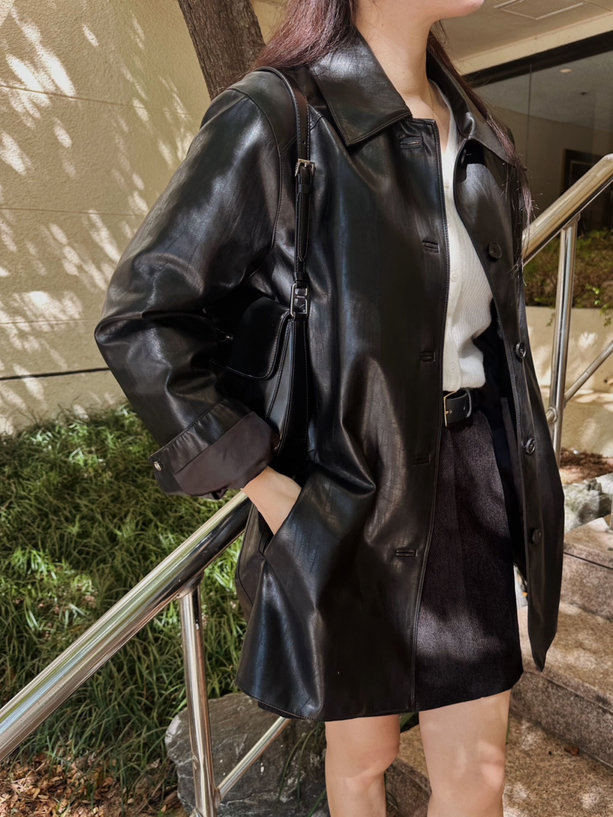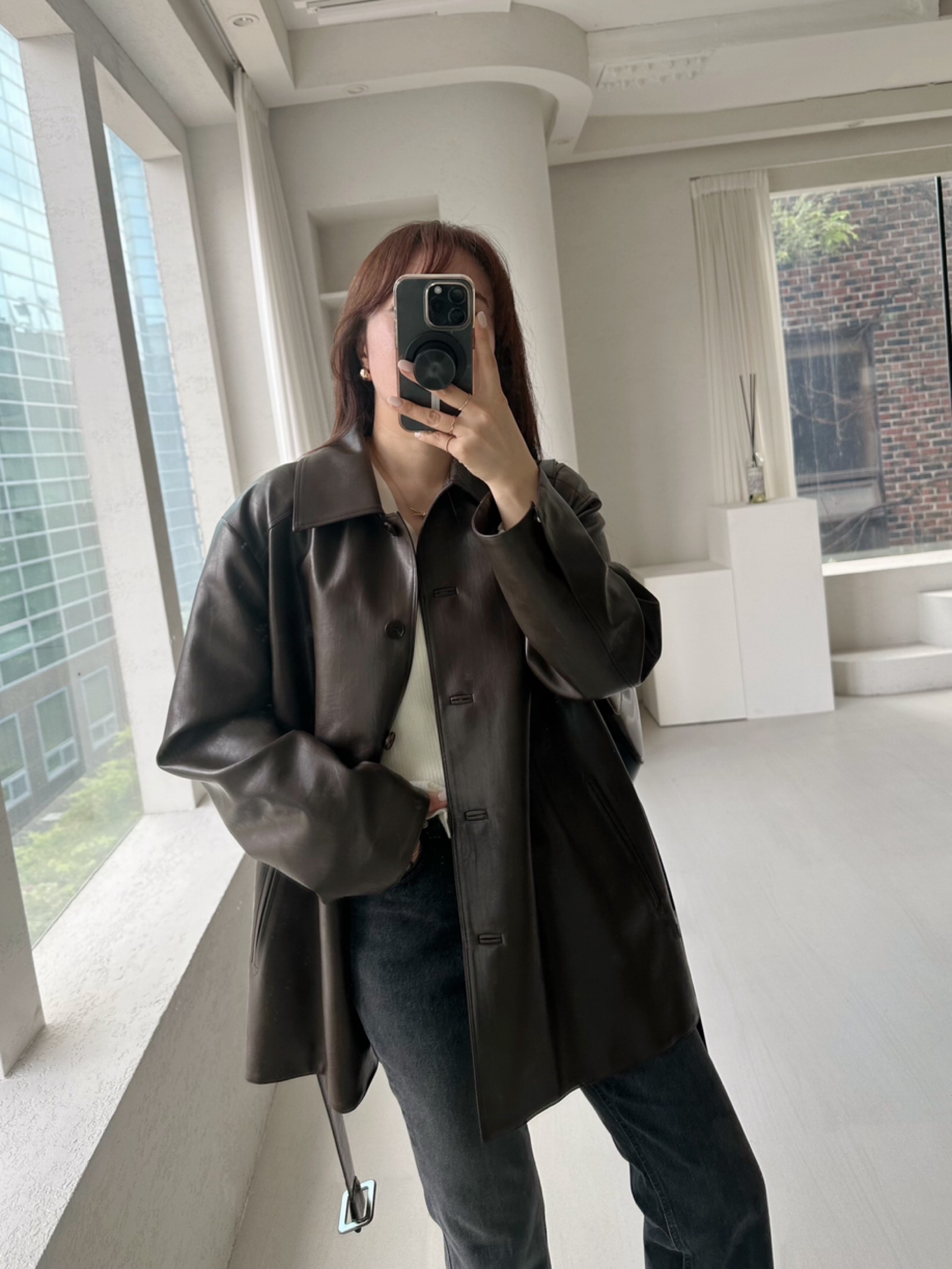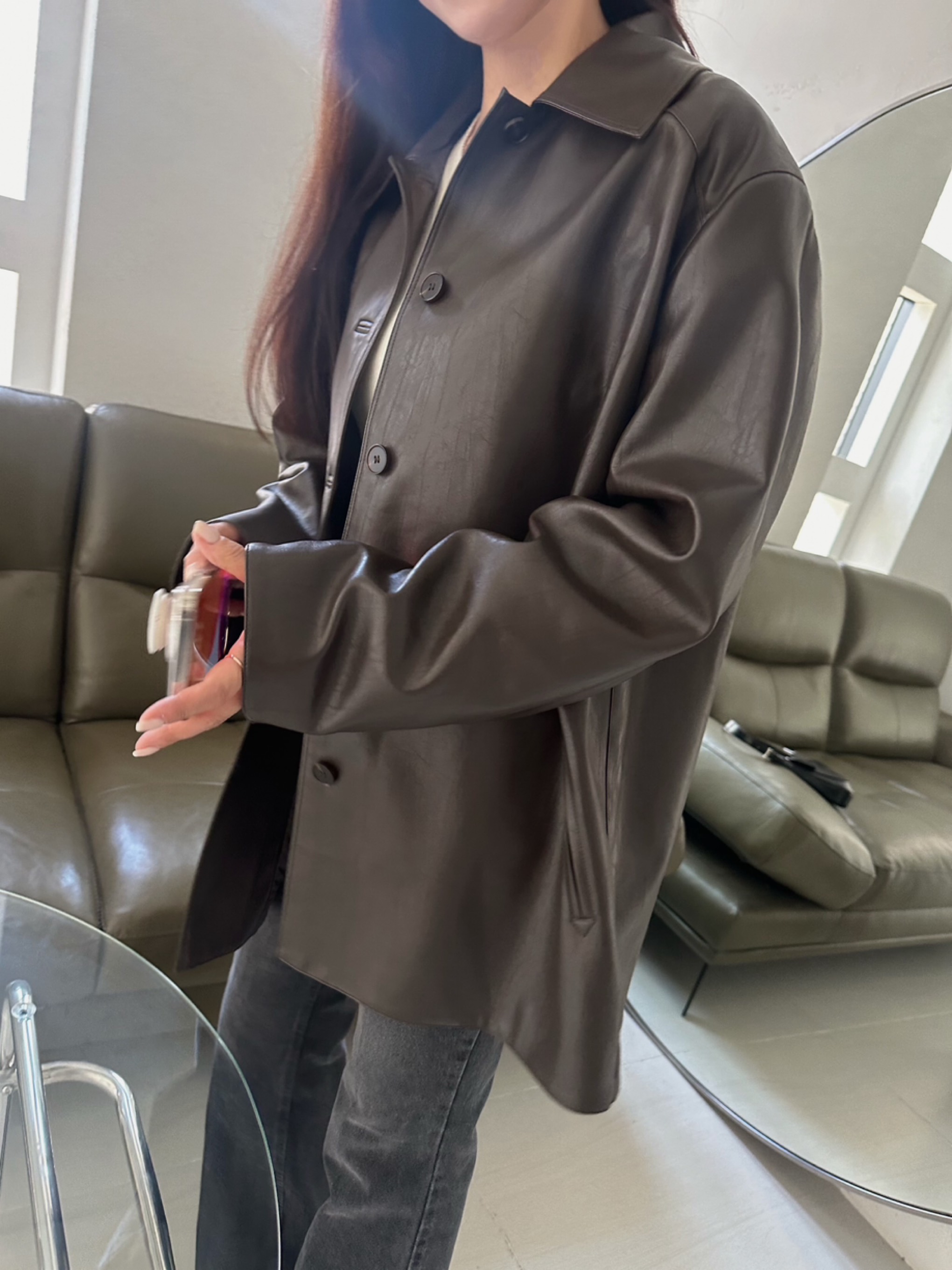 블랙,브라운컬러의디테일레더자켓입니다