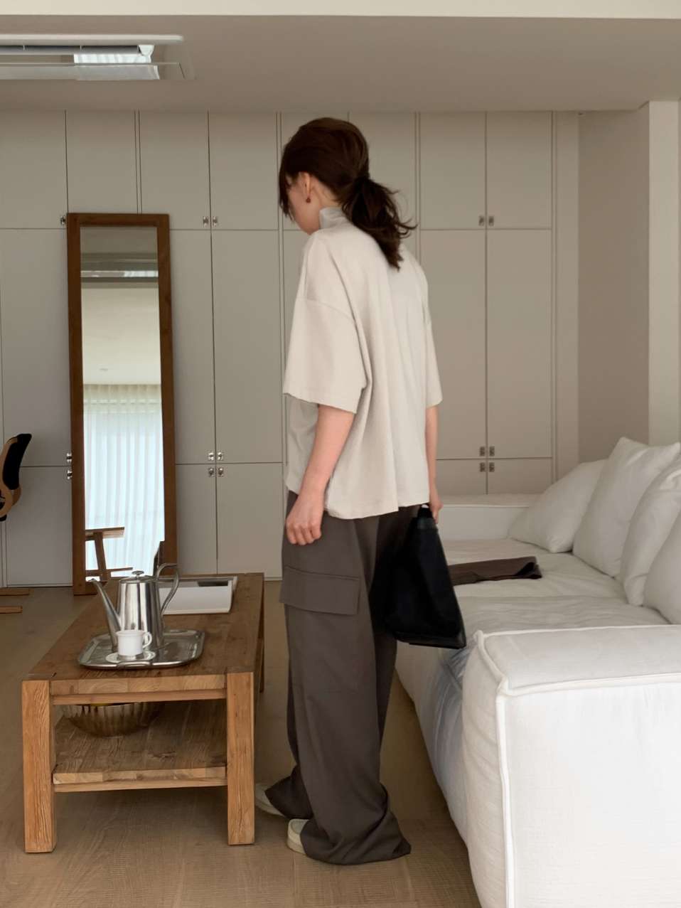 남성스러운 디테일을 가저와 여성스러운 실루엣으로 풀어낸 팬츠에요 翻译