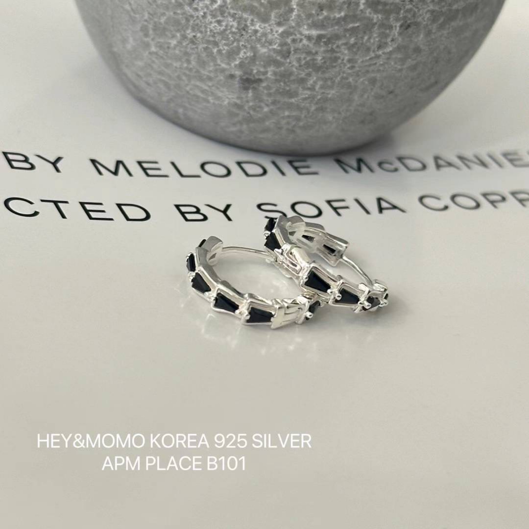 925银 黑钻蛇尾拼接耳扣