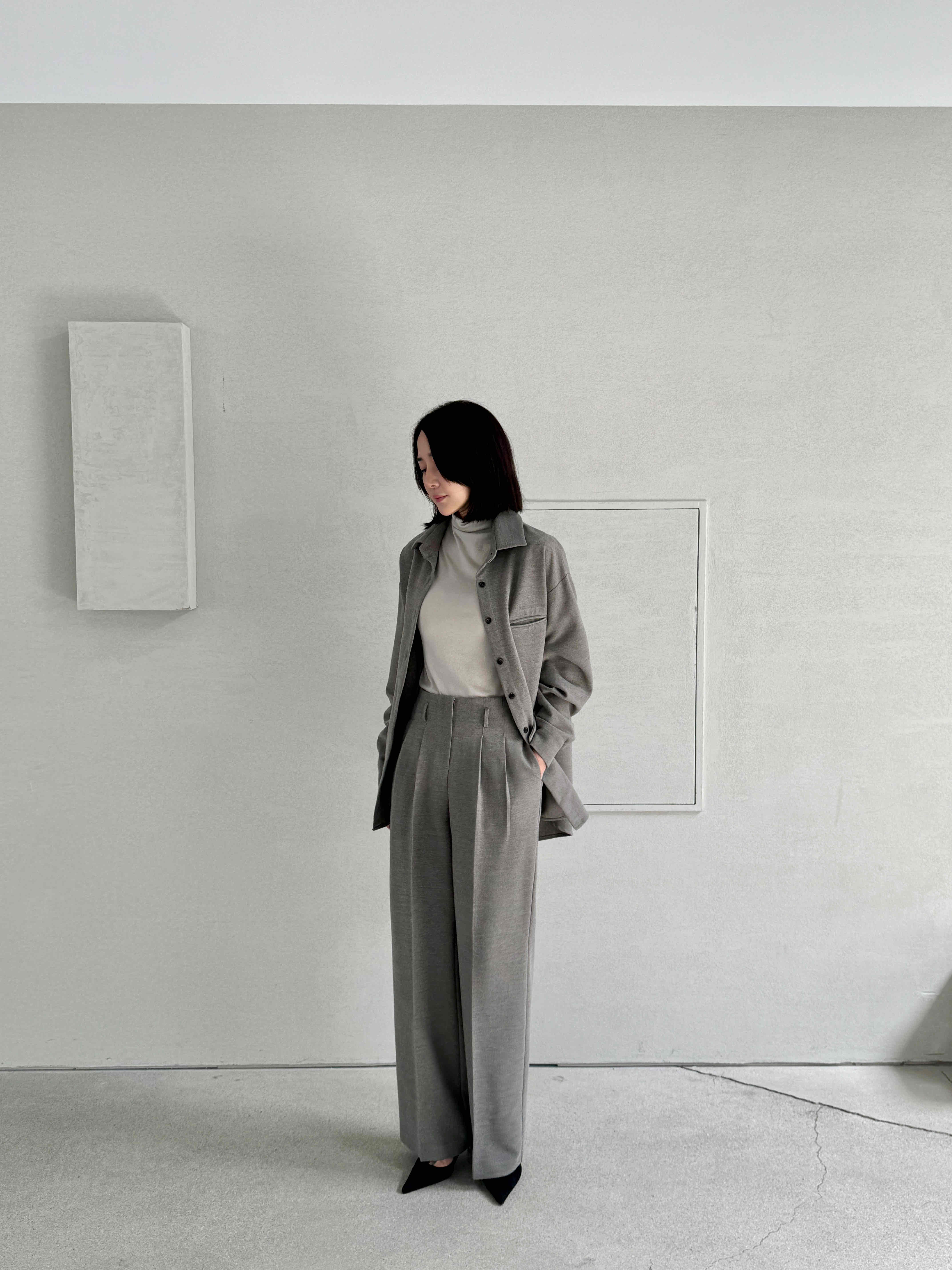 설명:울터치원단. 오버핏셔츠. 세트상품. 슬림해보이는 핀턱 디자인. 羊毛触感面料. 温柔.