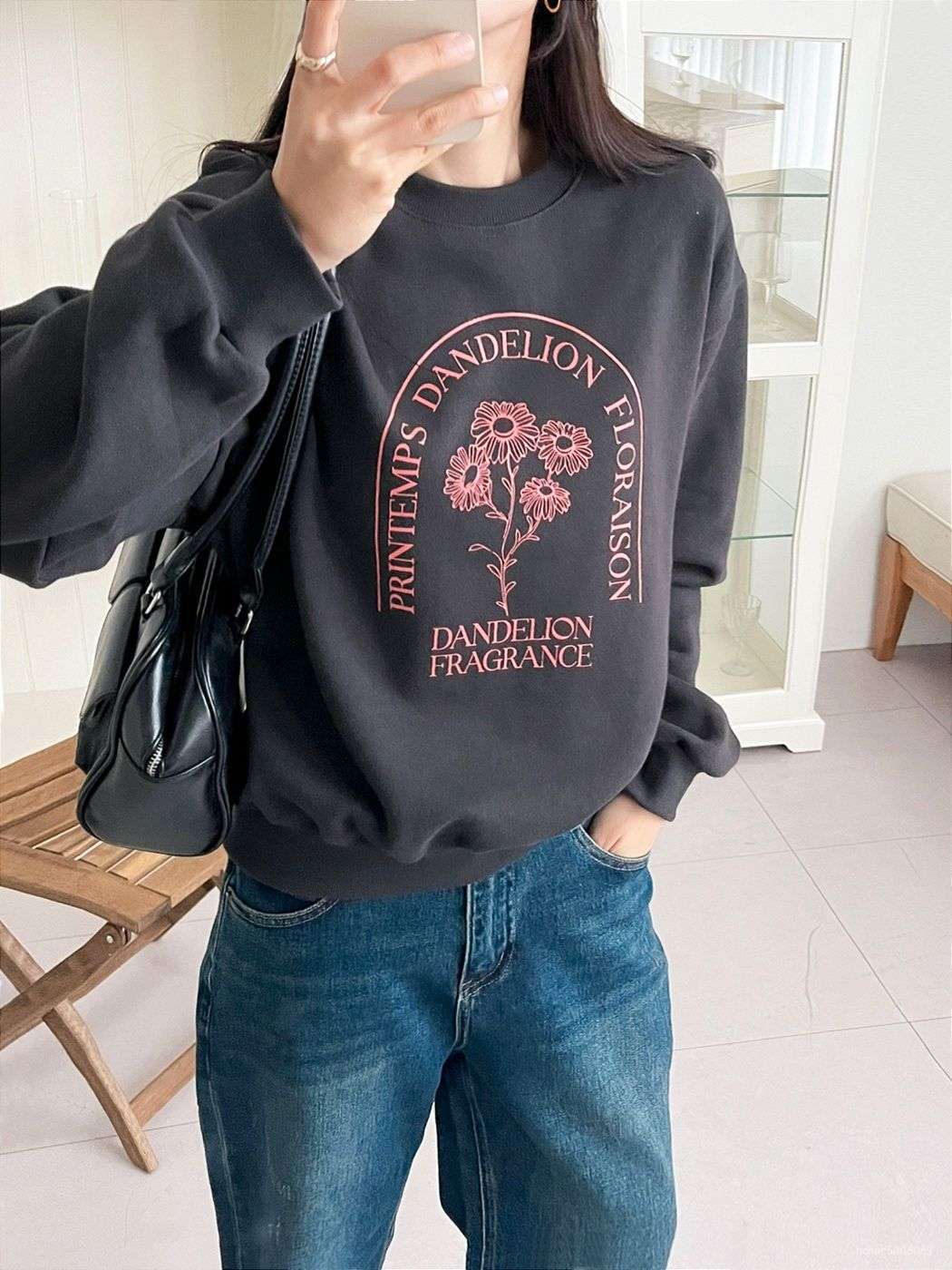 세미크롭한 맨투맨으로 부담스럽지않으면서 센스있게 피팅가능해요