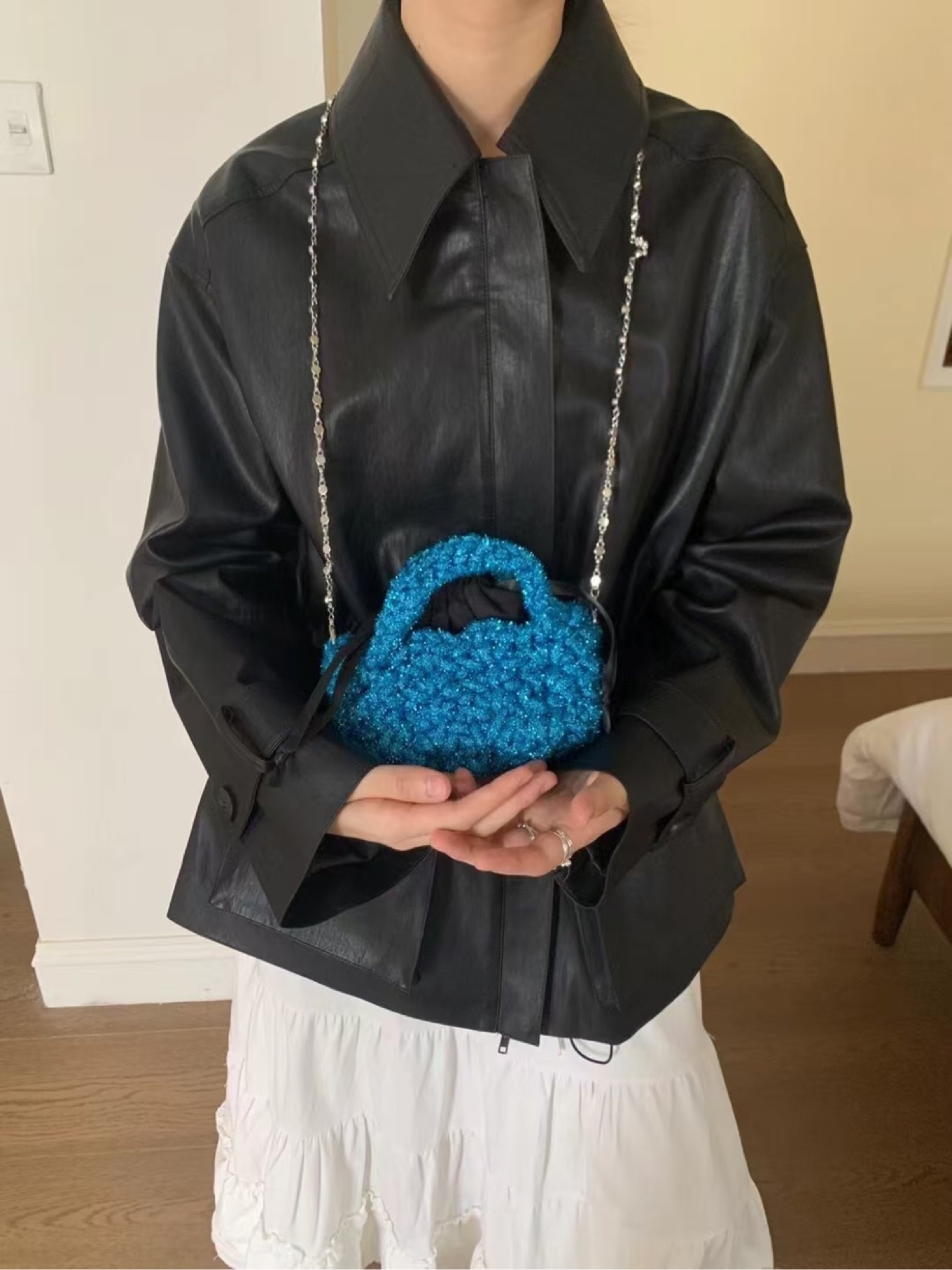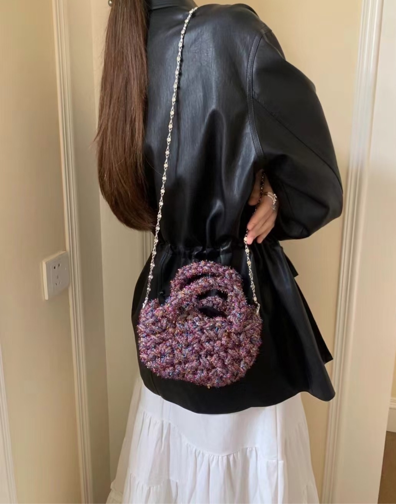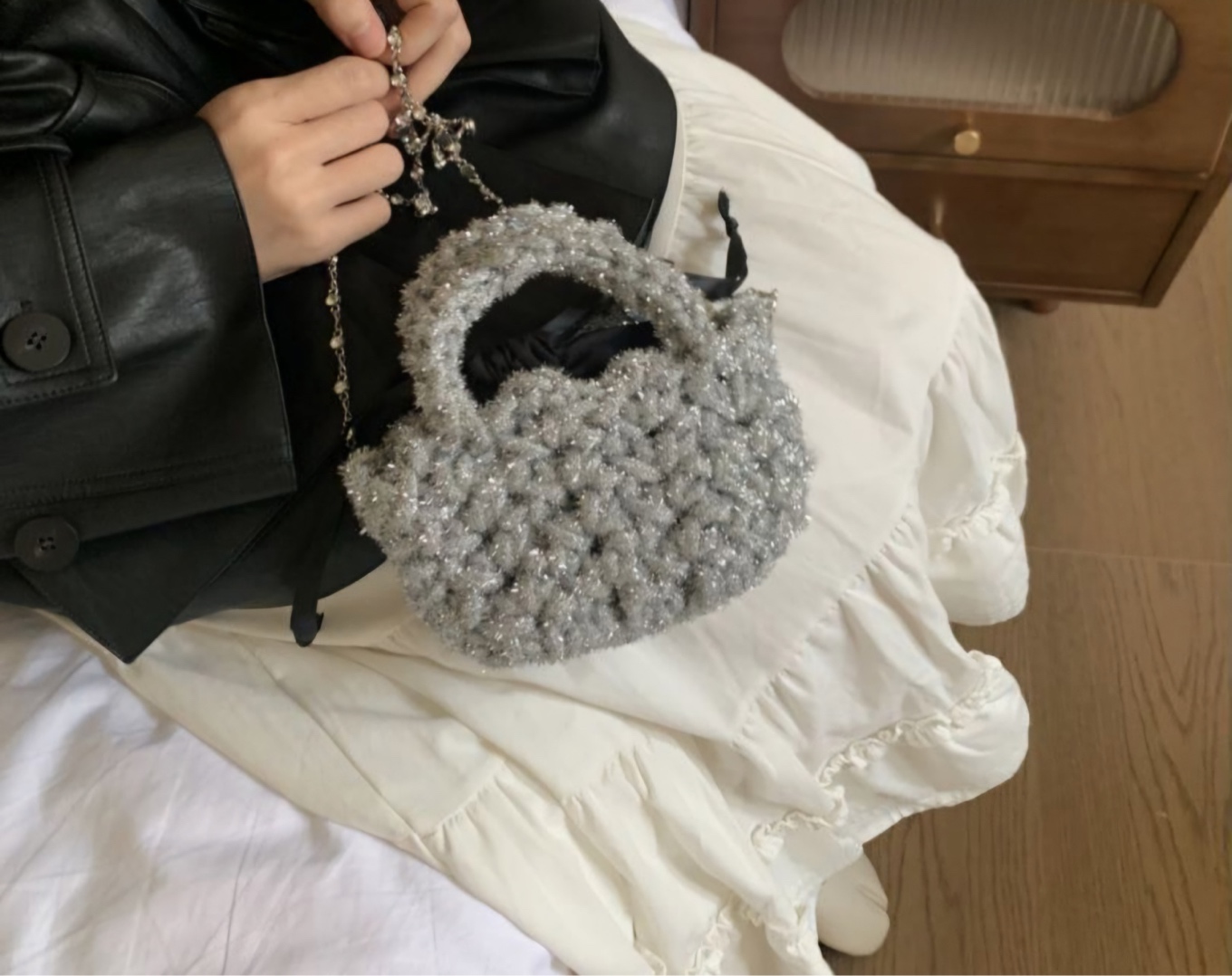 포리리 펄 뜨개 토트크로스(파우치포함)