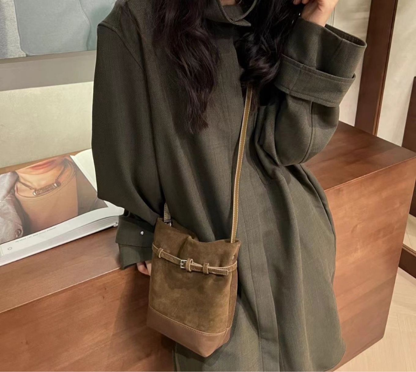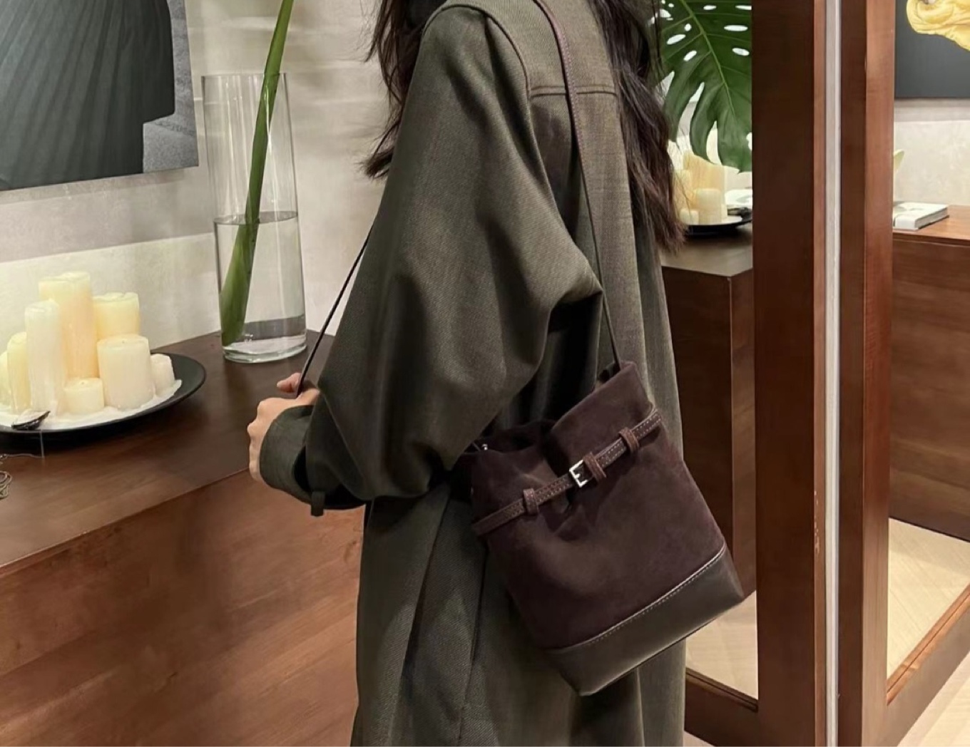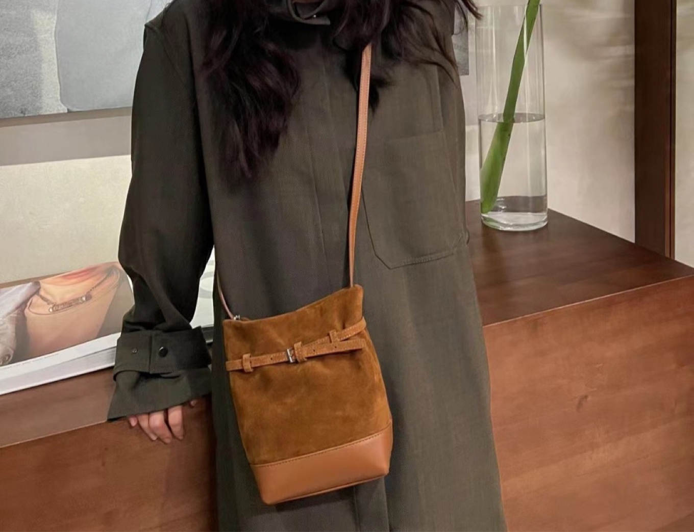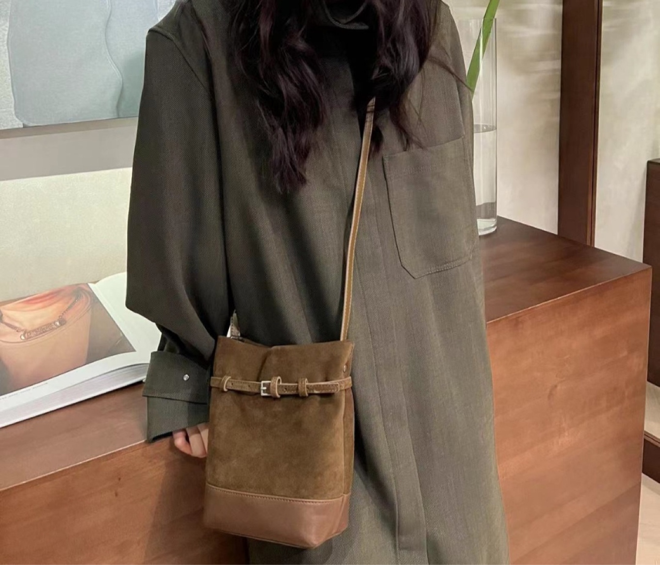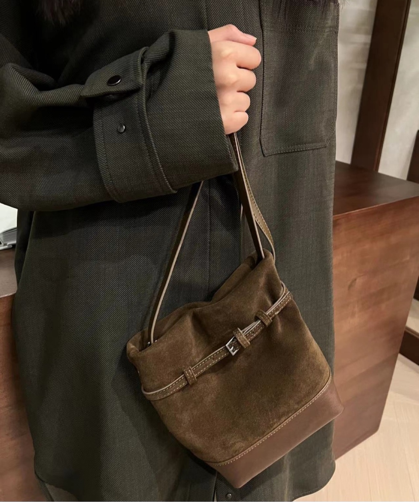 소가죽 스웨이드 샌디 버킷크로스