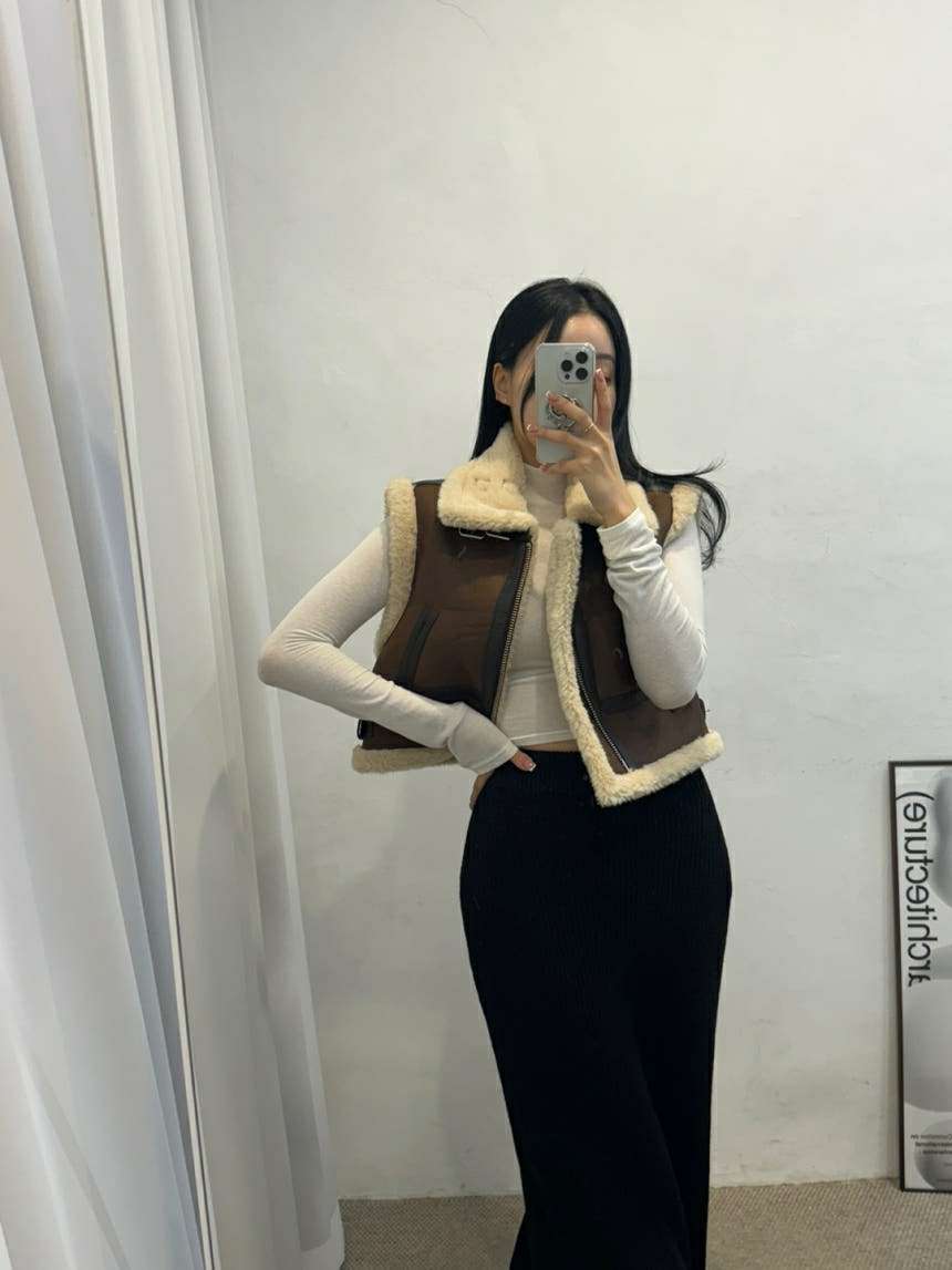环保毛皮毛一体马甲에센셜 무스탕 베스트1