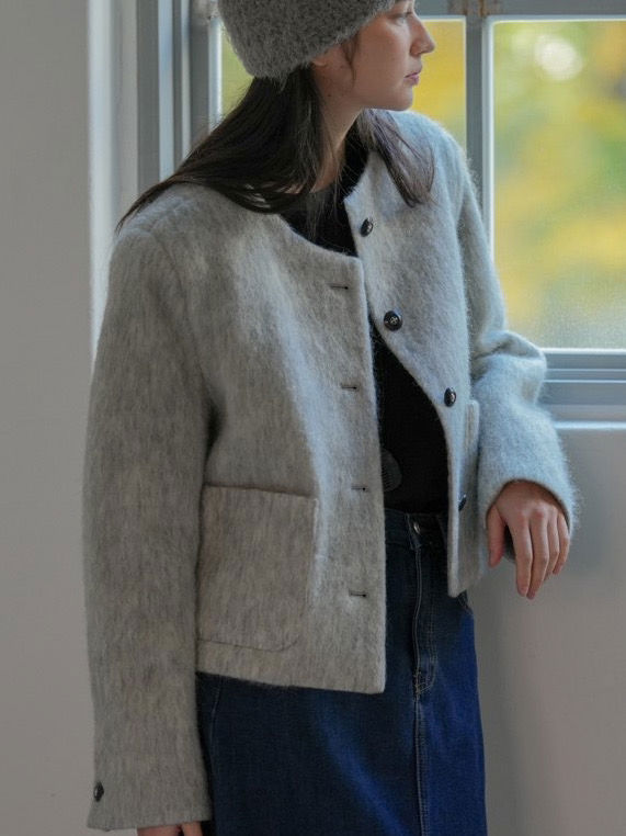 *미니멀한 무드의 세미크롭핏 기장감의 자켓