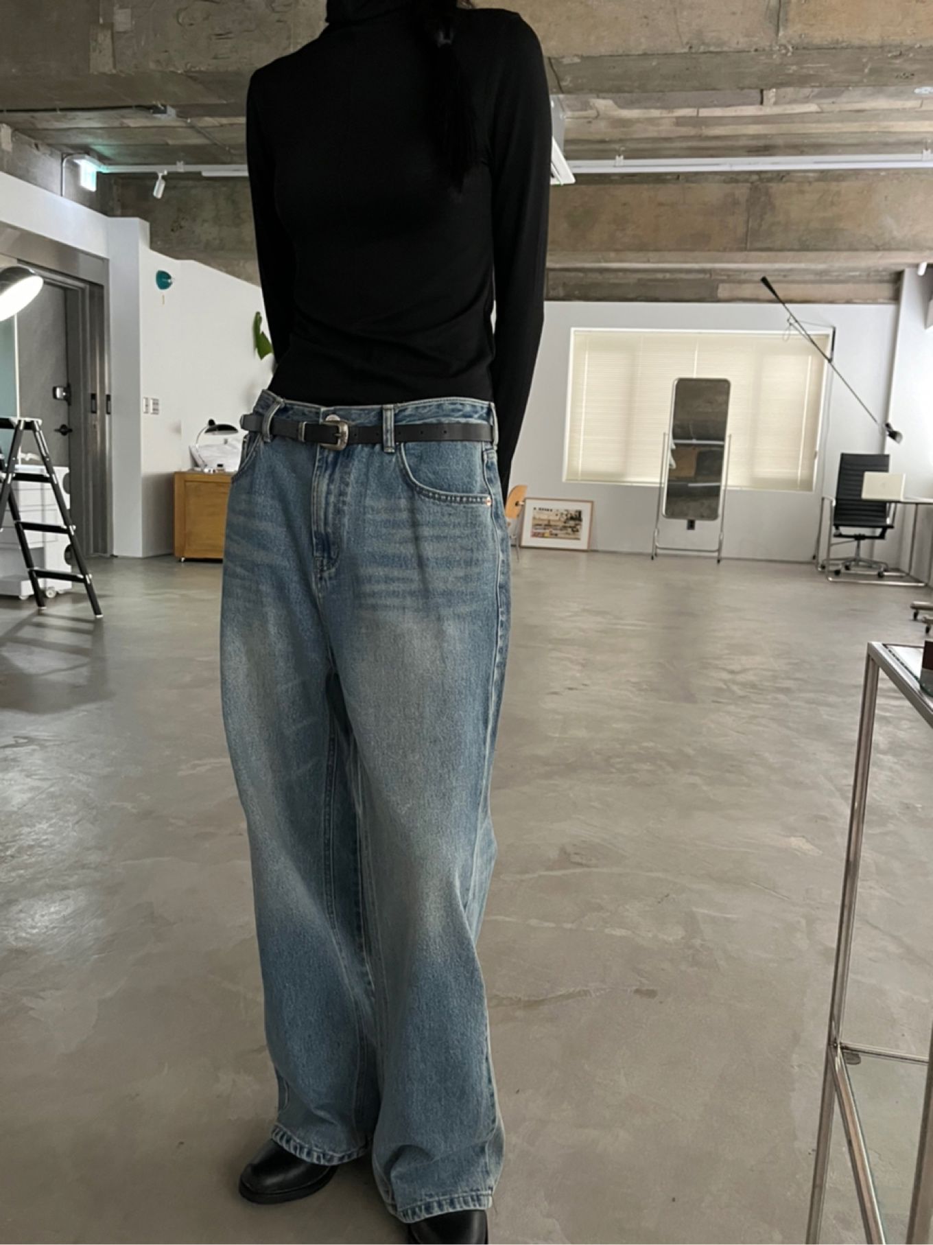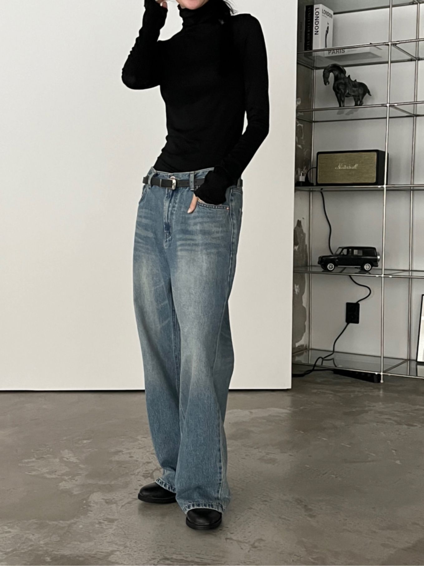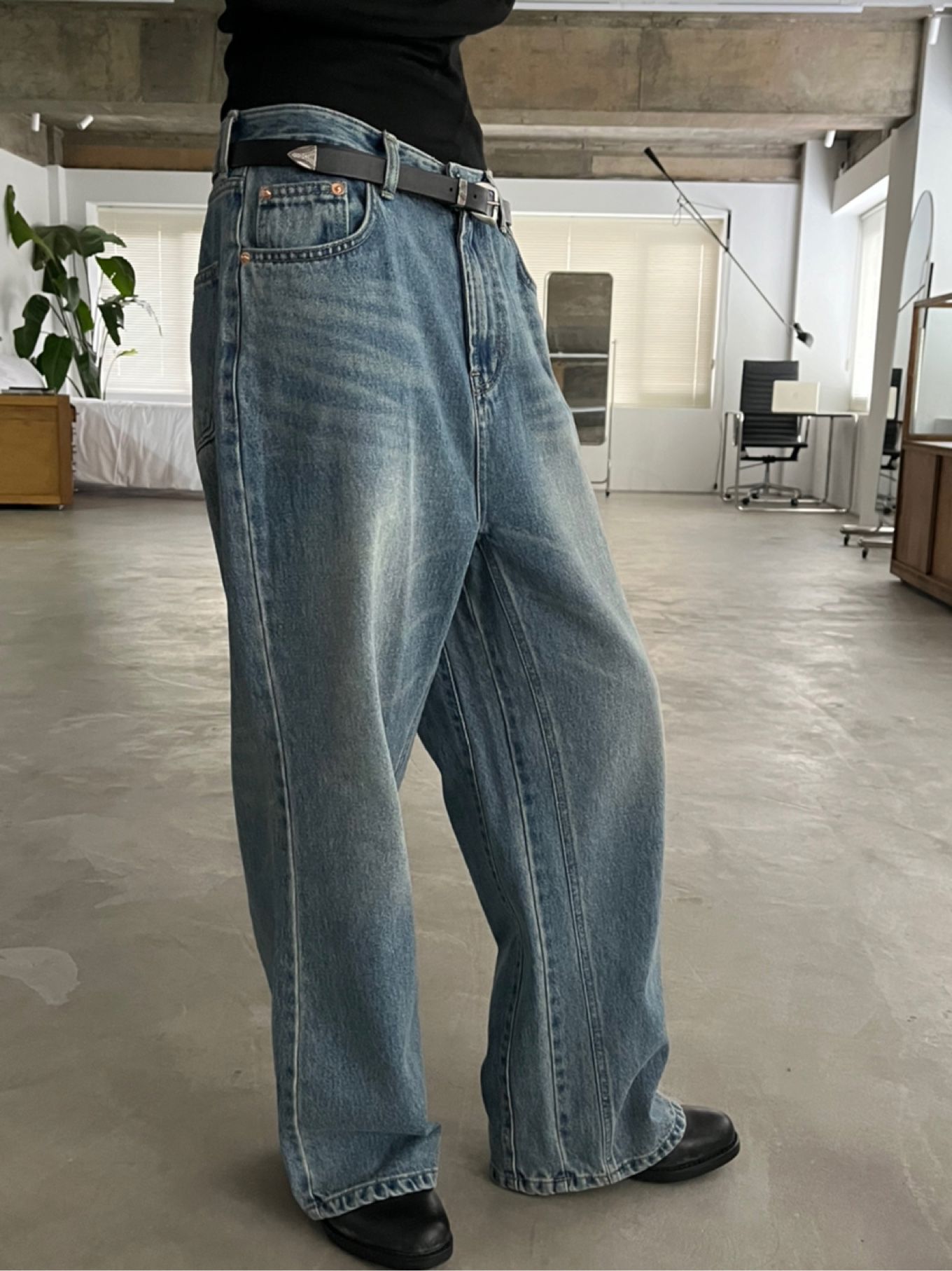 유니크한골반핏에청바지입니다 翻译