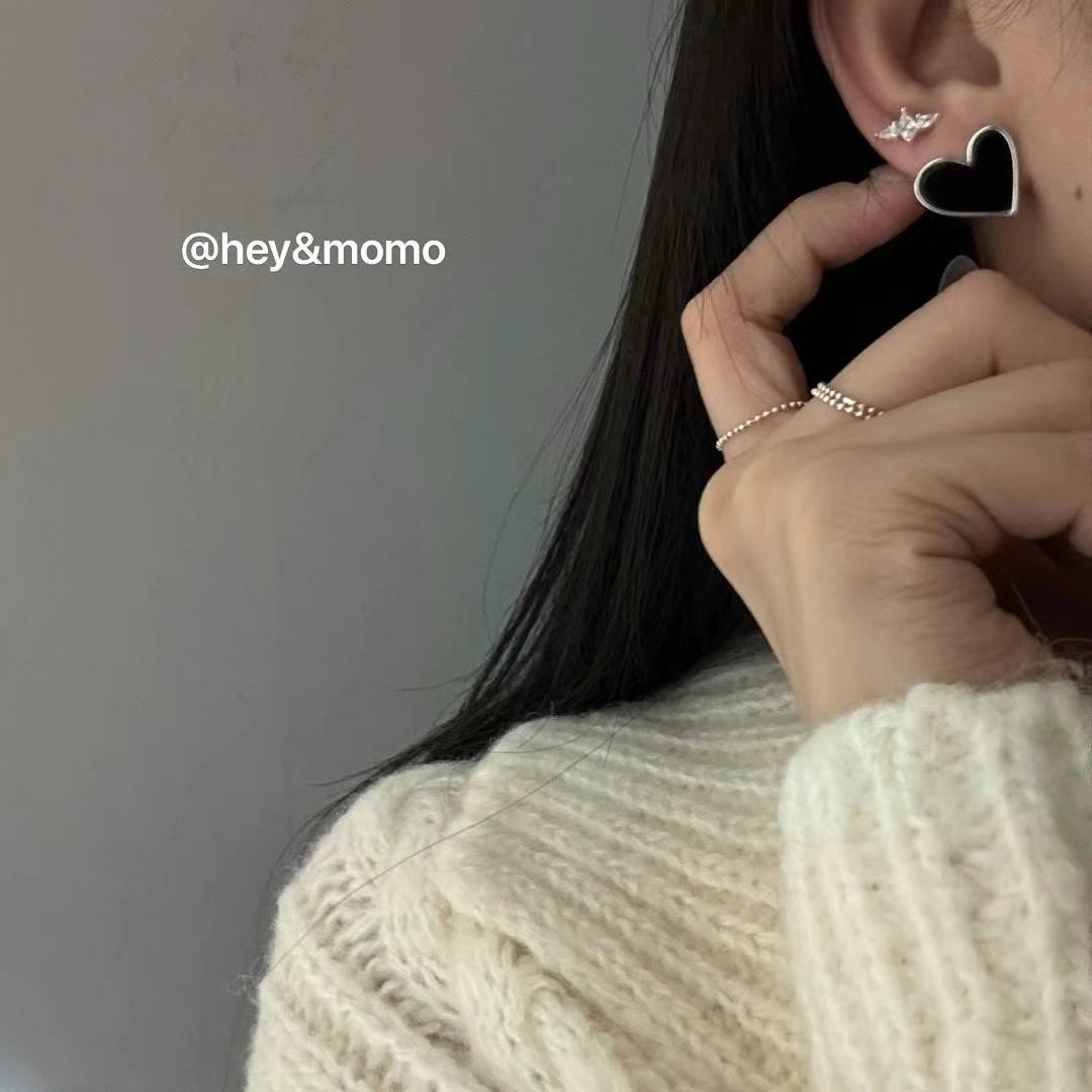 图款 ⚪️925 银 黑玛瑙俏皮大爱心耳钉 24000