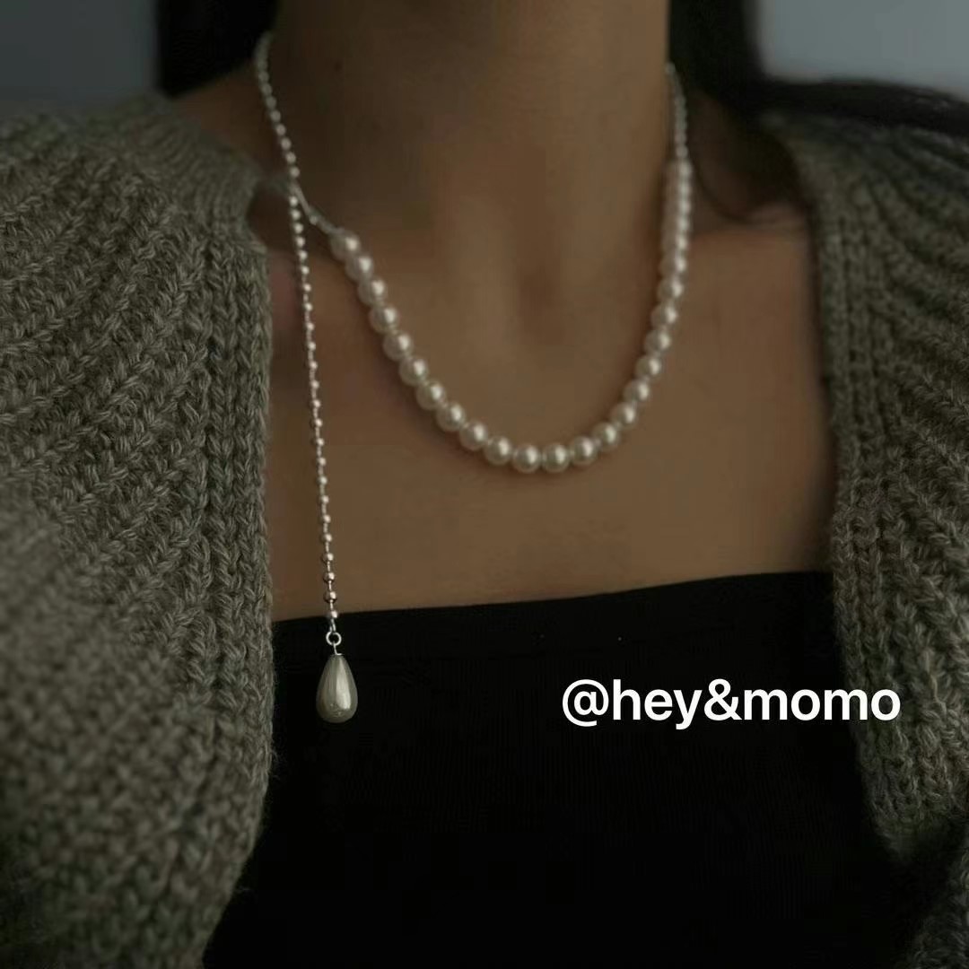 图款 ⚪️925 银 水滴珍珠 银球拼接项链 79000