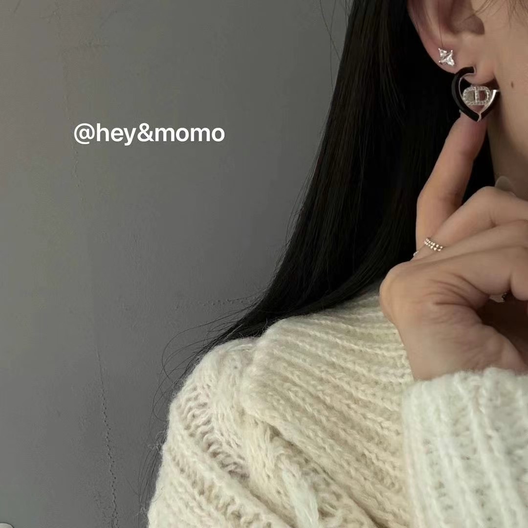 图款 ⚪️925 银 微镶钻猪鼻 黑釉爱心造型耳钉 29000