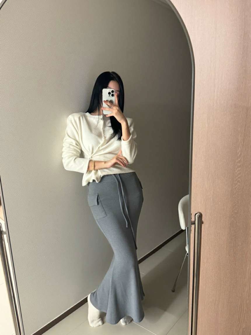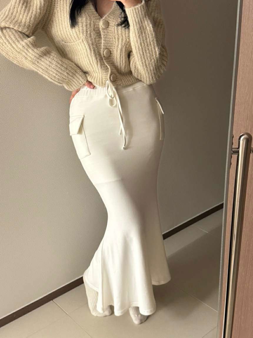 薄绒口袋松紧腰鱼尾裙모찌카고 머메이드스커트