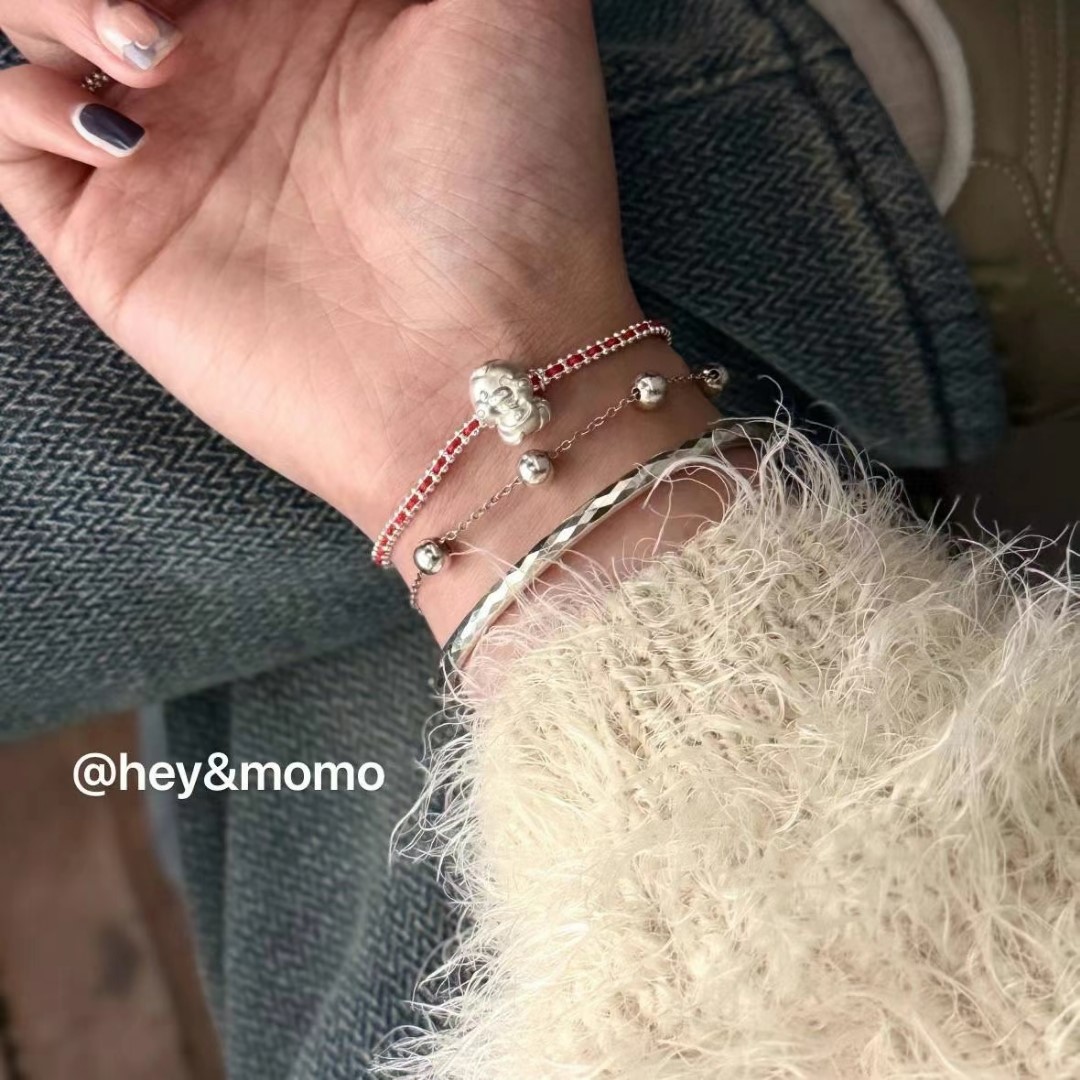 图款 ⚪️925 银 磨砂款生肖蛇 银豆红绳手链 21000
