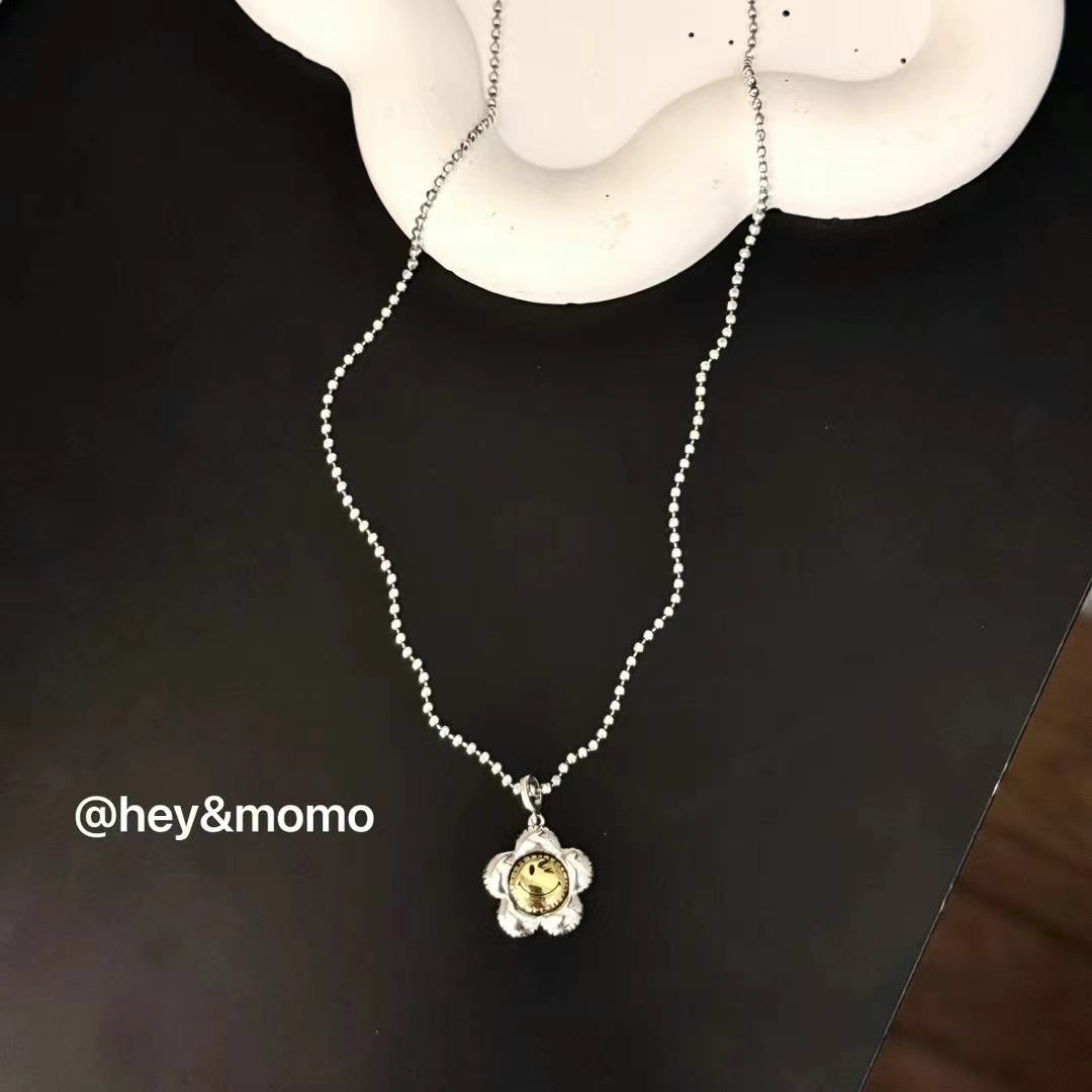 图款 ⚪️925 银 银镀金 双面笑脸太阳花项链 44000