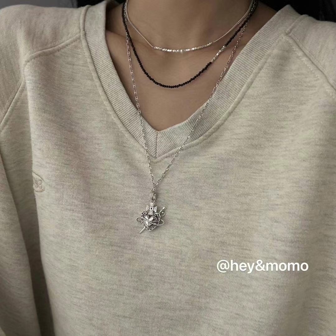 图款 ⚪️925 银 猪鼻链条➕重工暗黑系爱心吊坠项链 58000