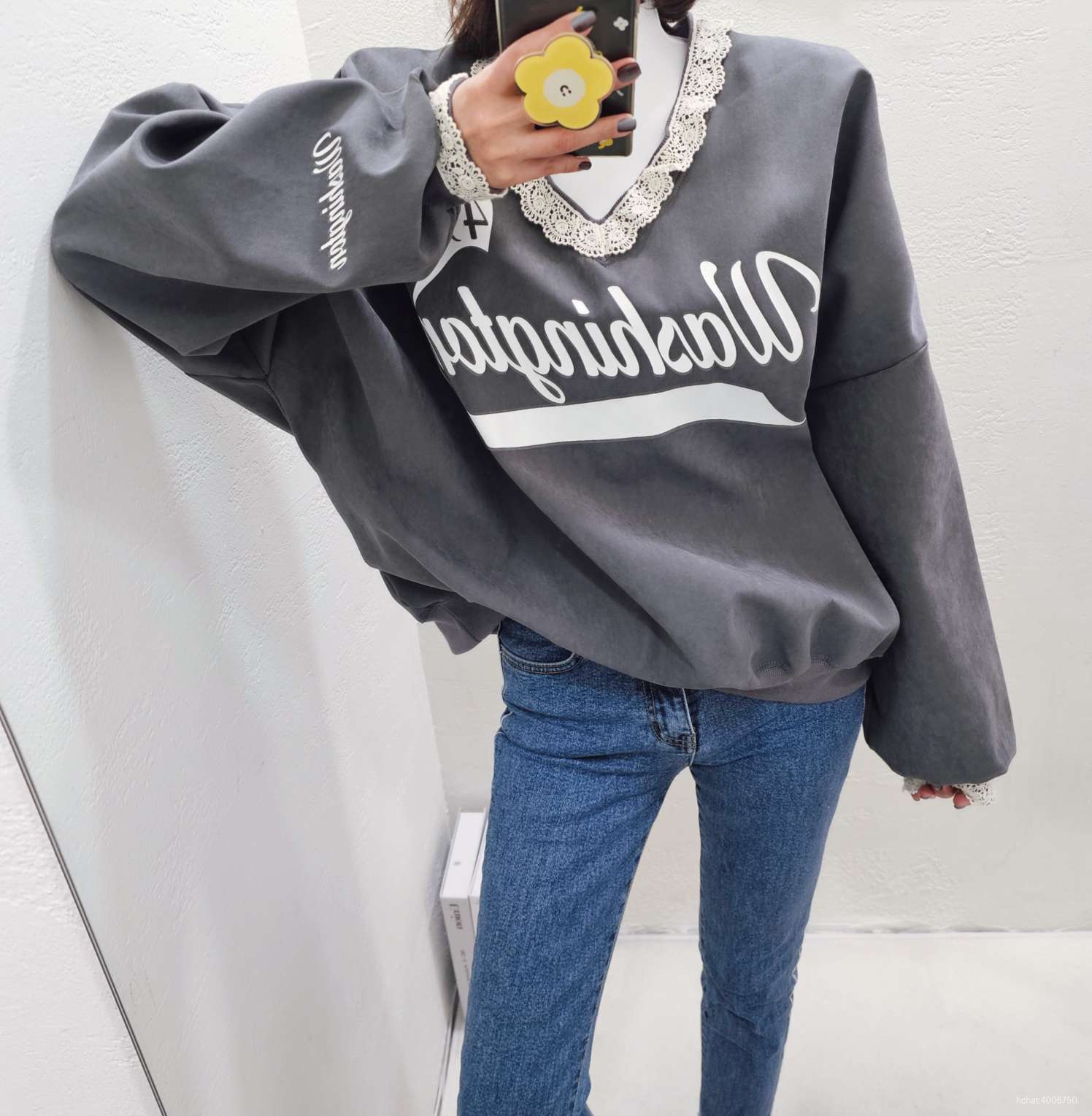 기모브이넥레이스맨투맨